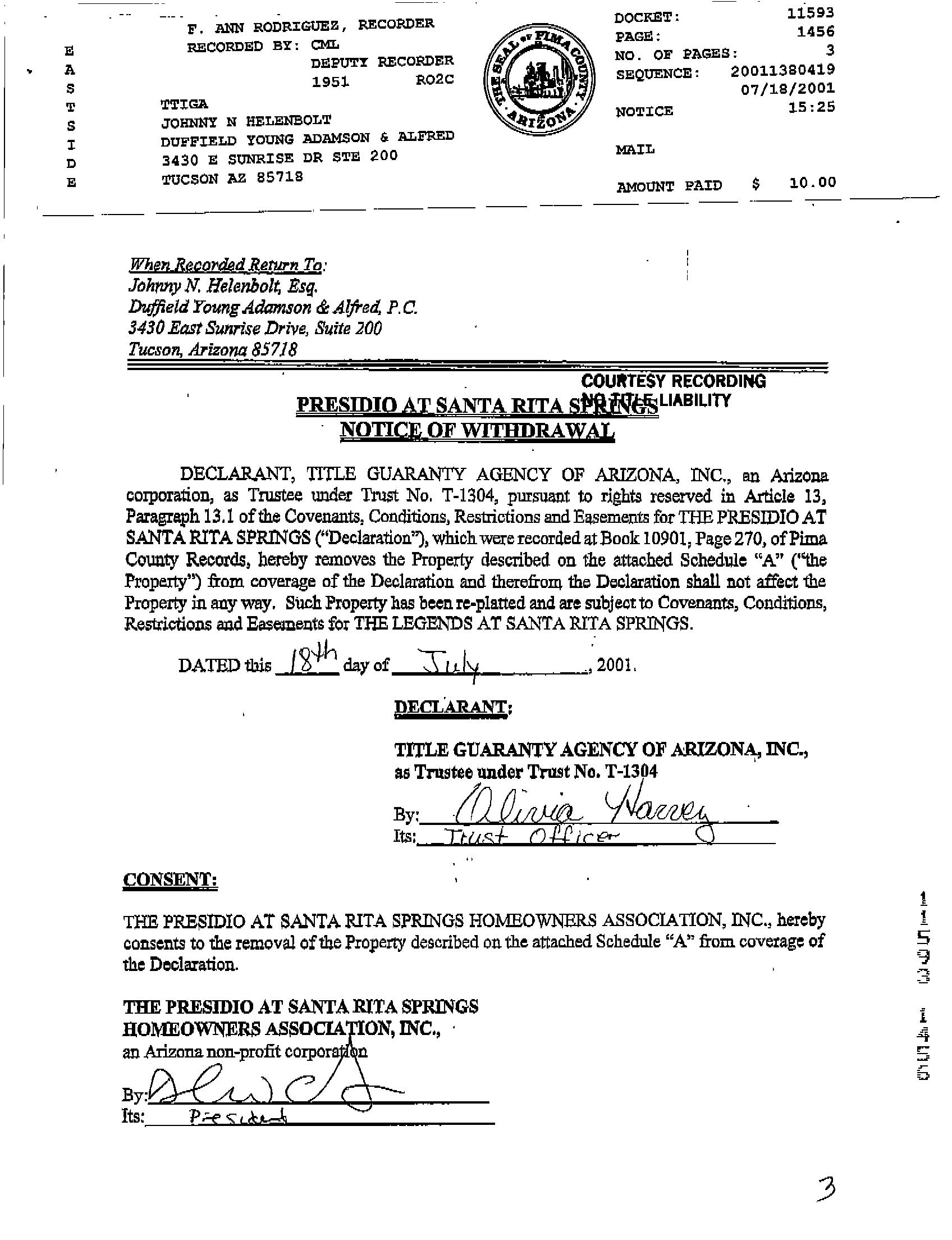 210 W Continental Road, Ste. 248 Green Valley, AZ 85622 phone 520-625-1095