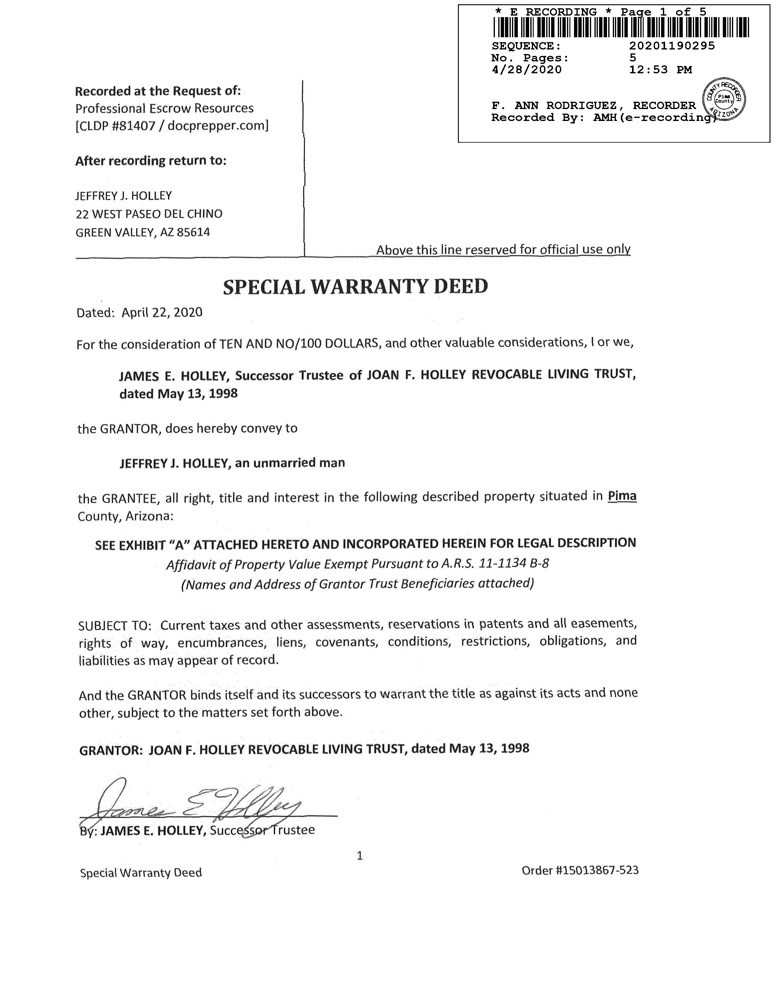 OWNER: HOLLEY JOAN F REVOC LIVING TR 12558 3355 05/23/2005