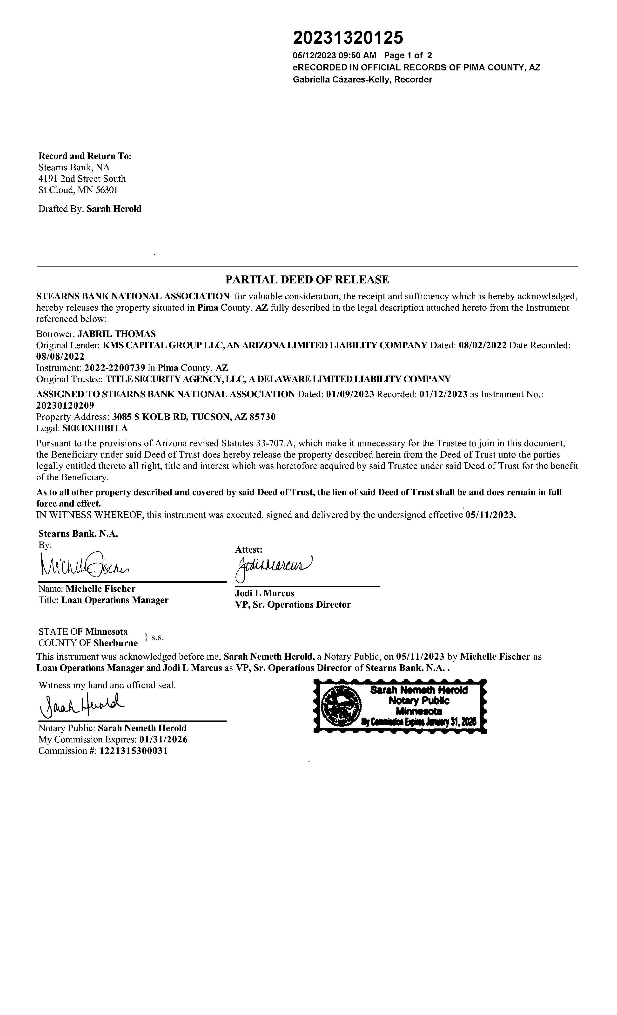 Sale Price : $135,000 1st Mtg Document # : 3530398