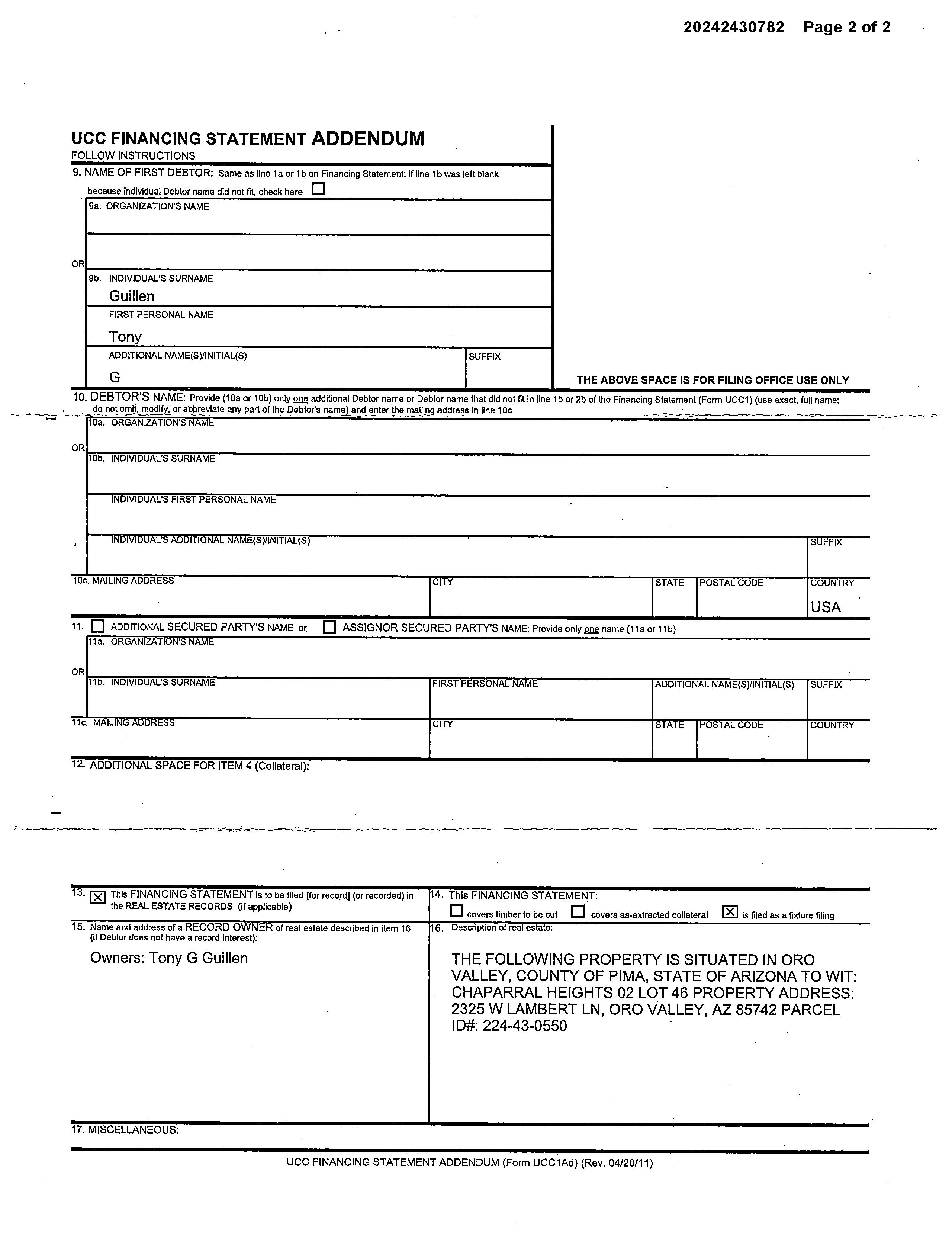 Owner Name : Guillen Tony Gene / Guillen Angelica