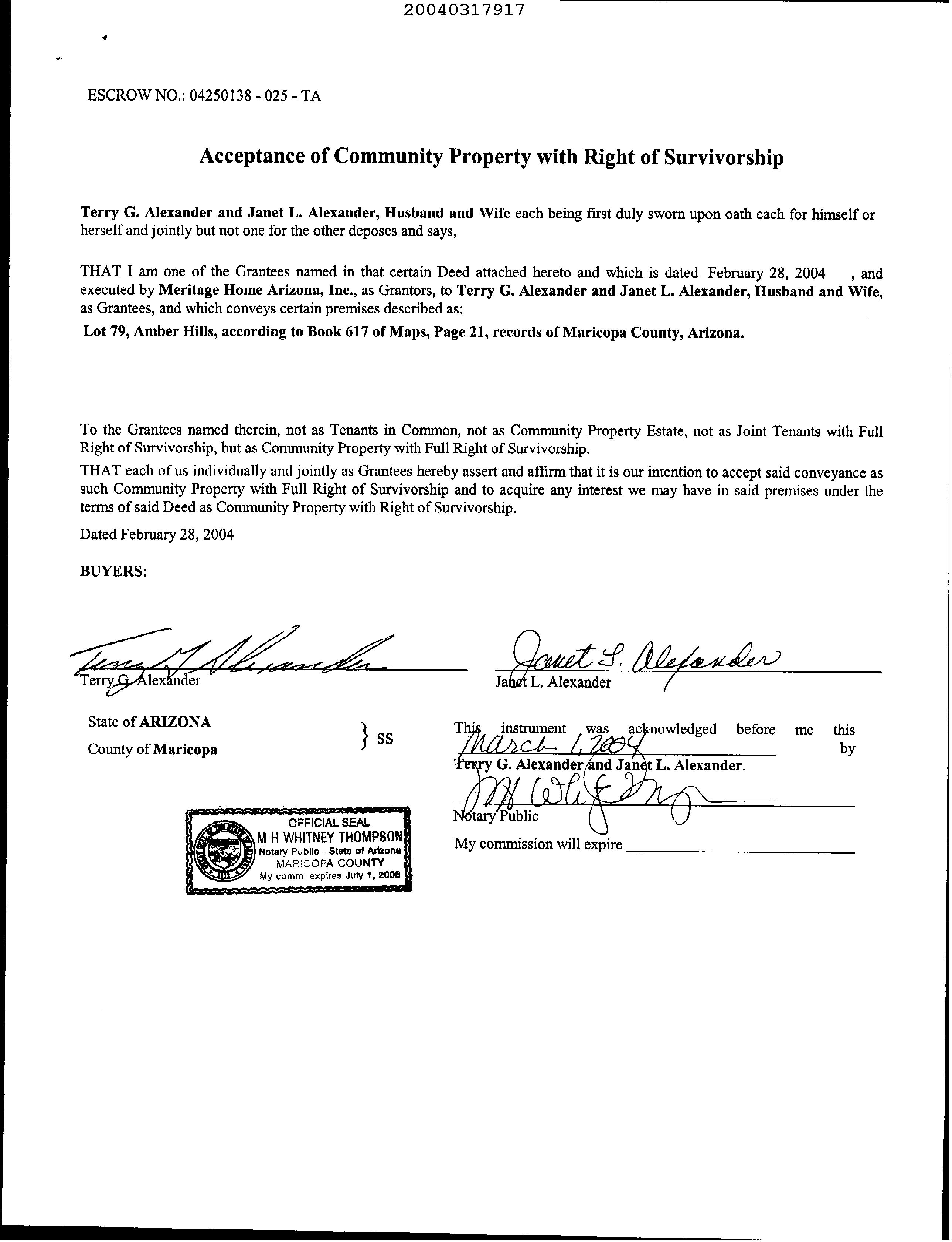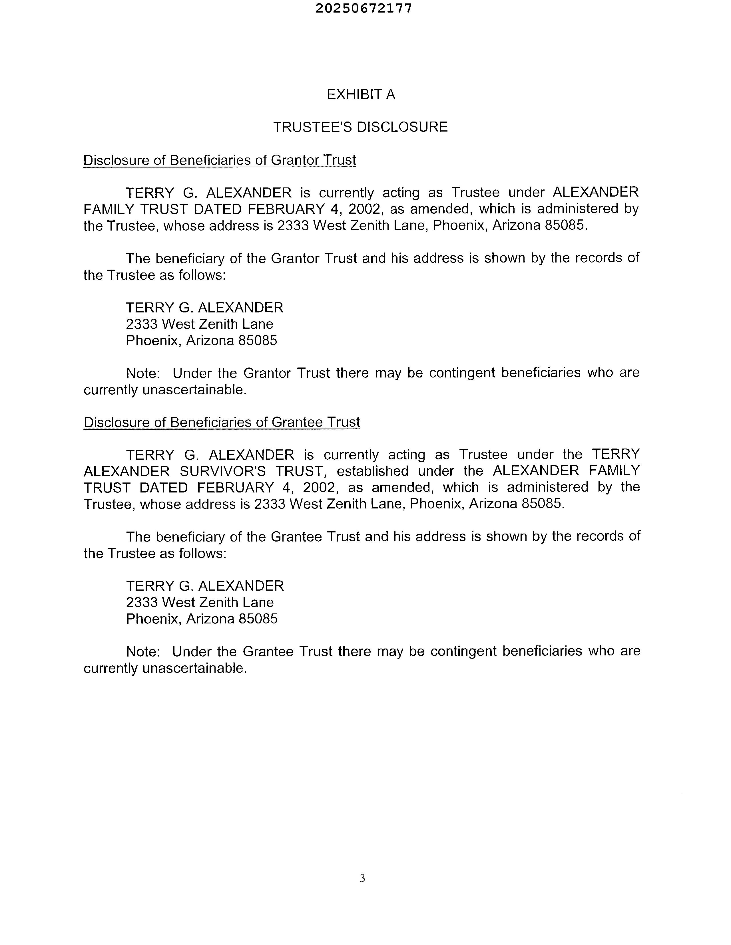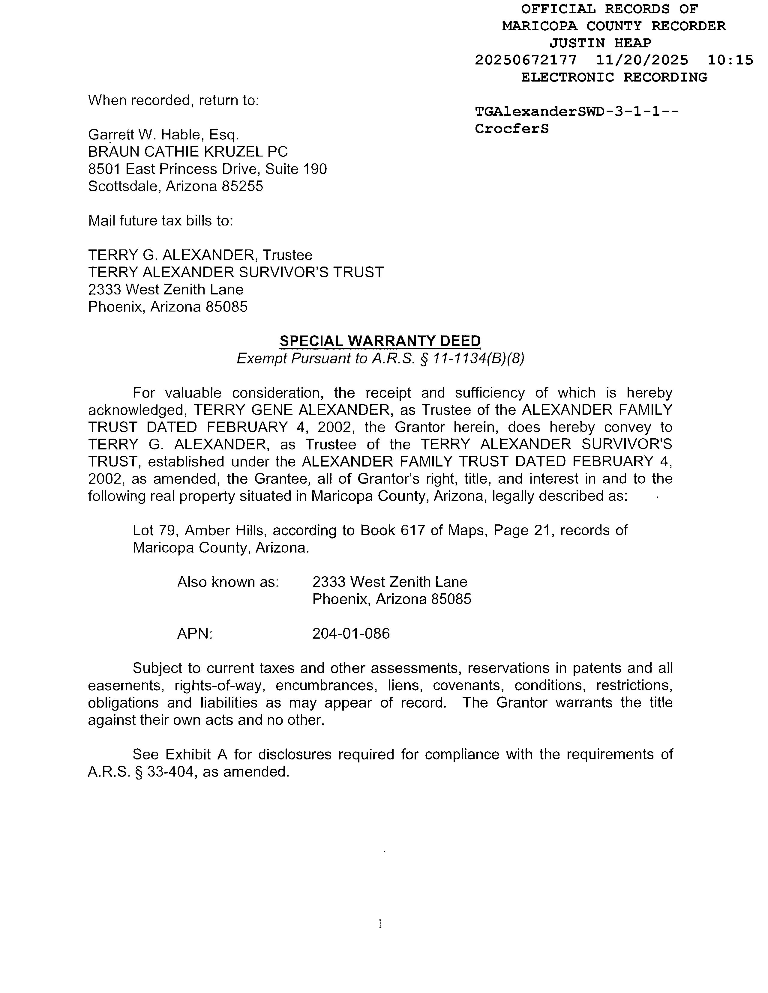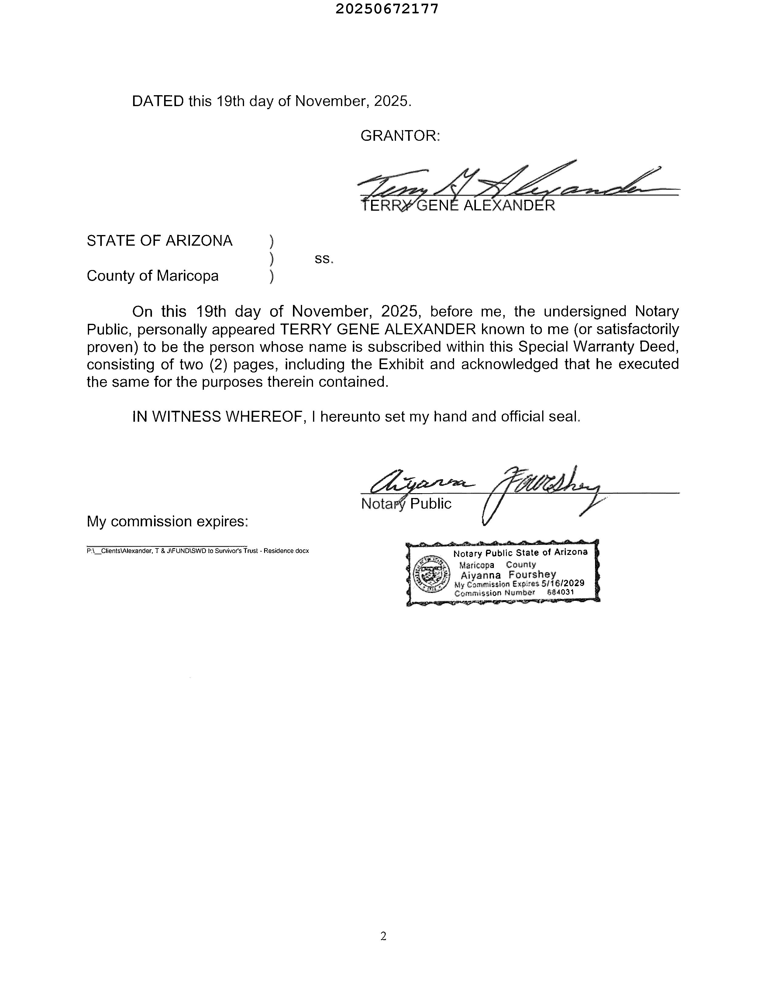 OWNER: TERRY ALEXANDER SURVIVORS T 2025 672177 11/20/2025