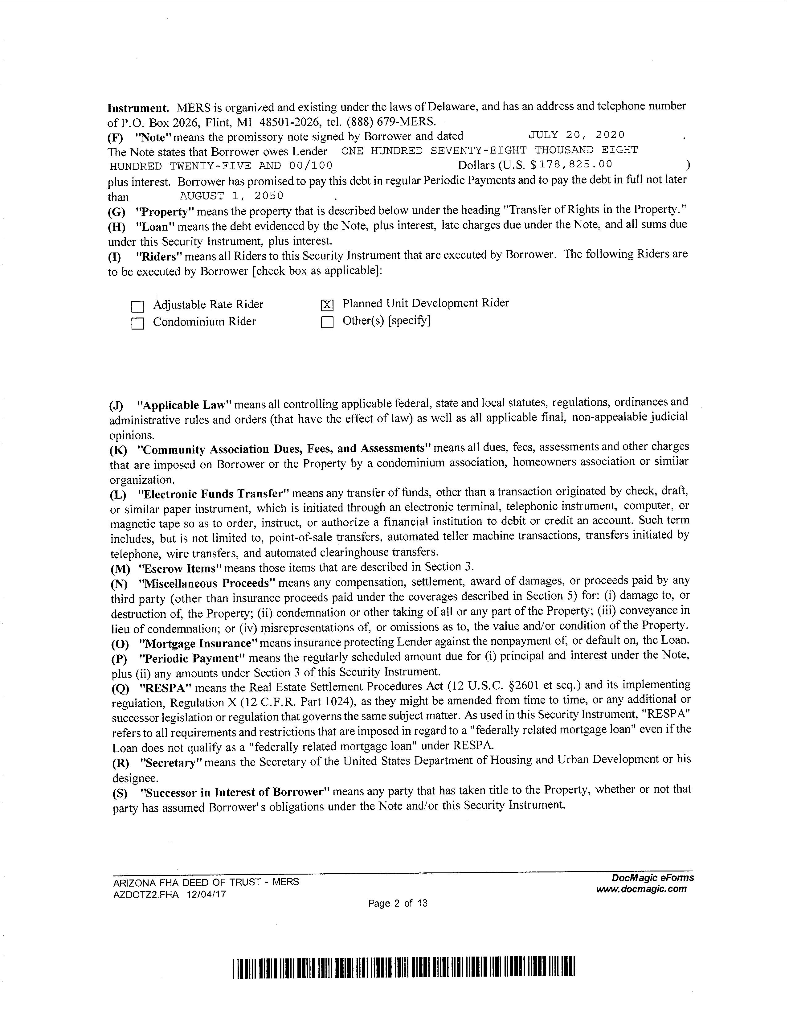 Recording/Sale Date : 07/21/2020 / 07/16/2020 1st Mtg Document # : 70237
