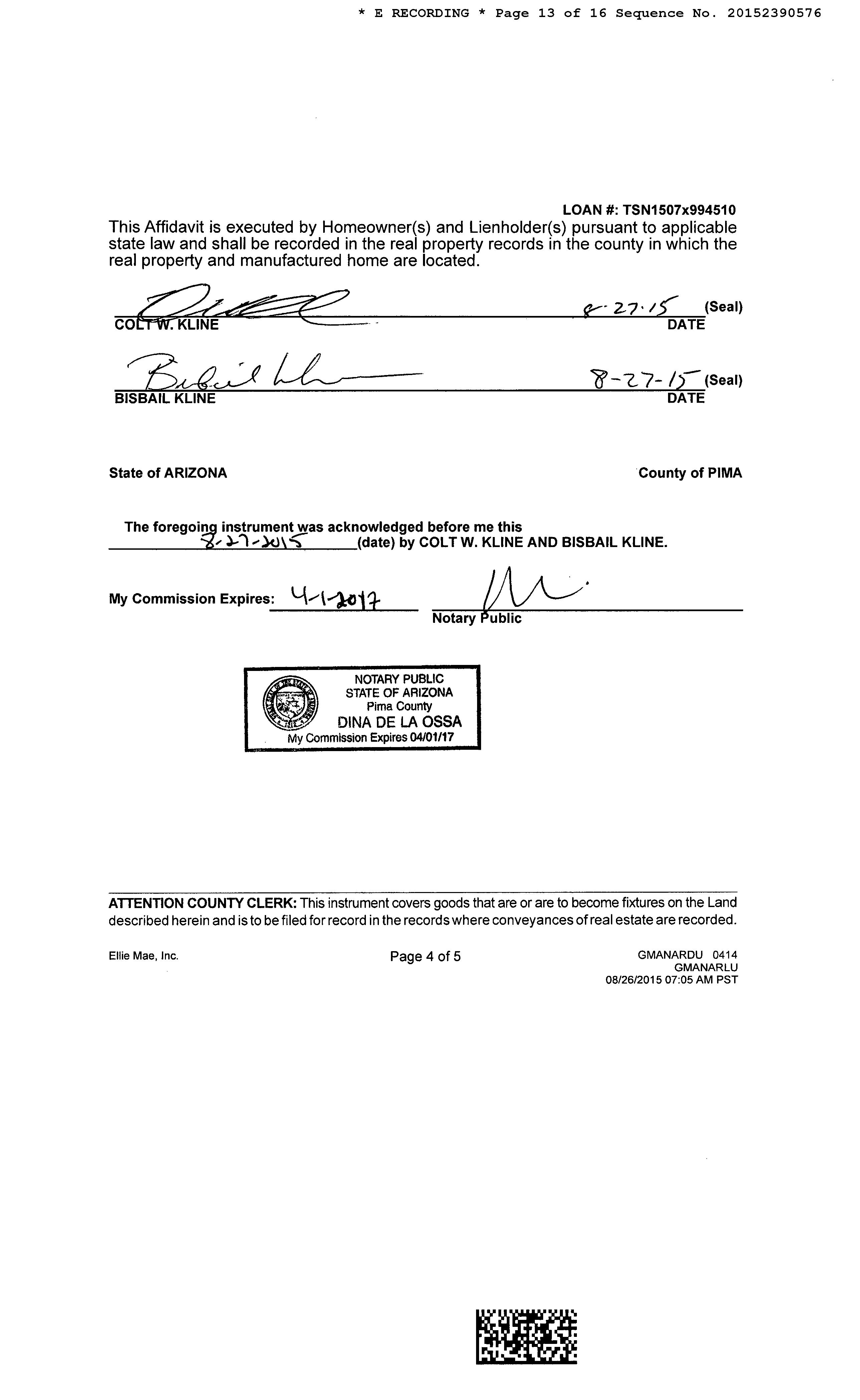 Owner Name : Kline Colt W / Kline Bisbail