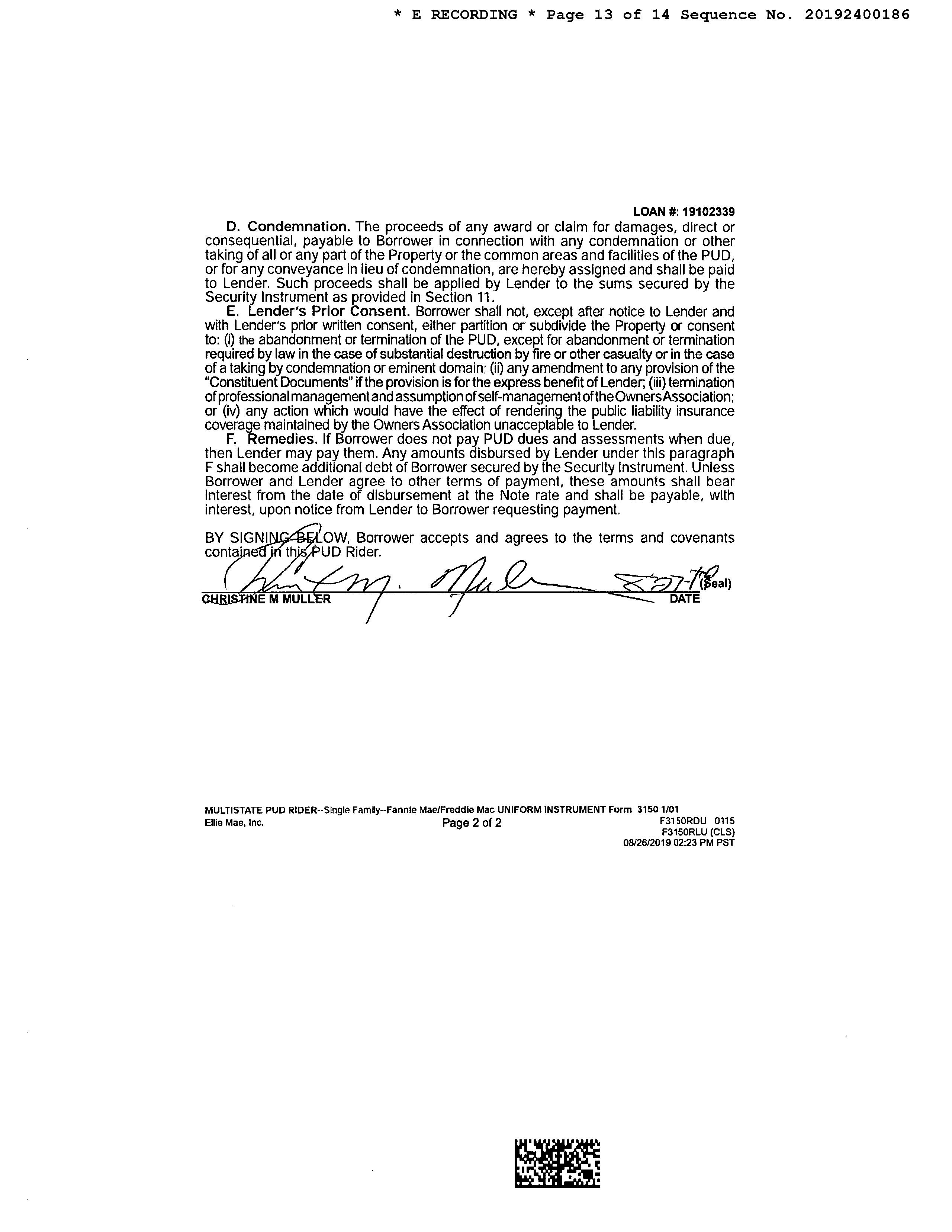 OWNER: MULLER CHRISTINE M AFFIDAVIT 2019 2400185 08/28/2019