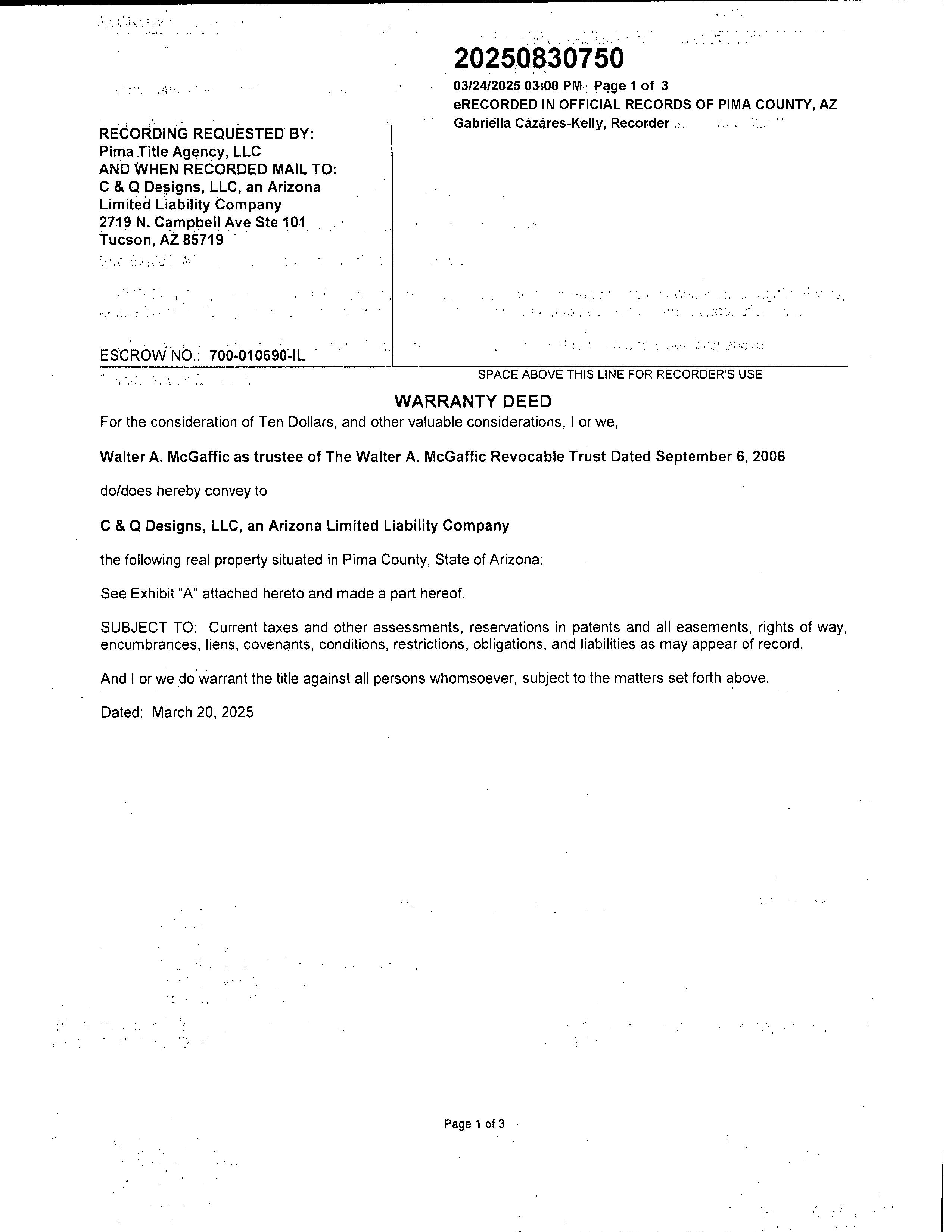 OWNER: C & Q DESIGNS LLC AFFIDAVIT 2025 830750 03/24/2025
