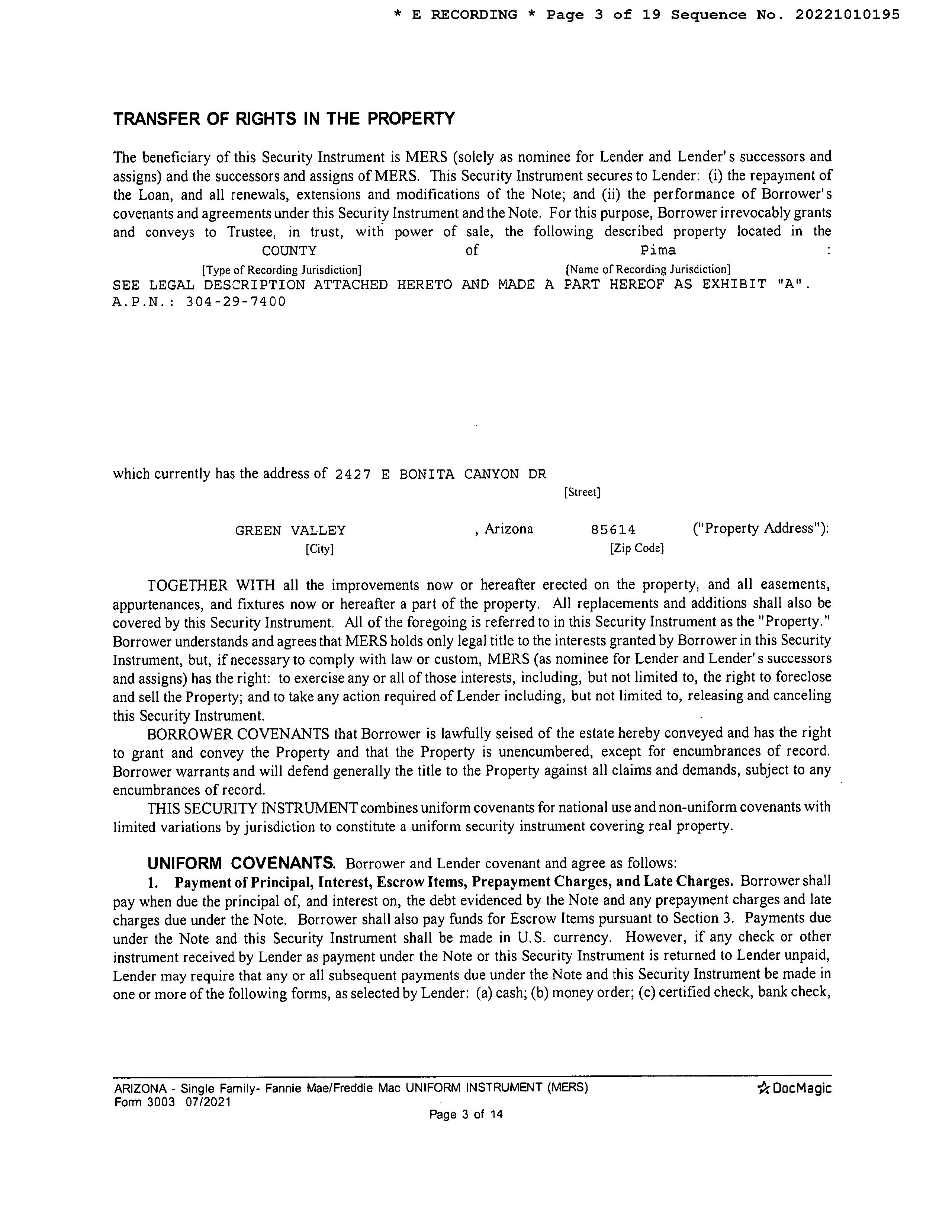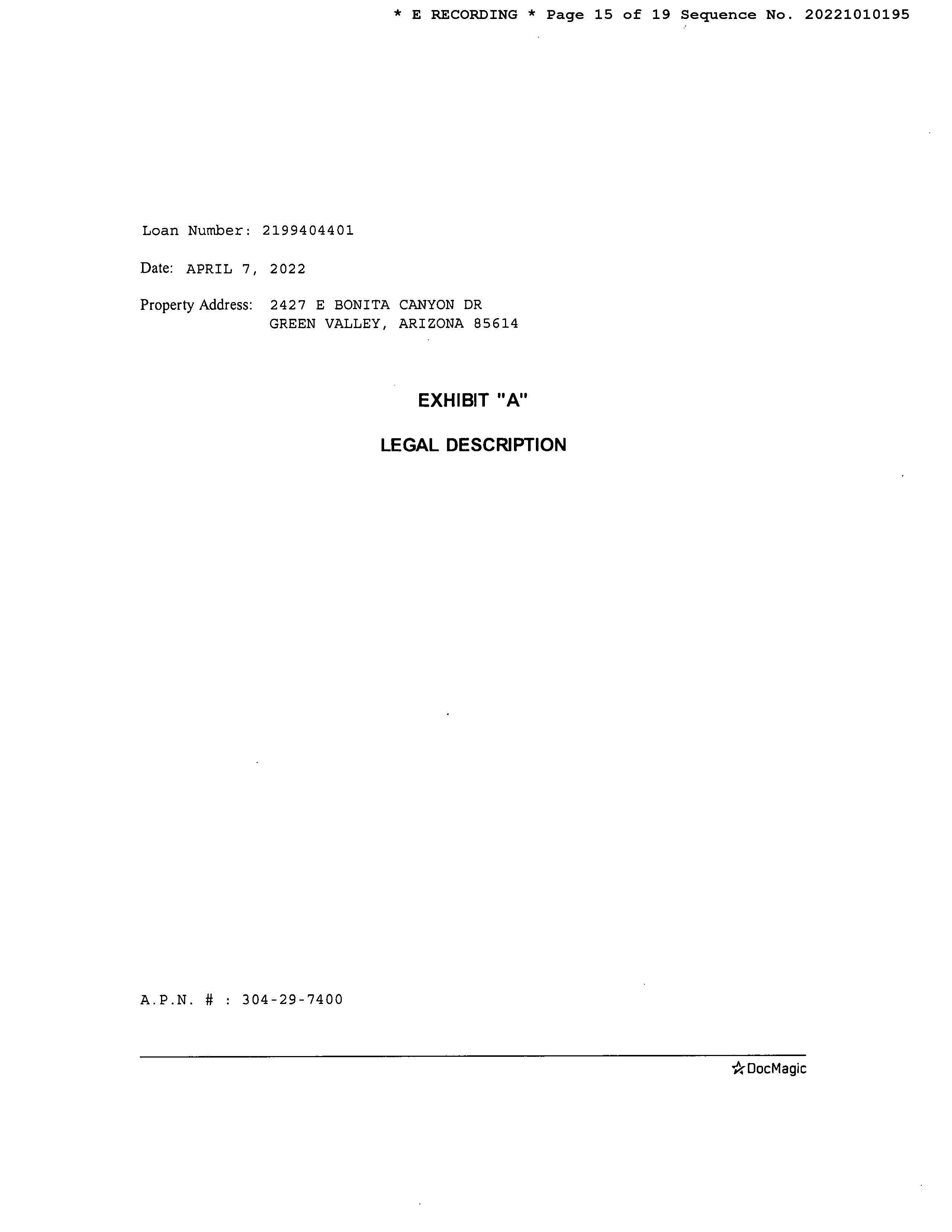 SITUS: 2427 E BONITA CANYON DR SAH