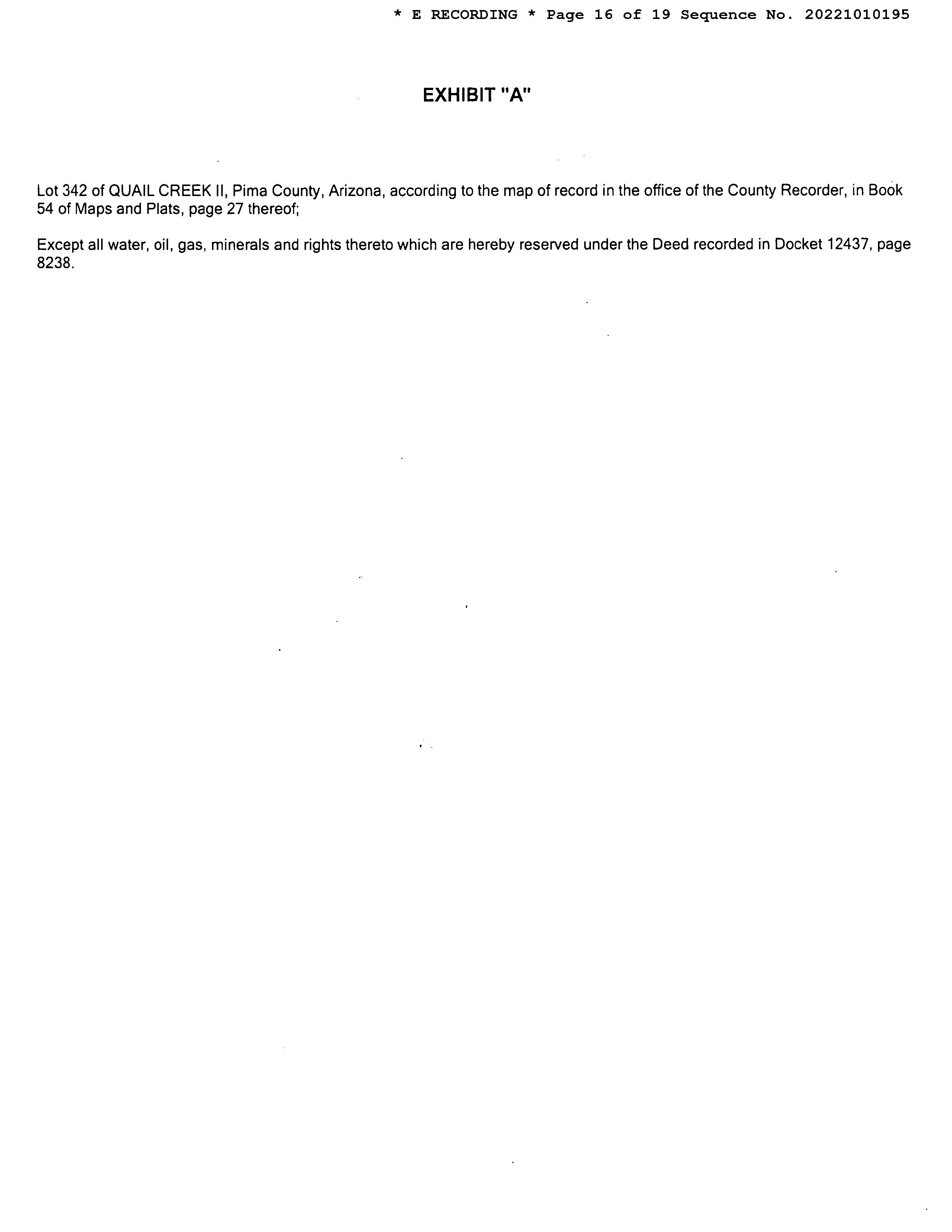 LegalDescriptionDetails LotNumber:342District:SANTARITAFCity,Municipality,Township:QUAILCREEKSubdivisionName:QUAILCREEKIISec/Twn/Rng/Mer:SEC05TWN 18SRNG14EBriefDescription:QUAILCREEKIILOT342Recorder'sMapRef:PLAT:27