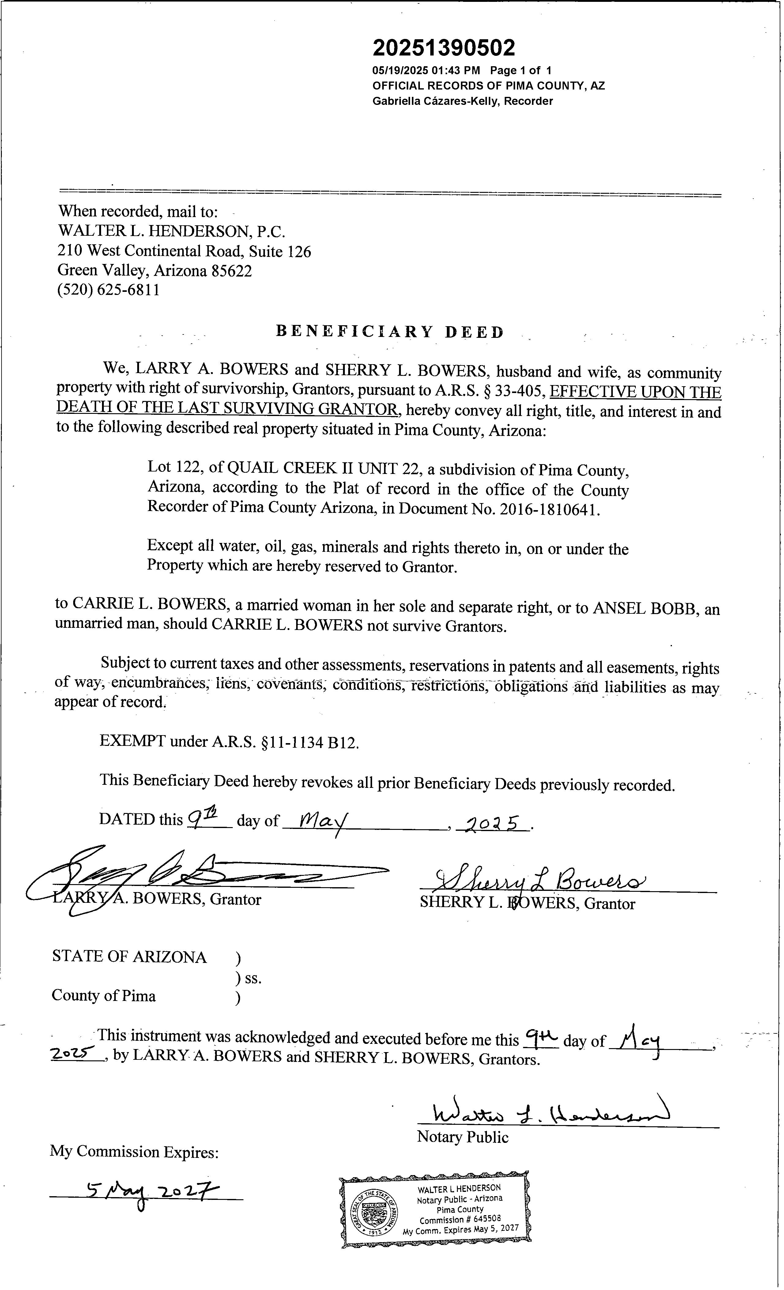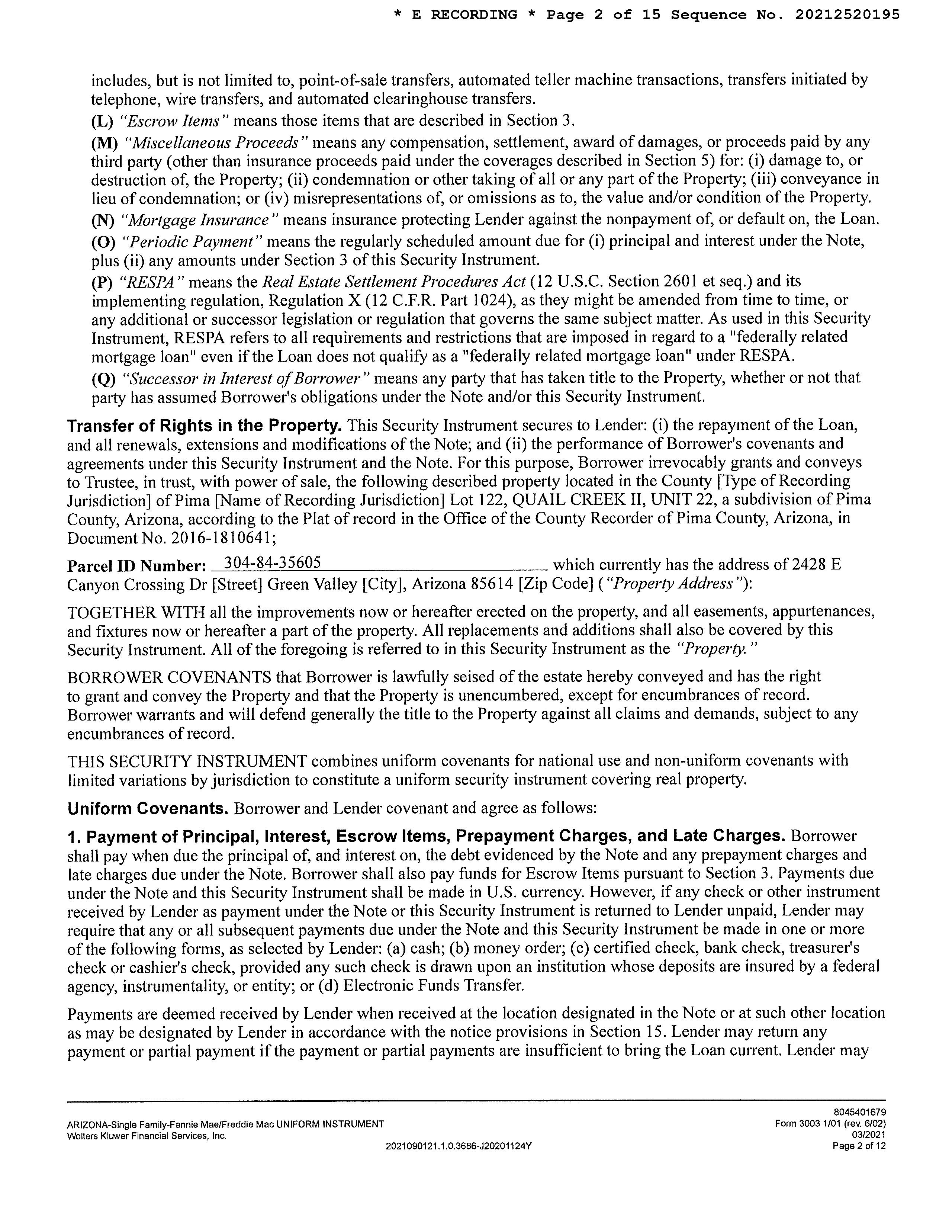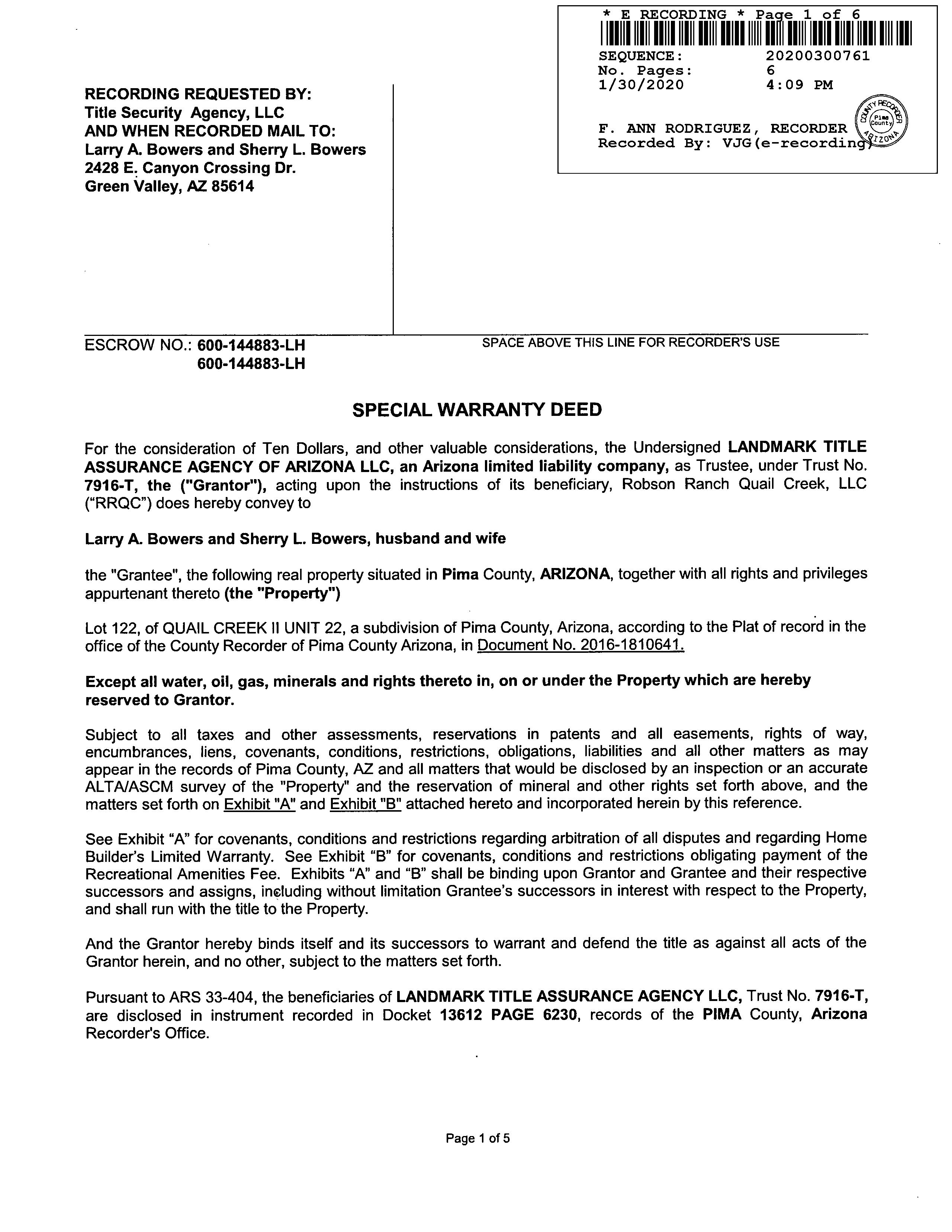 LEGAL: QUAIL CREEK II UNIT 22 LOT 122 SQ20161810641