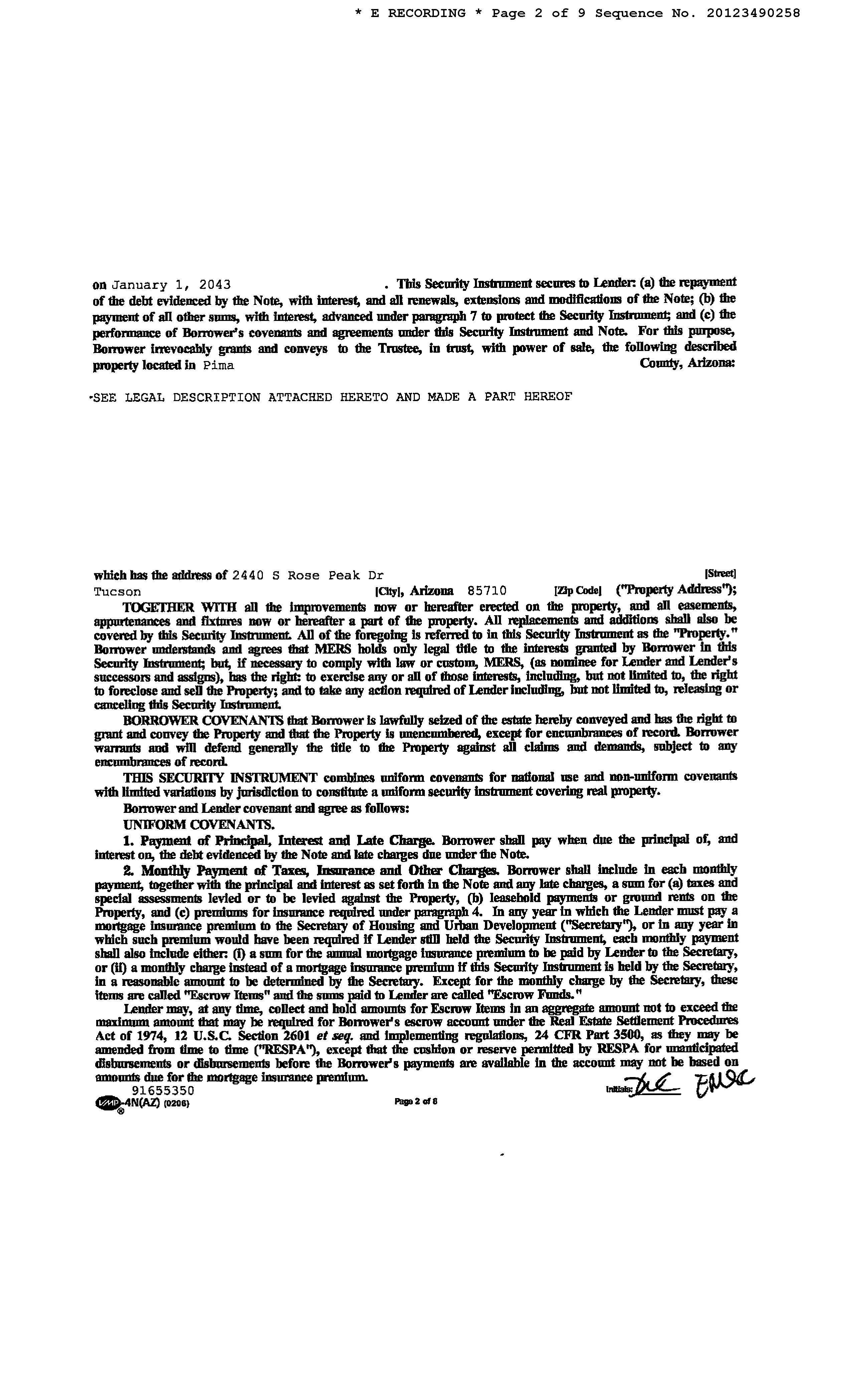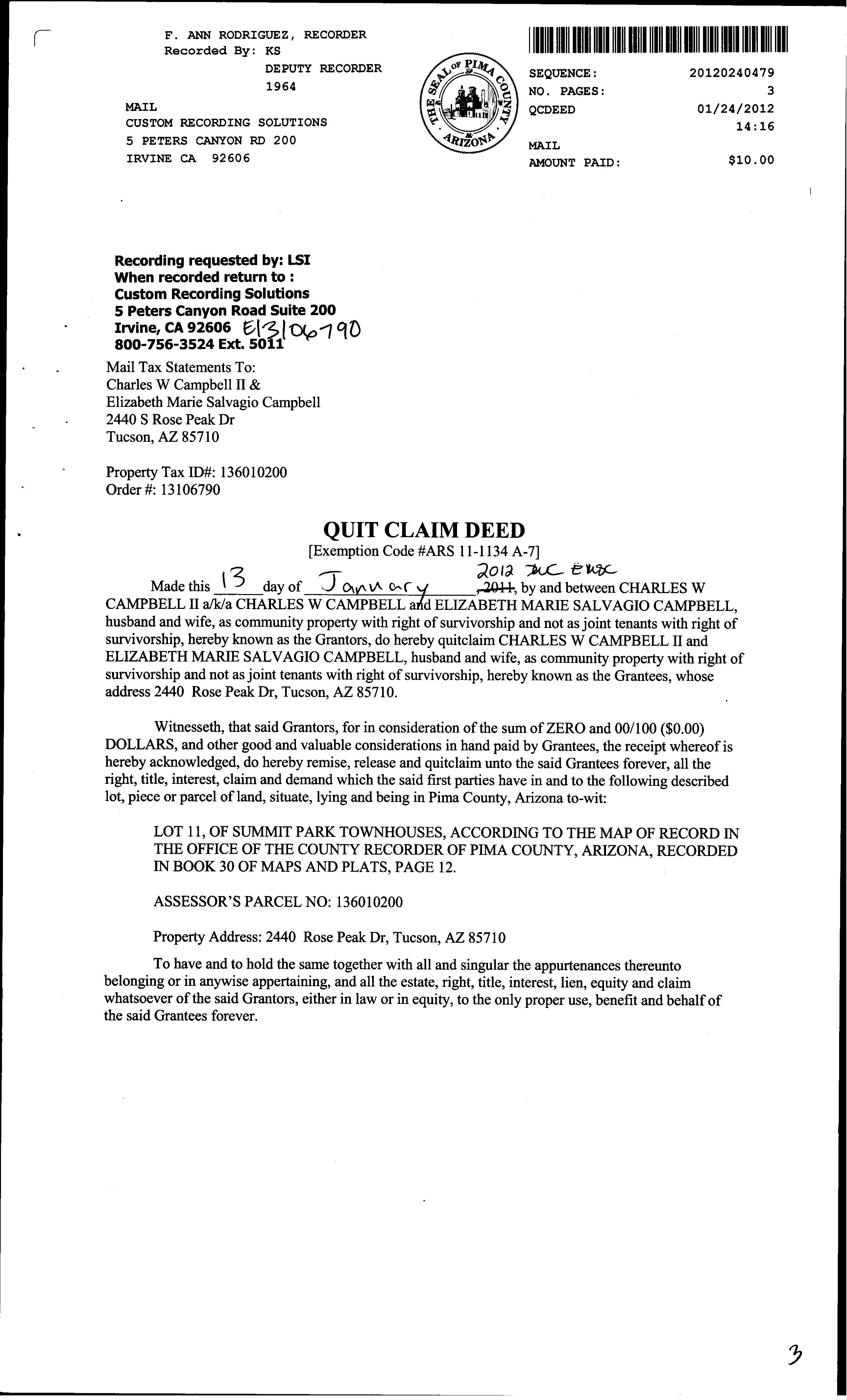 Mailing Address : 2440 S Rose Peak Dr, Tucson AZ 85710-6122 C040