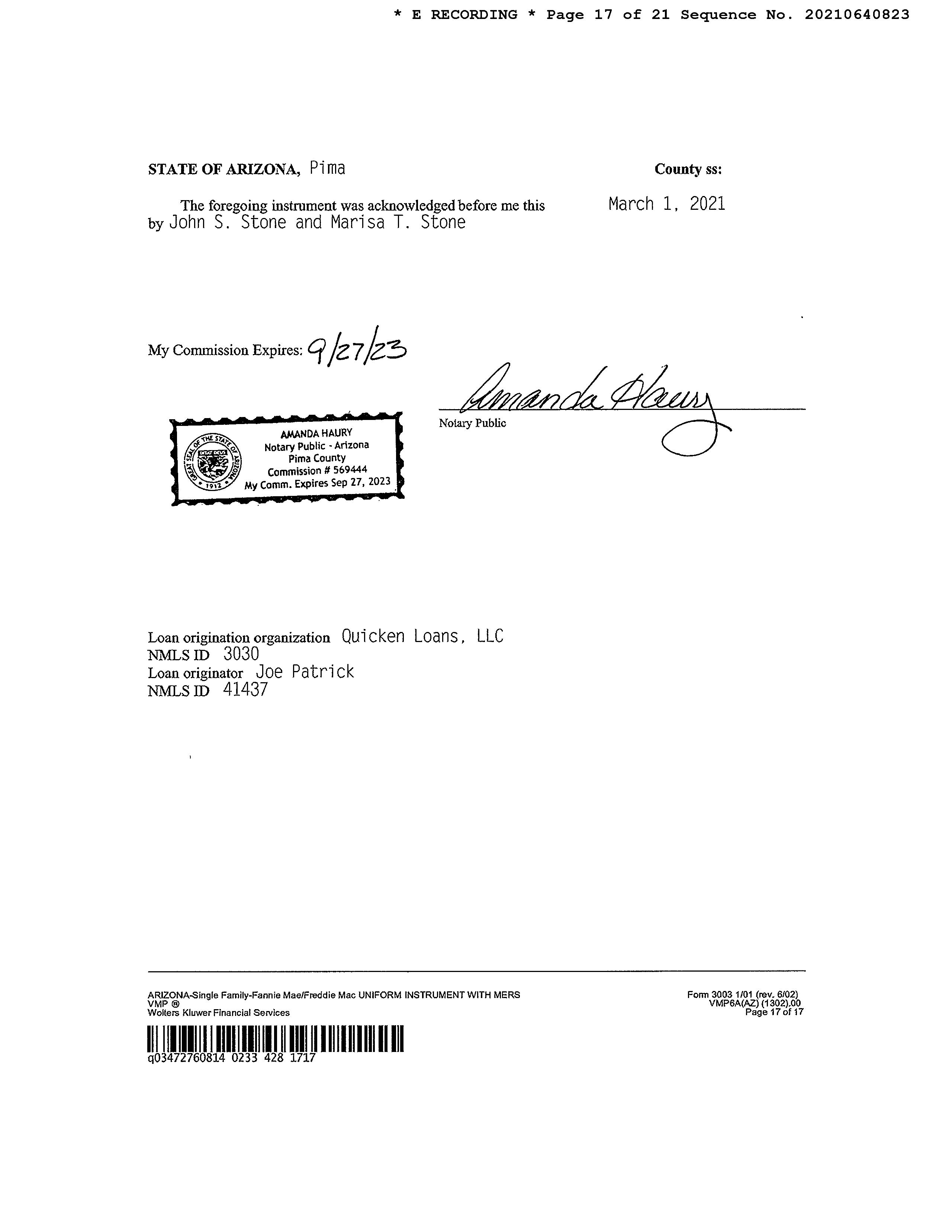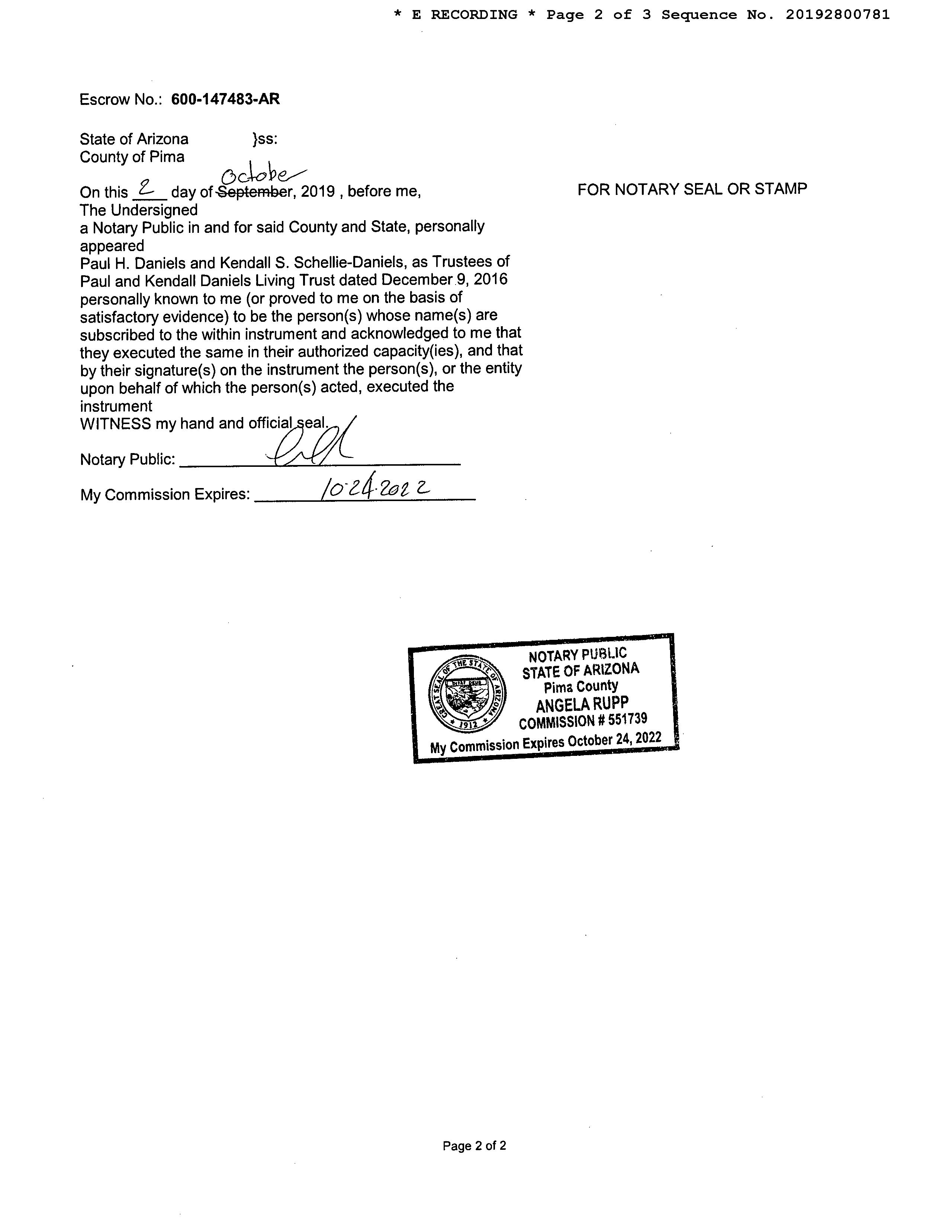 Type : Warranty Deed Price Per SqFt : $237.11 Title Company : Catalina Title Agcy Lender : Vip Mtg Seller Name : Daniels Paul & Kendal