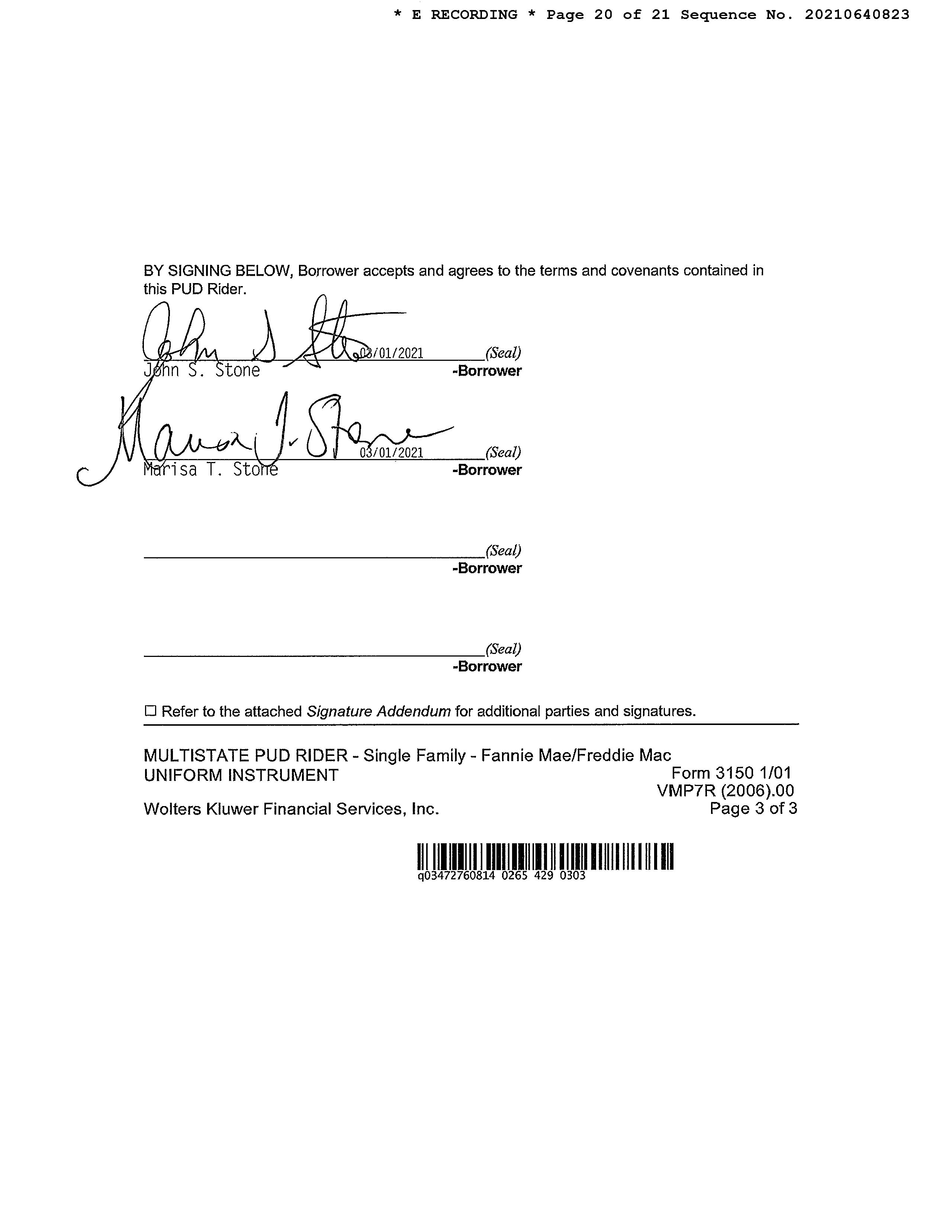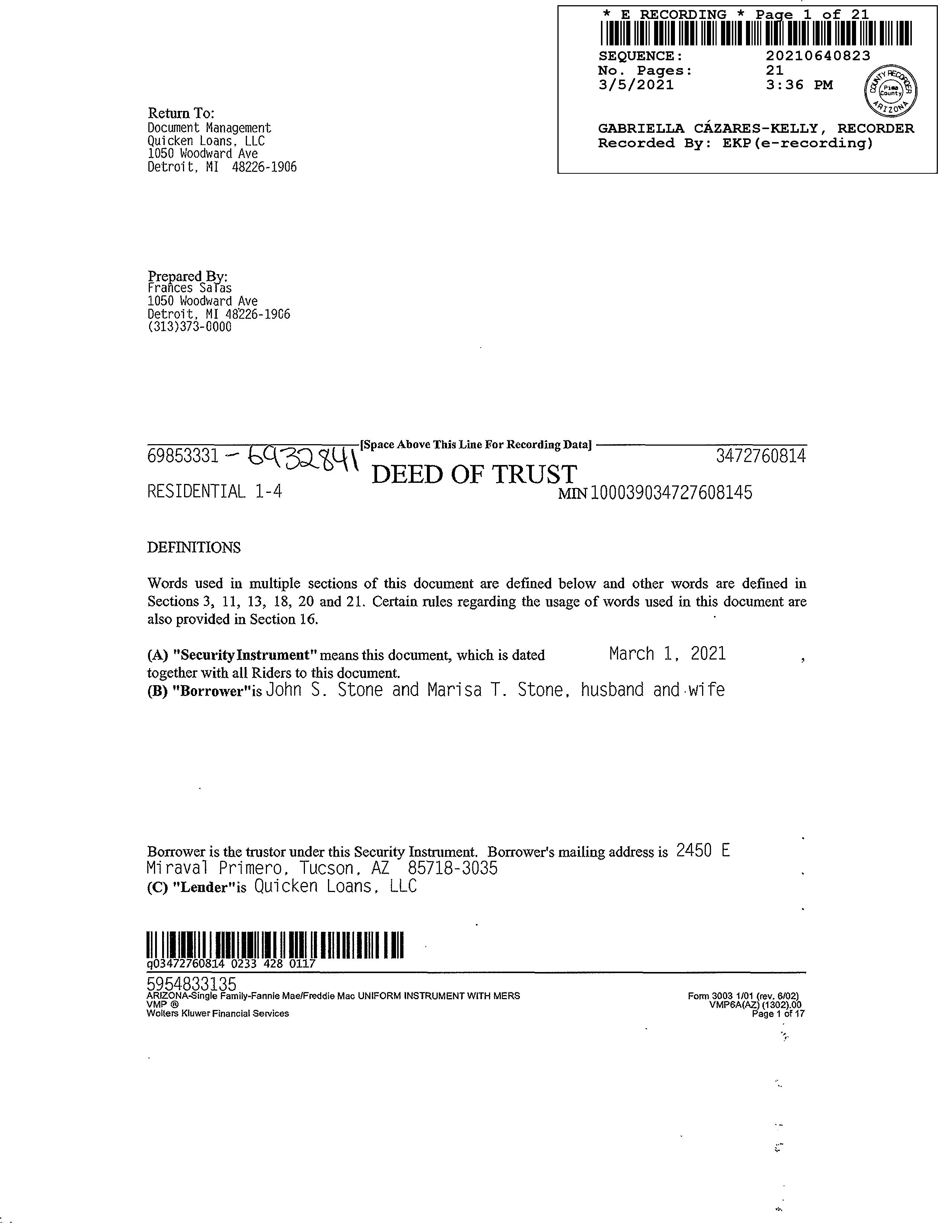 OWNER: STONE JOHN S & MARISA T AFFIDAVIT 2019 2800781 10/07/2019