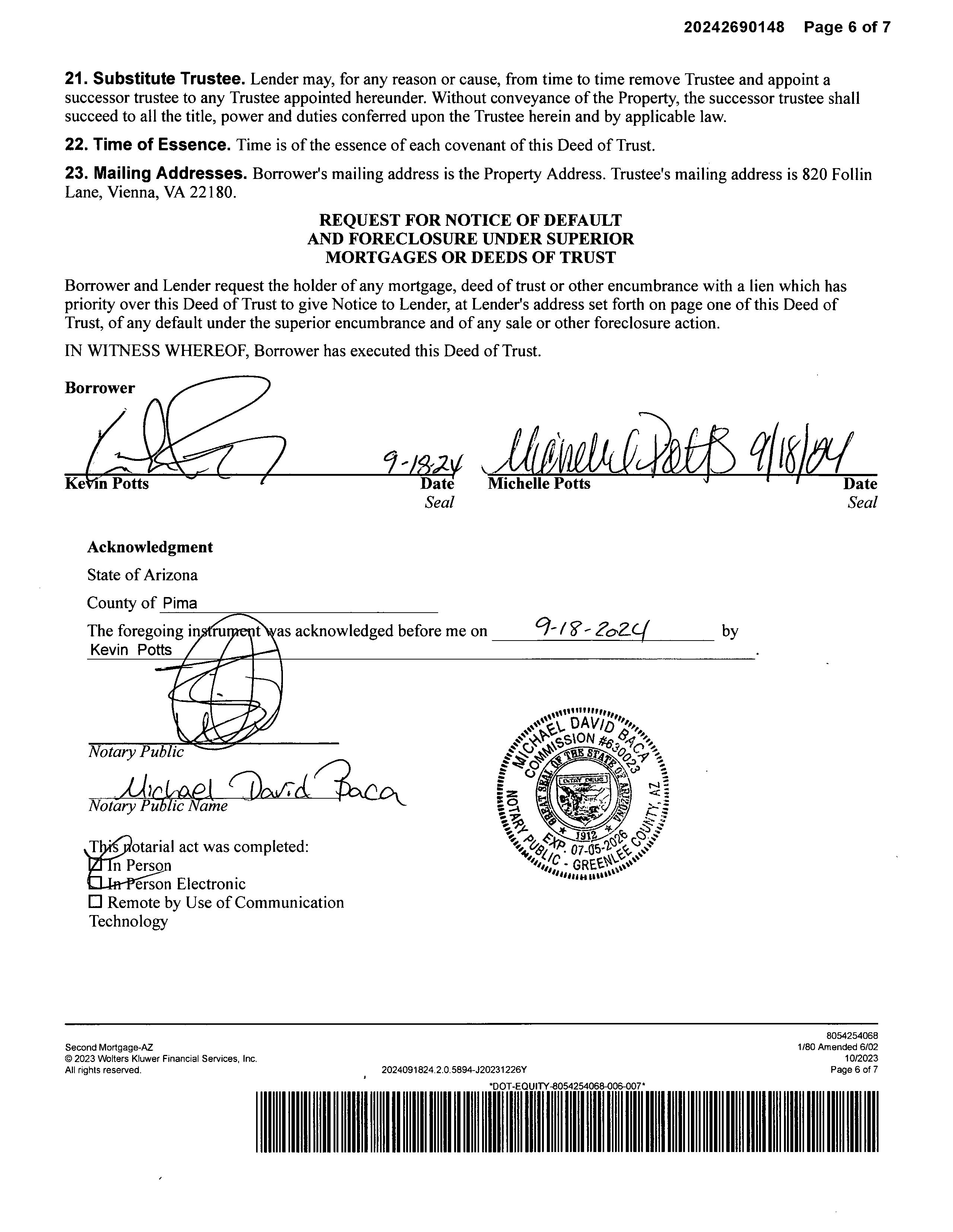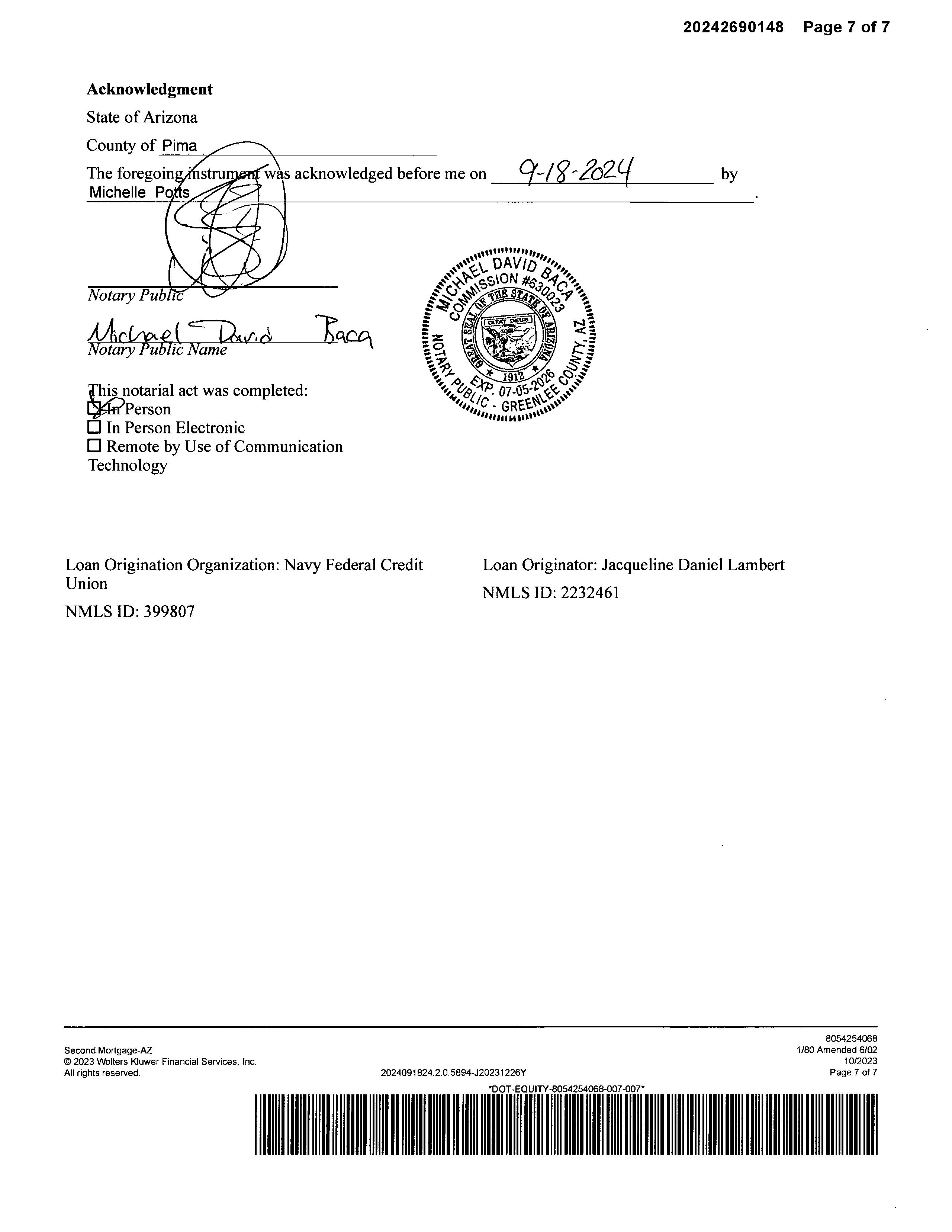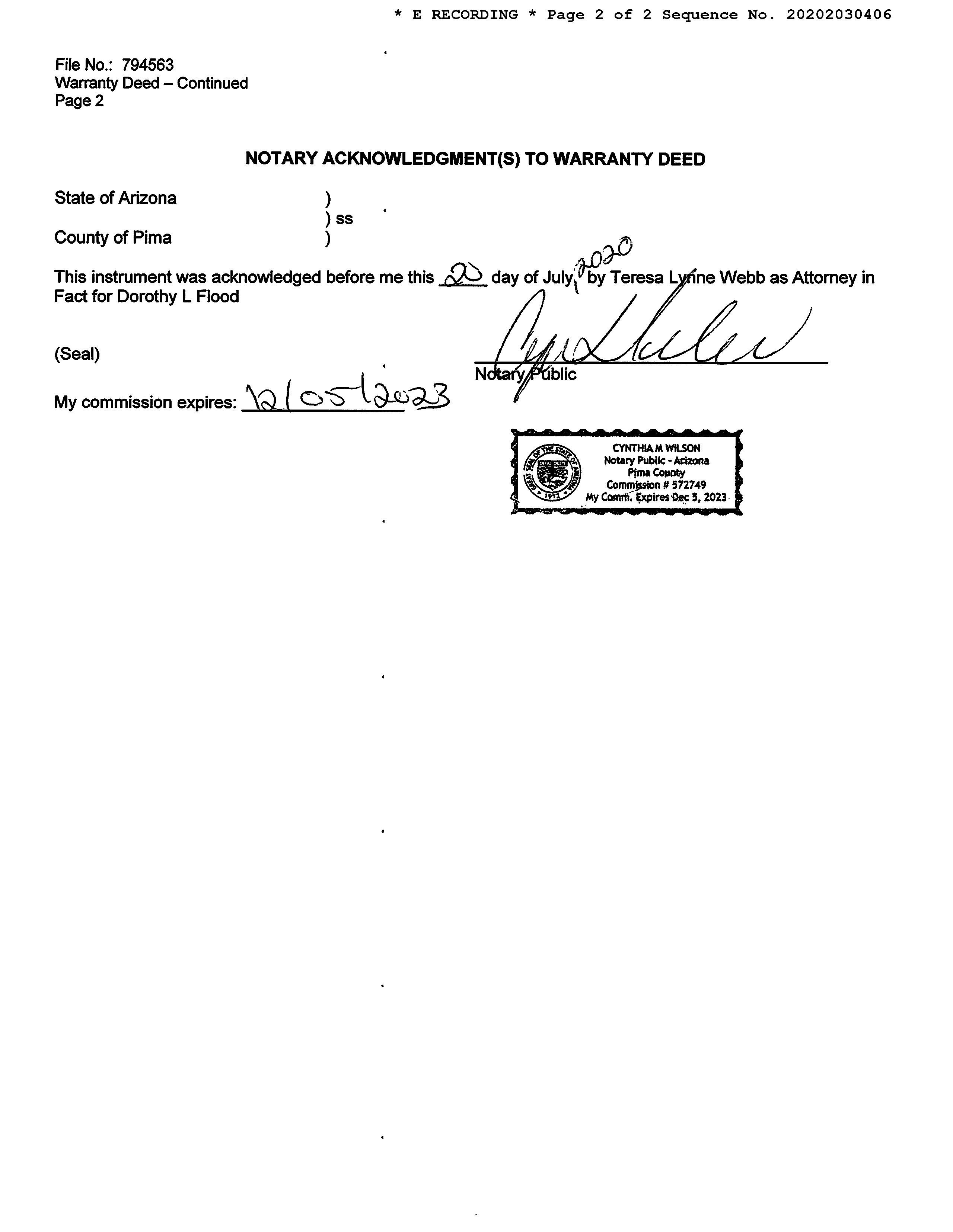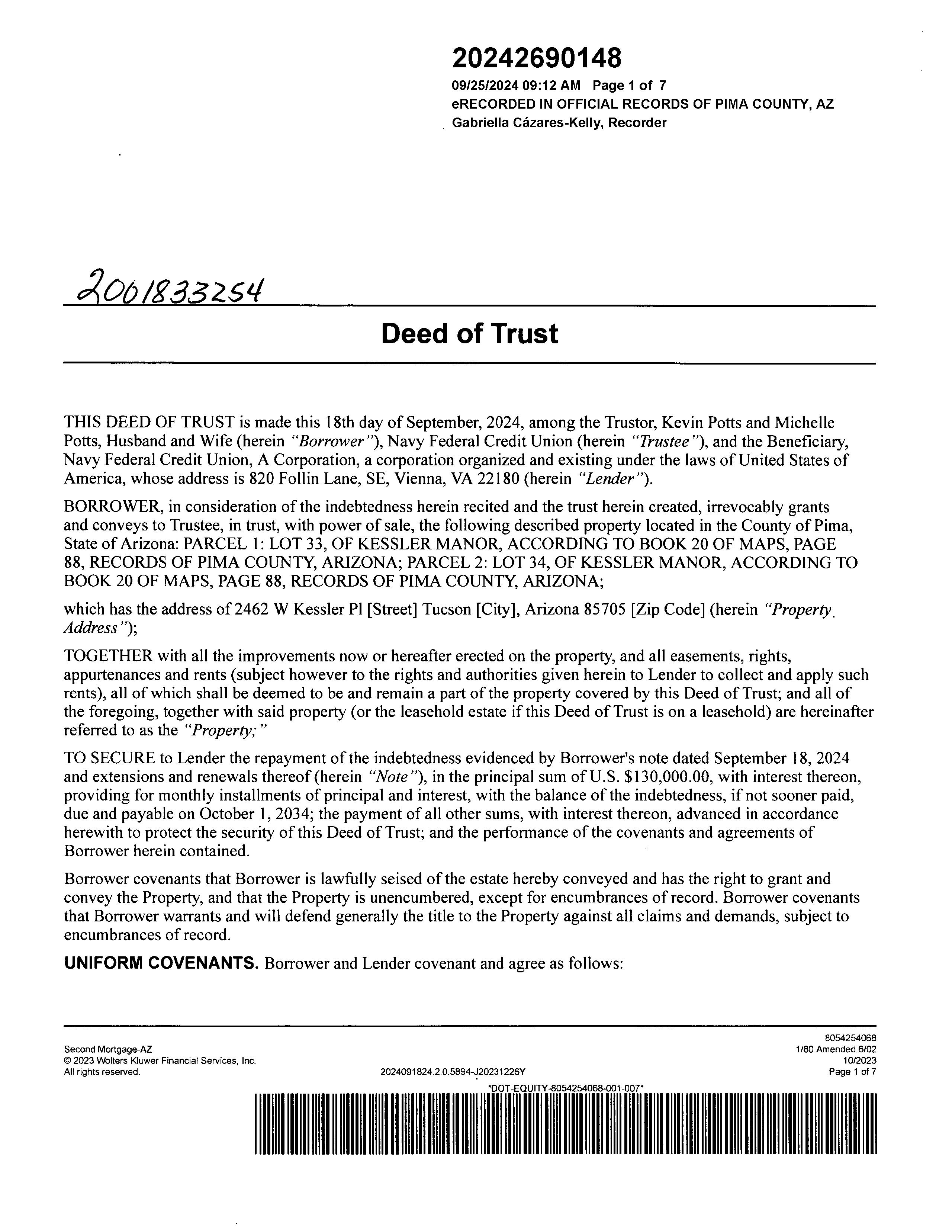 Mailing Address : 2462 W Kessler Pl, Tucson AZ 85705-1852 C034