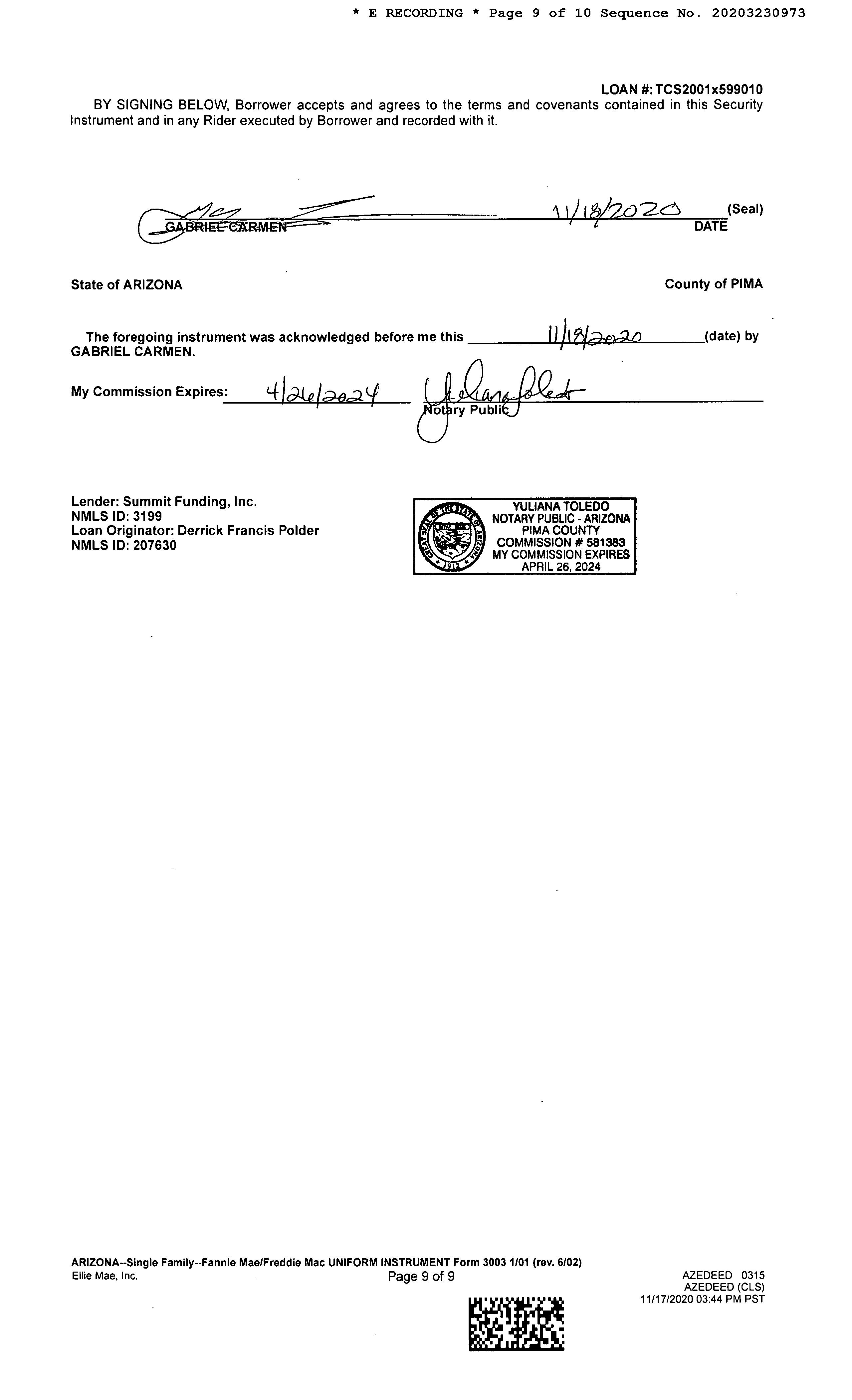 OWNER: CARMEN GABRIEL AFFIDAVIT 2020 3230972 11/18/2020