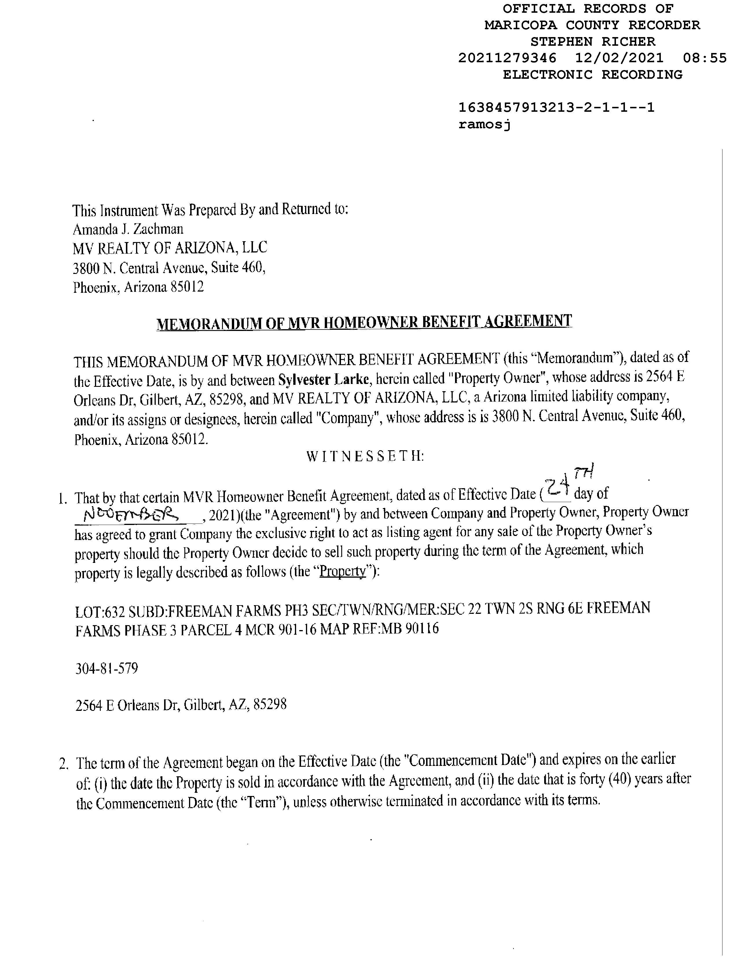 Mailing Address : 2564 E Orleans Dr, Gilbert AZ 85298-2307 R113