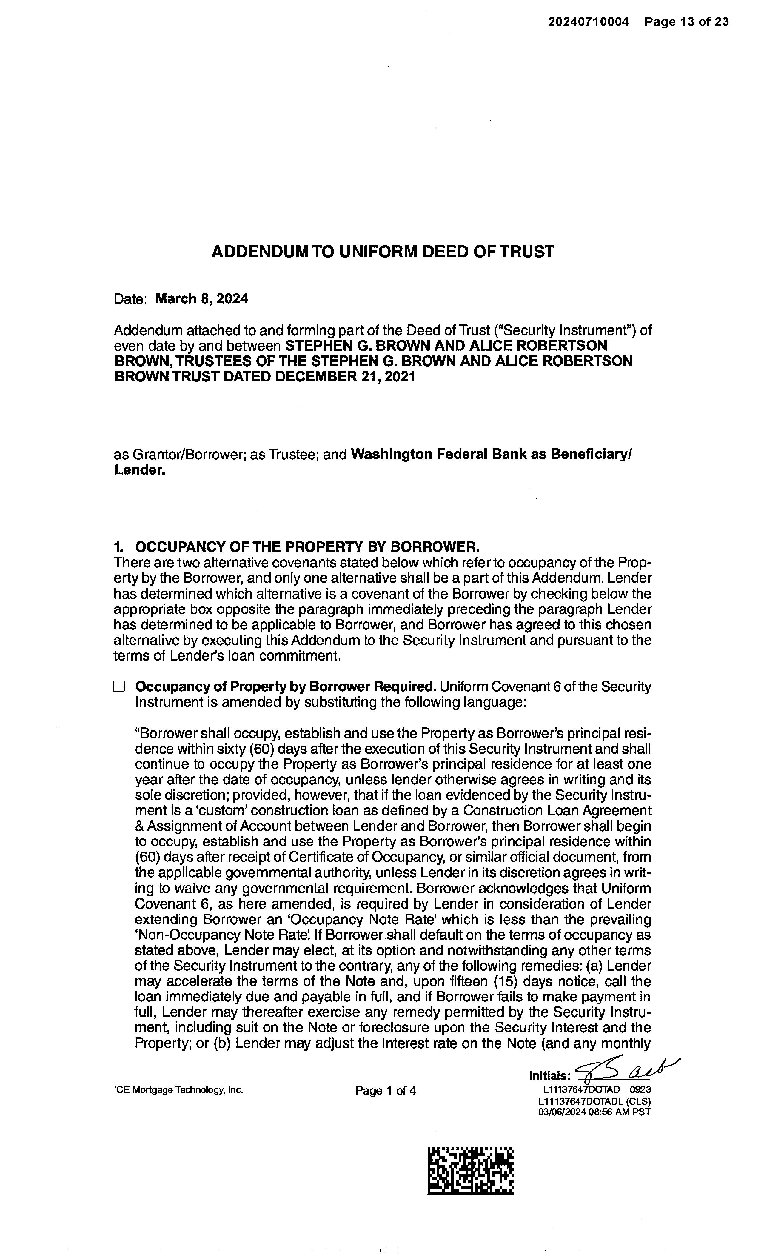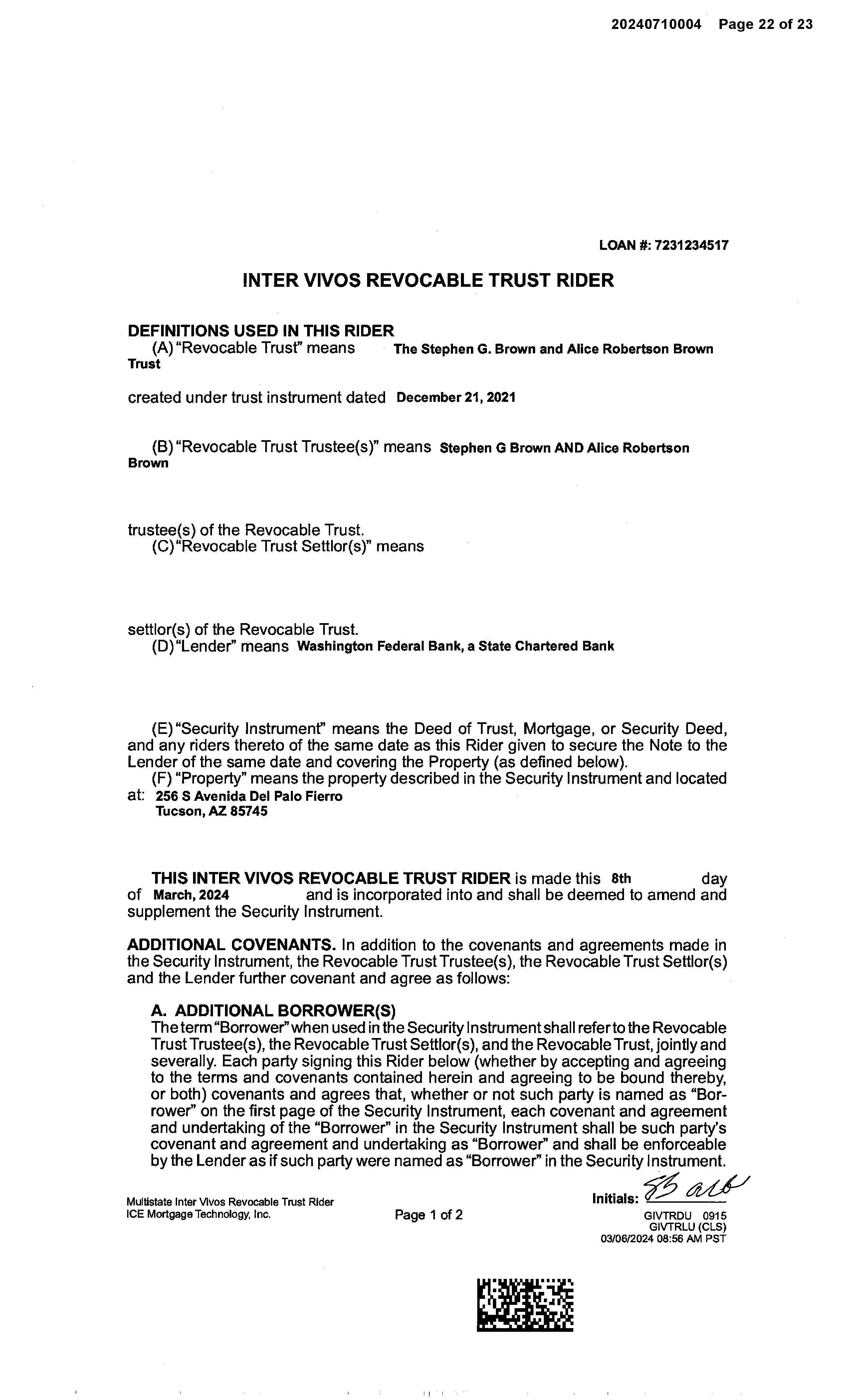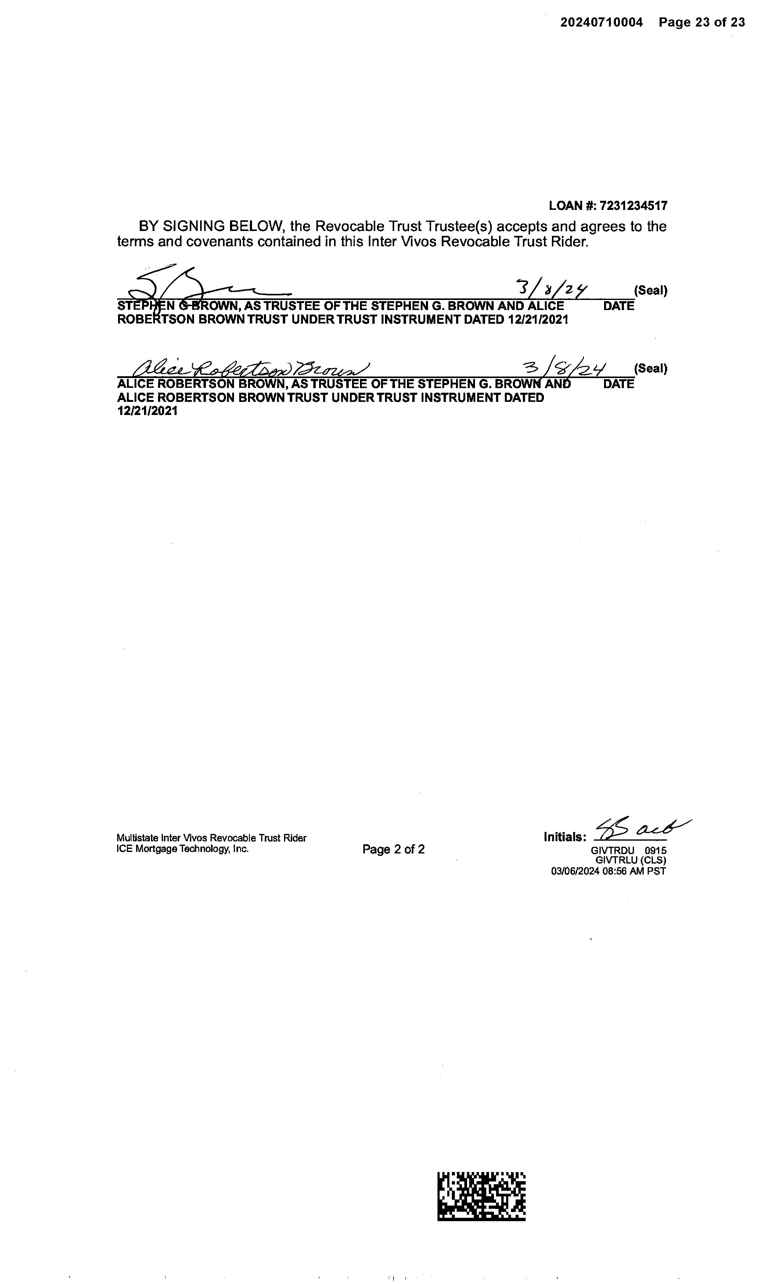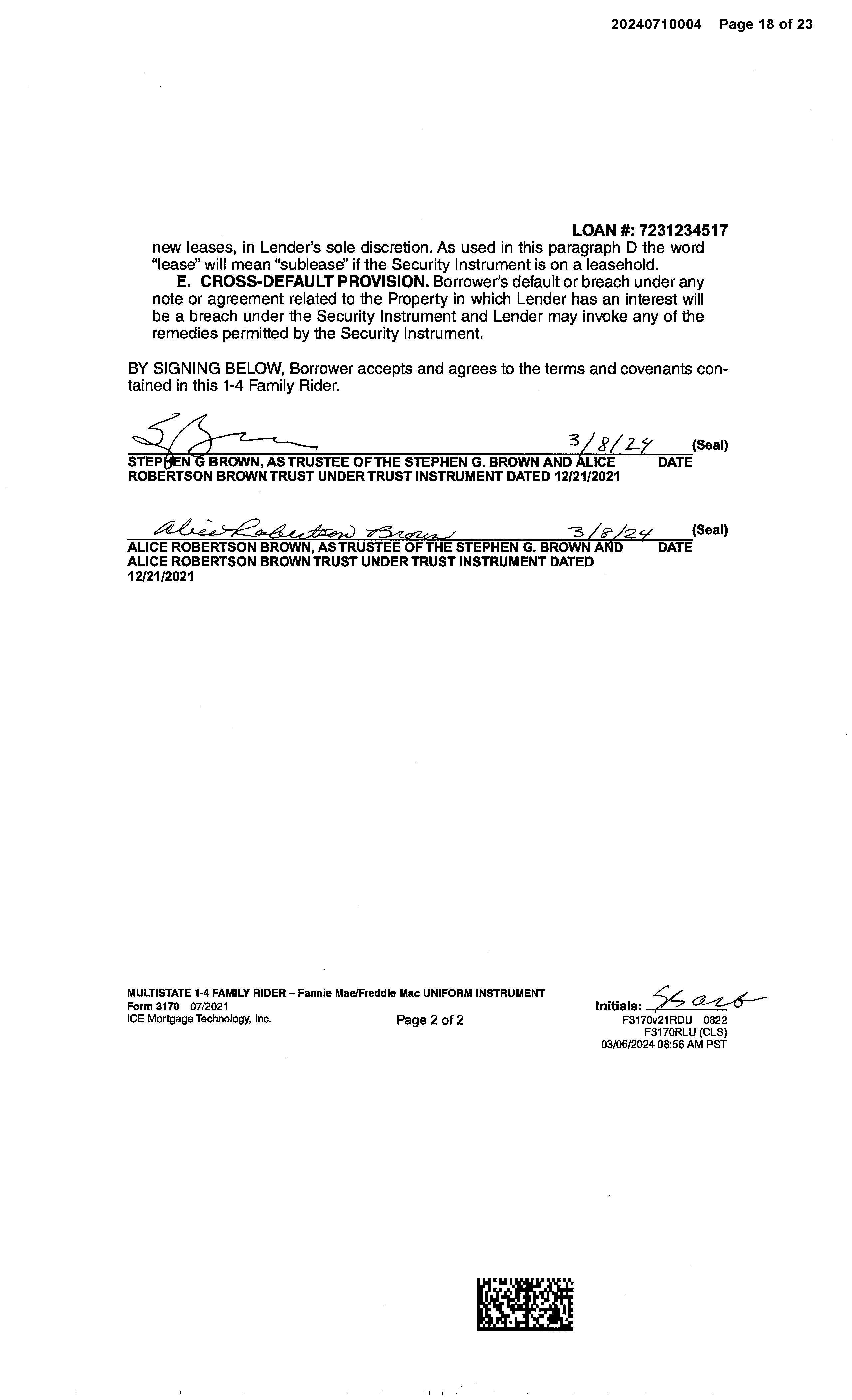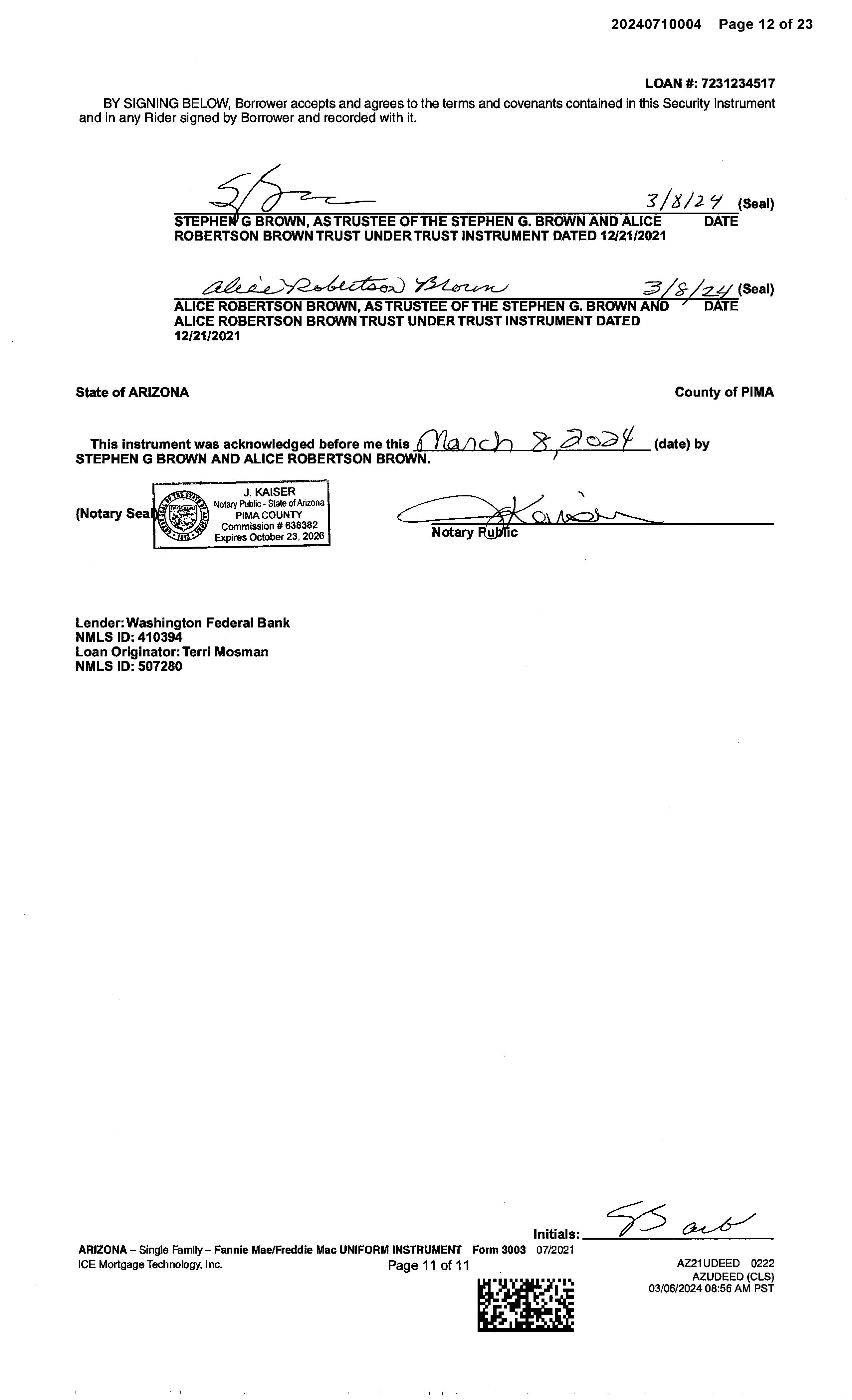 OWNER: STEPHEN G BROWN AND ALICE R AFFIDAVIT 2022 3430321 12/09/2022