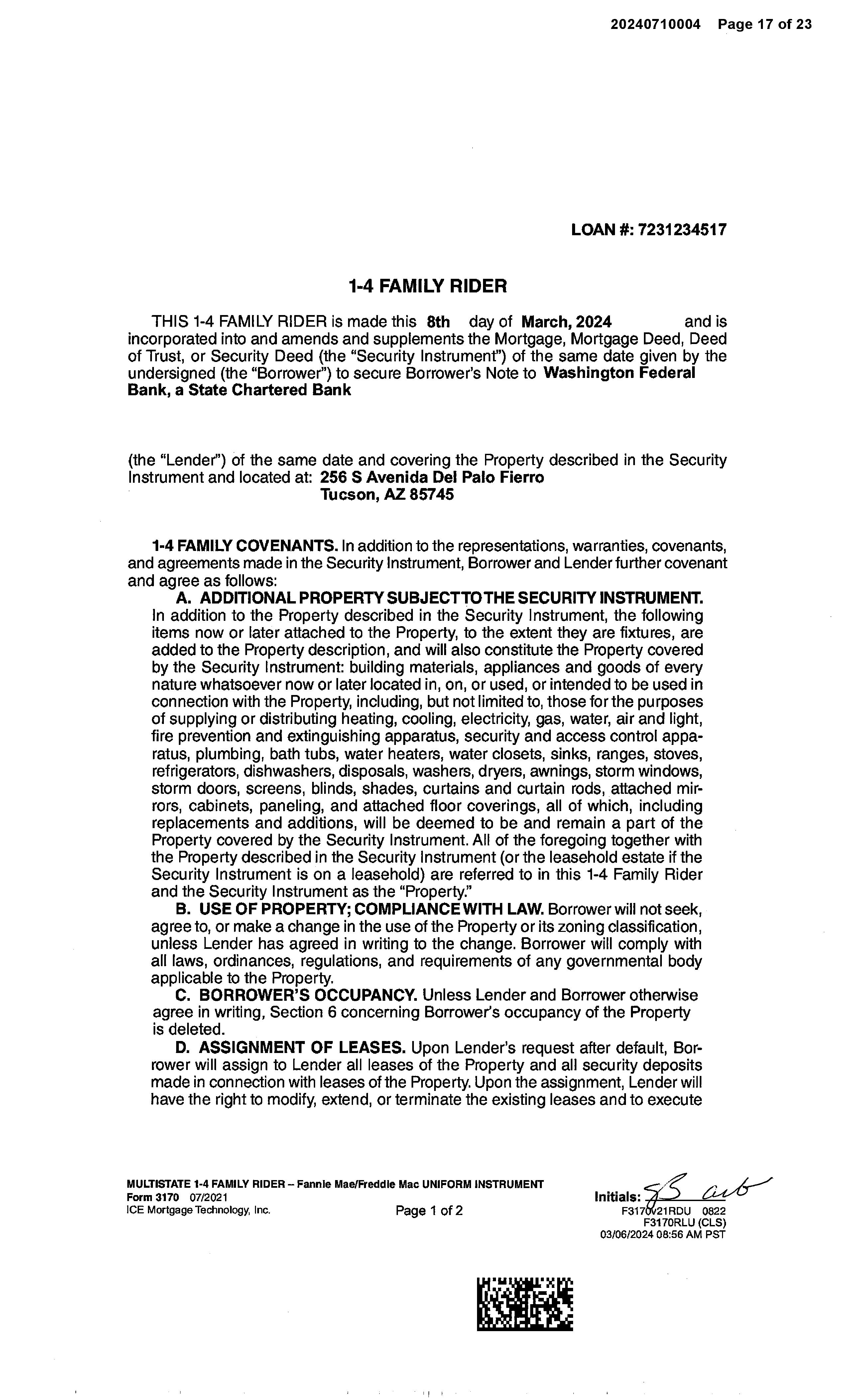 Mailing Address : 256 S Avenida Del Palo Fiero, Tucson AZ 85745-3199 C024