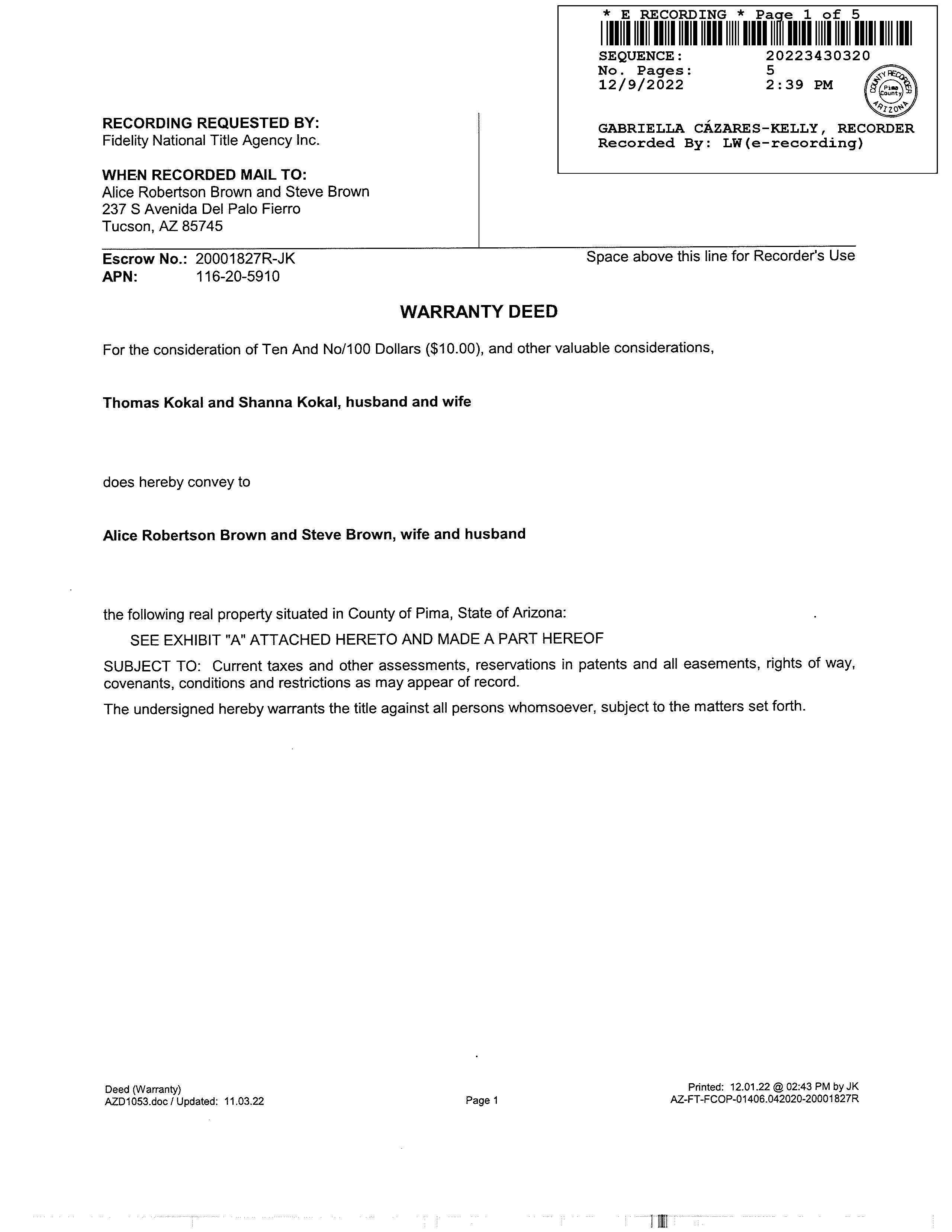 2022 3430320 WD KOKAL THOMAS & SHANNA