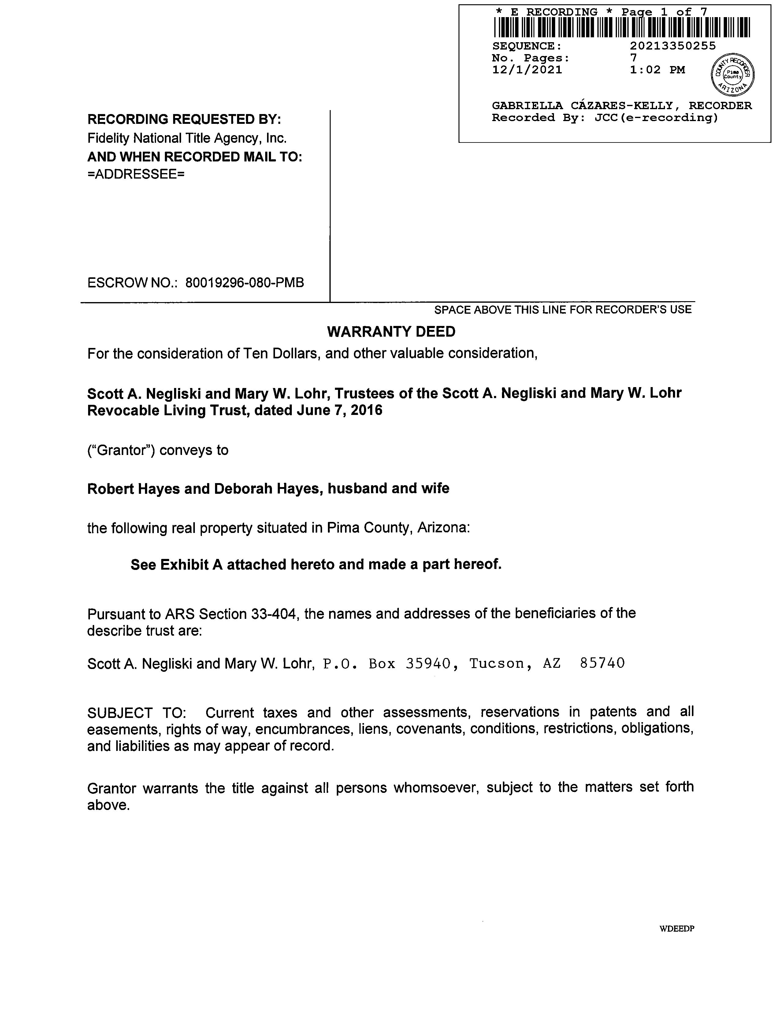 Deed Type : Warranty Deed