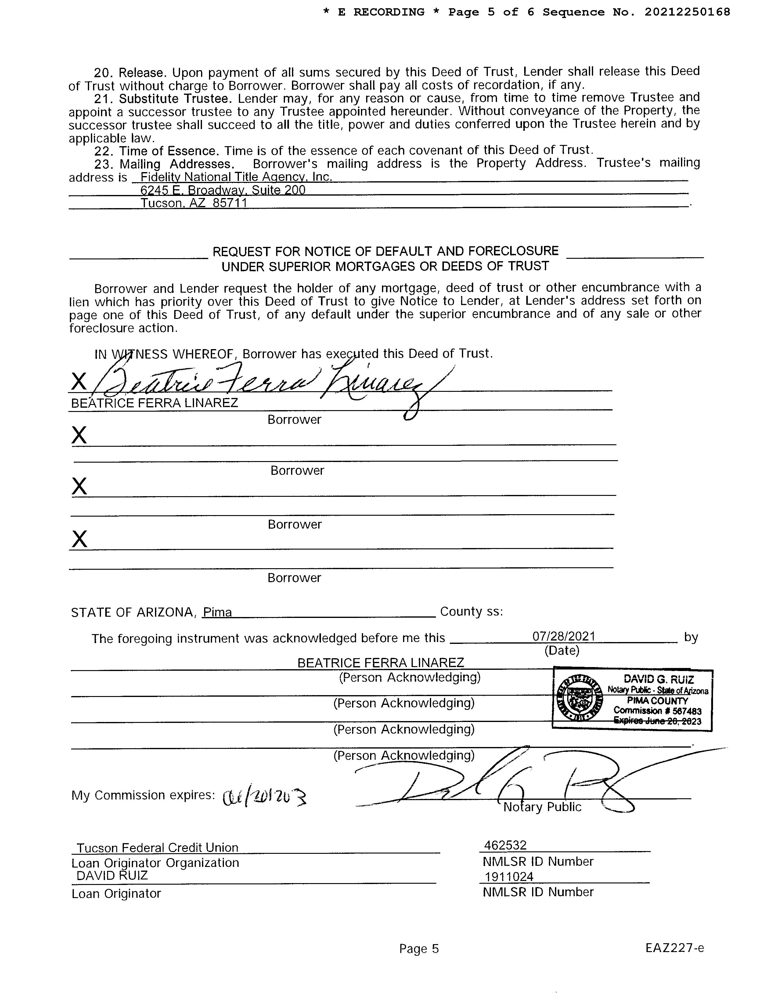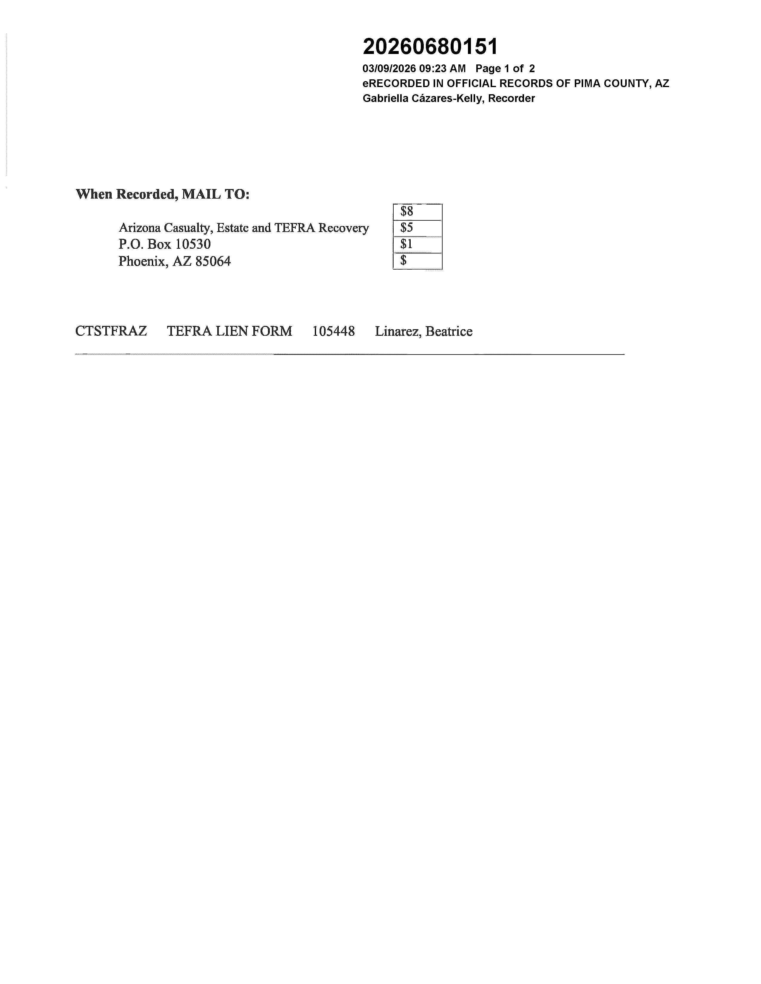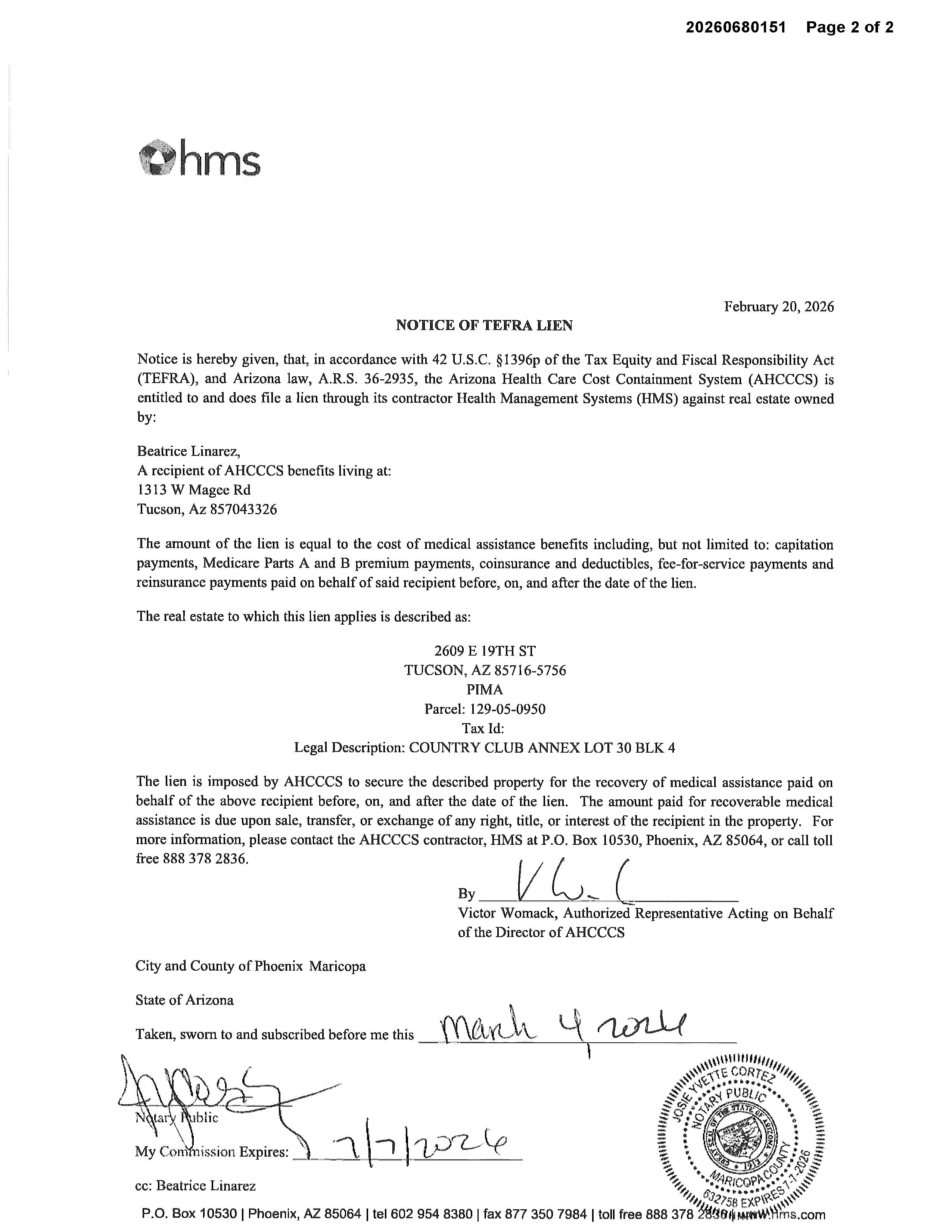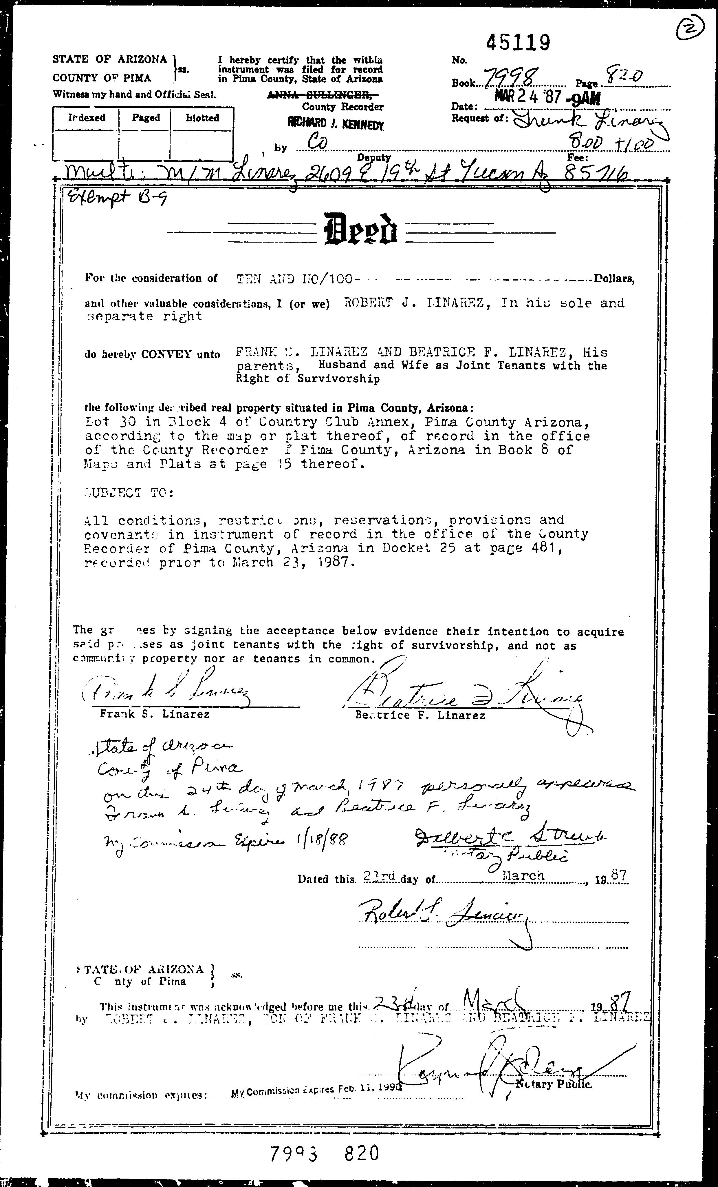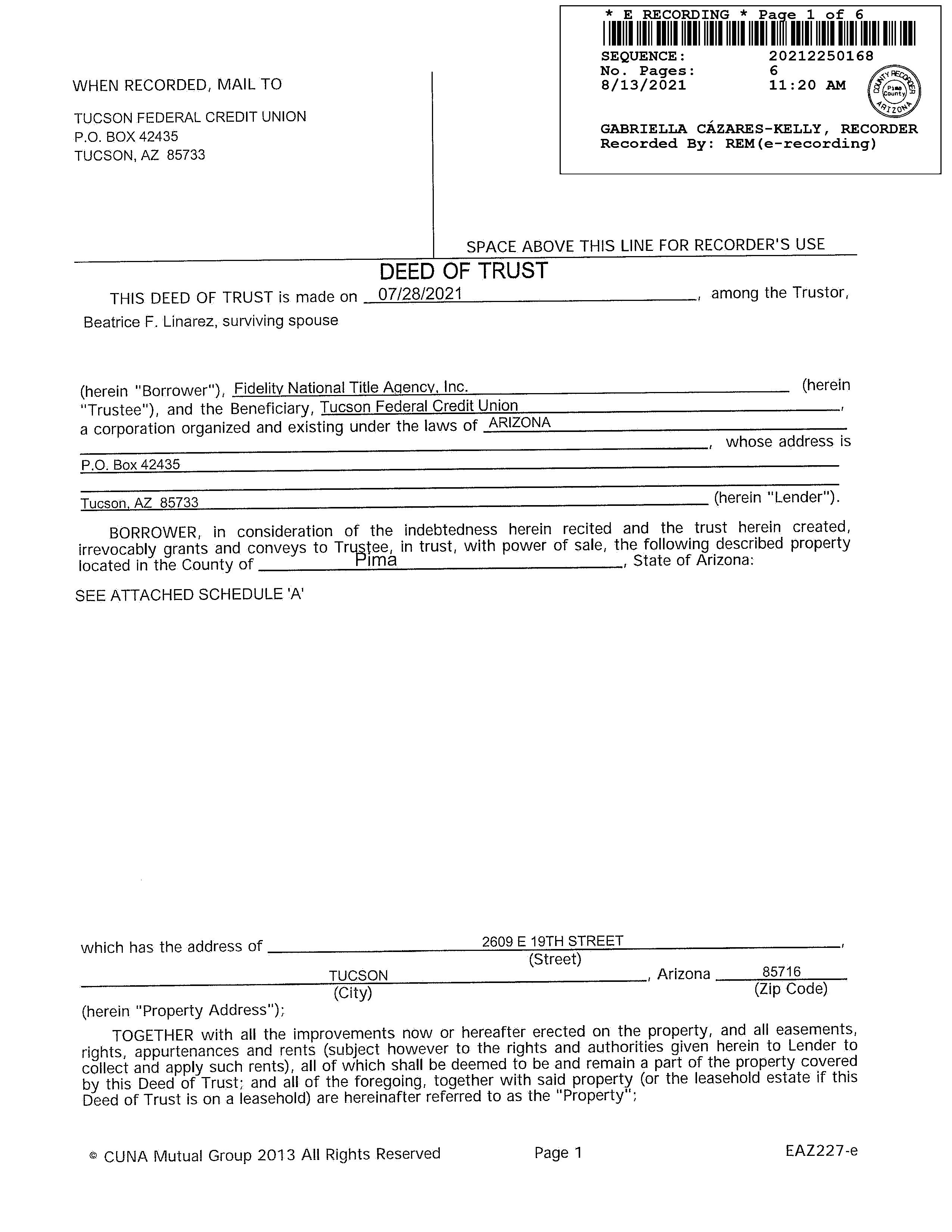 Owners Name: Address: LINAREZ BEATRICE F 2609 E 19TH ST TUCSON AZ 85716-5756