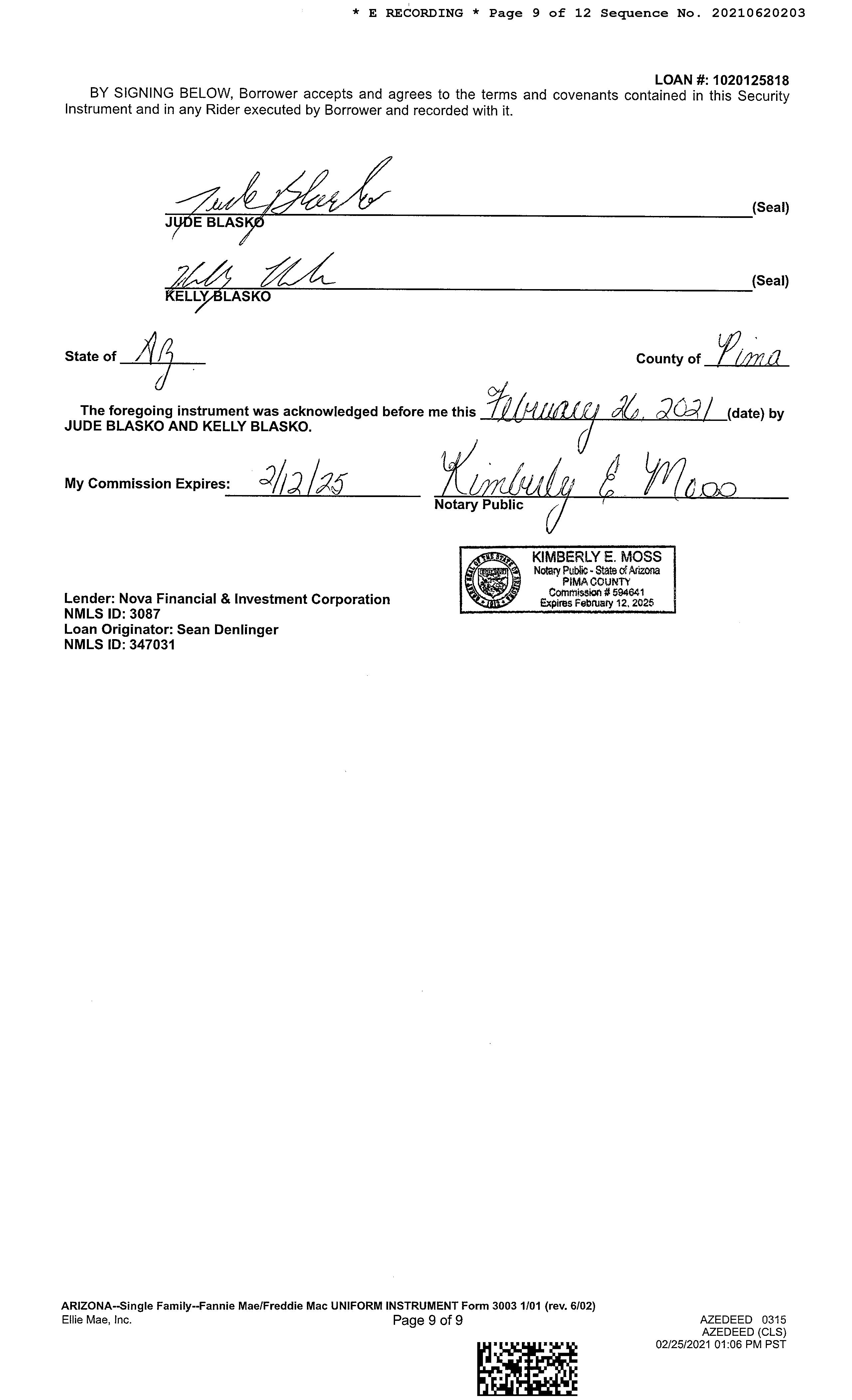 Title Company : Pioneer Title Agency Lender : Nova Fin'l & Inv Corp Seller