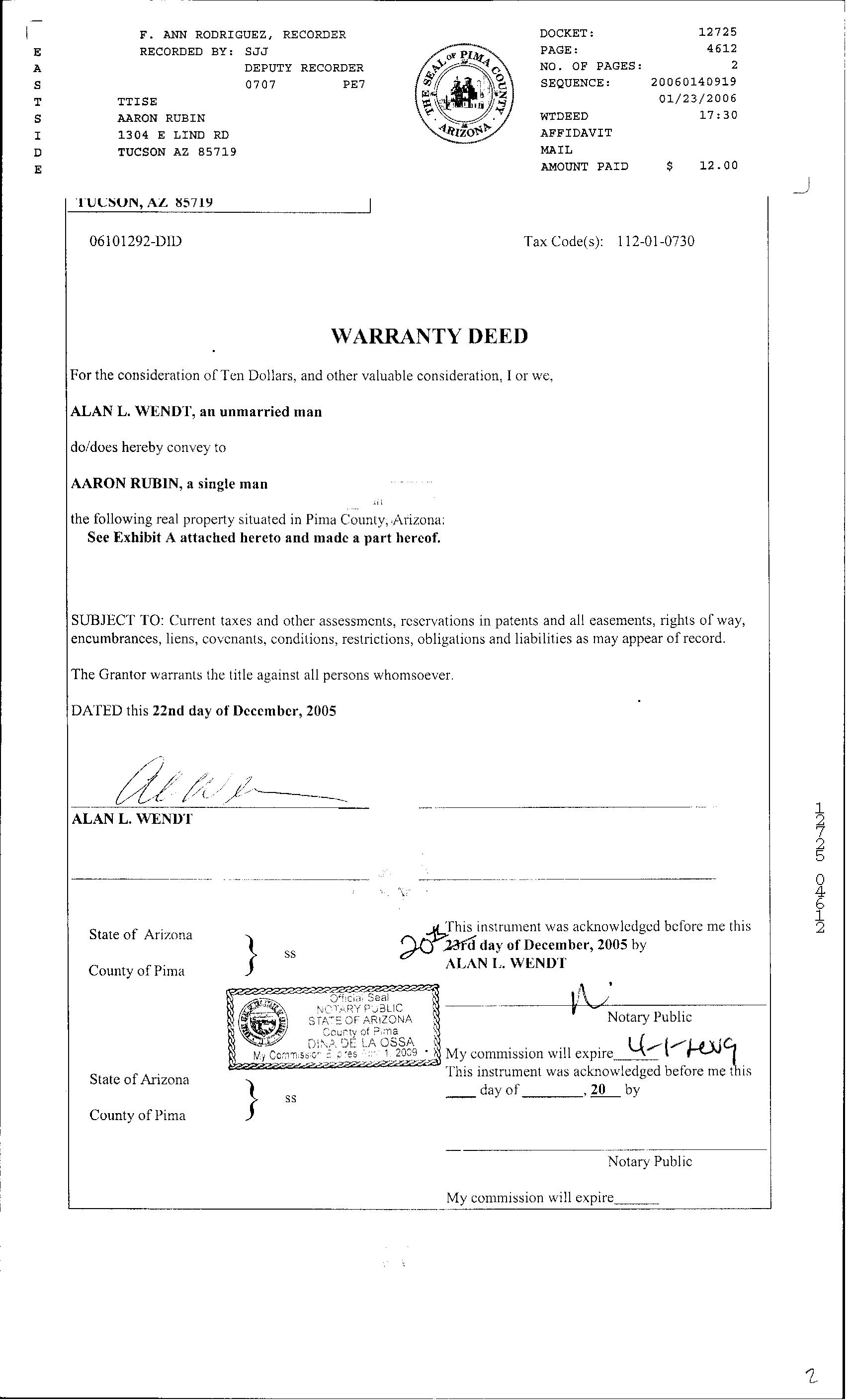 Recording/Sale Date : 01/23/2006 / 12/22/2005