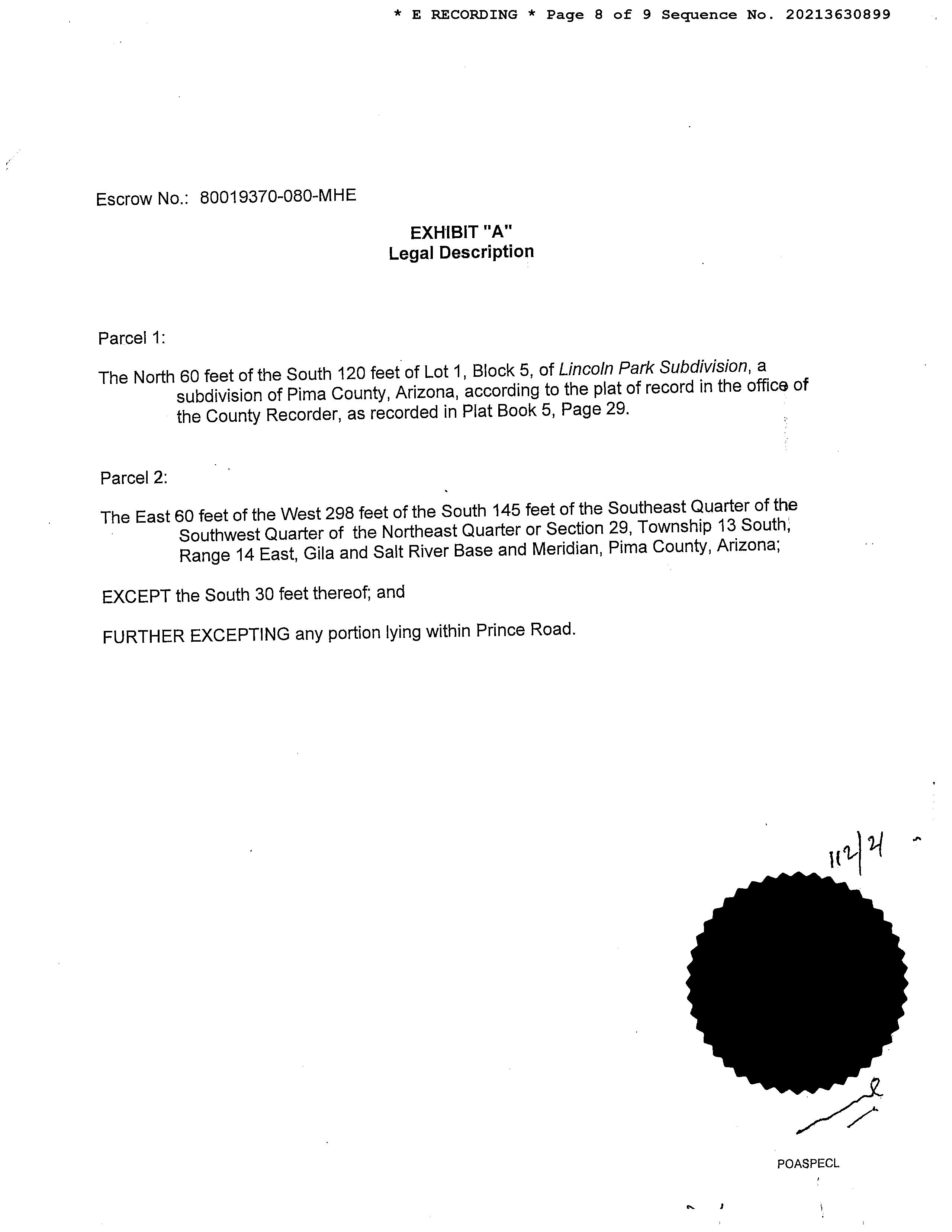 Subject Property : 2625 E Prince Rd Tucson AZ 85716