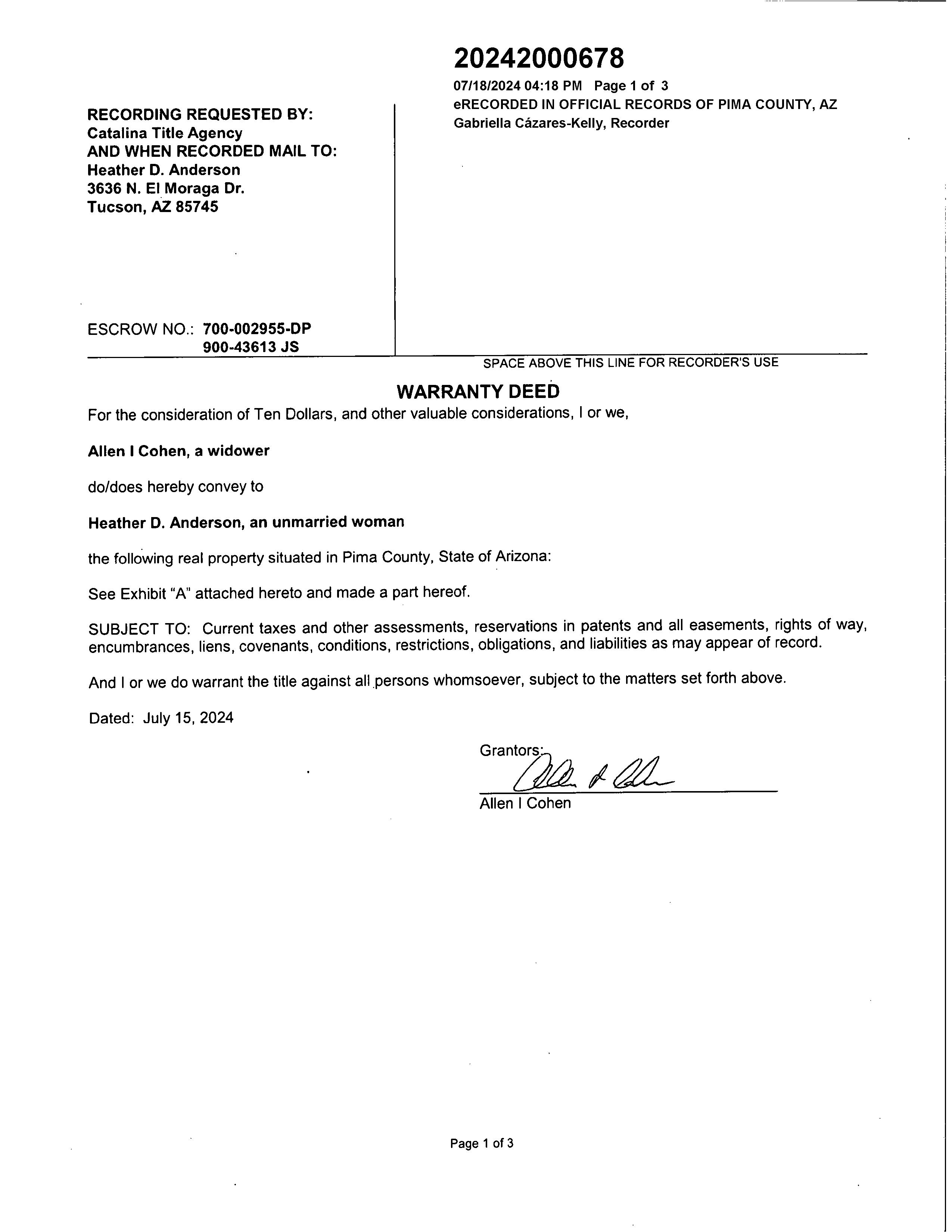 Mailing Address : 3636 N El Moraga Dr, Tucson AZ 85745-9108 R135