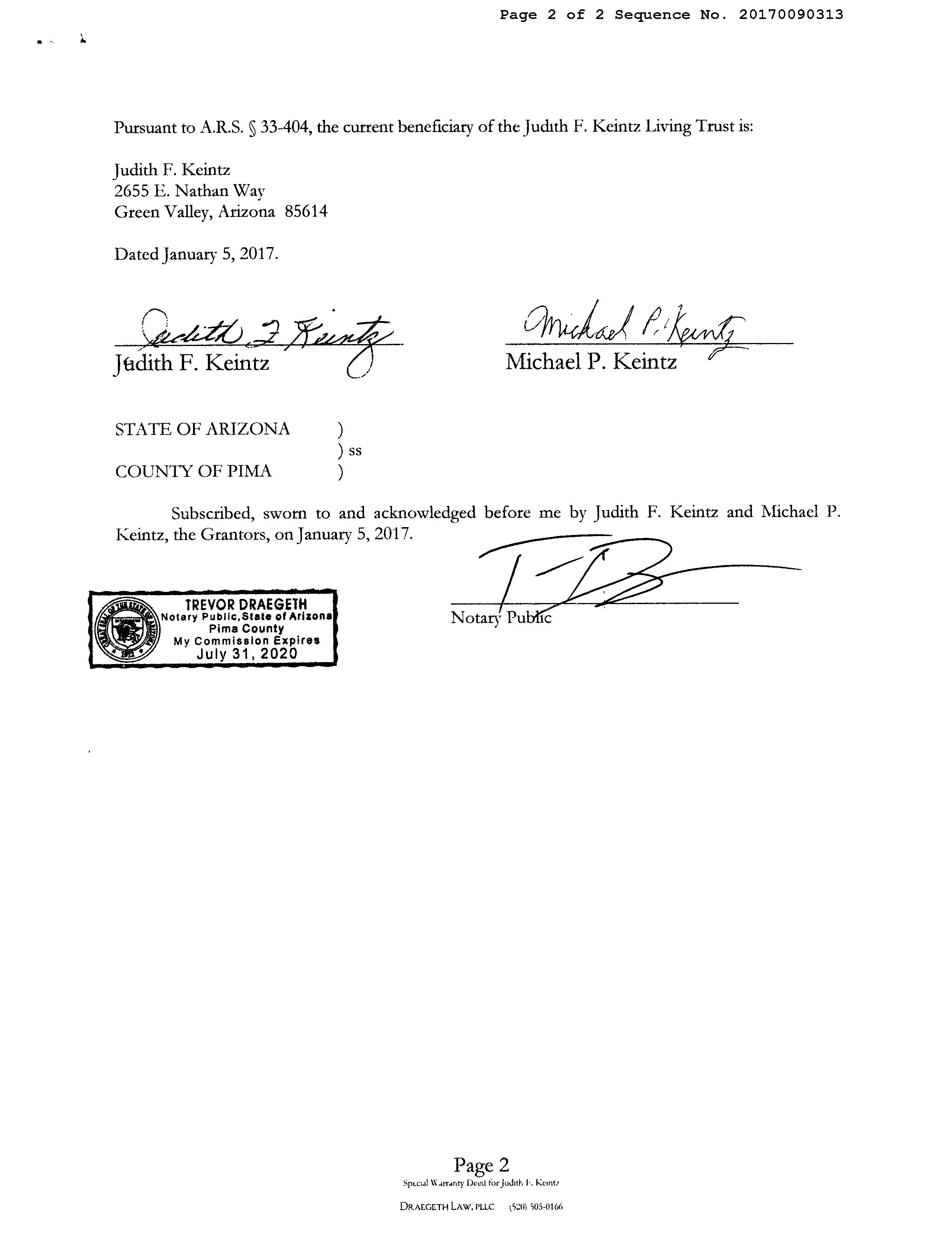 OWNER: KEINTZ JUDITH F/MICHAEL P AFFIDAVIT 2016 2030468 07/21/2016