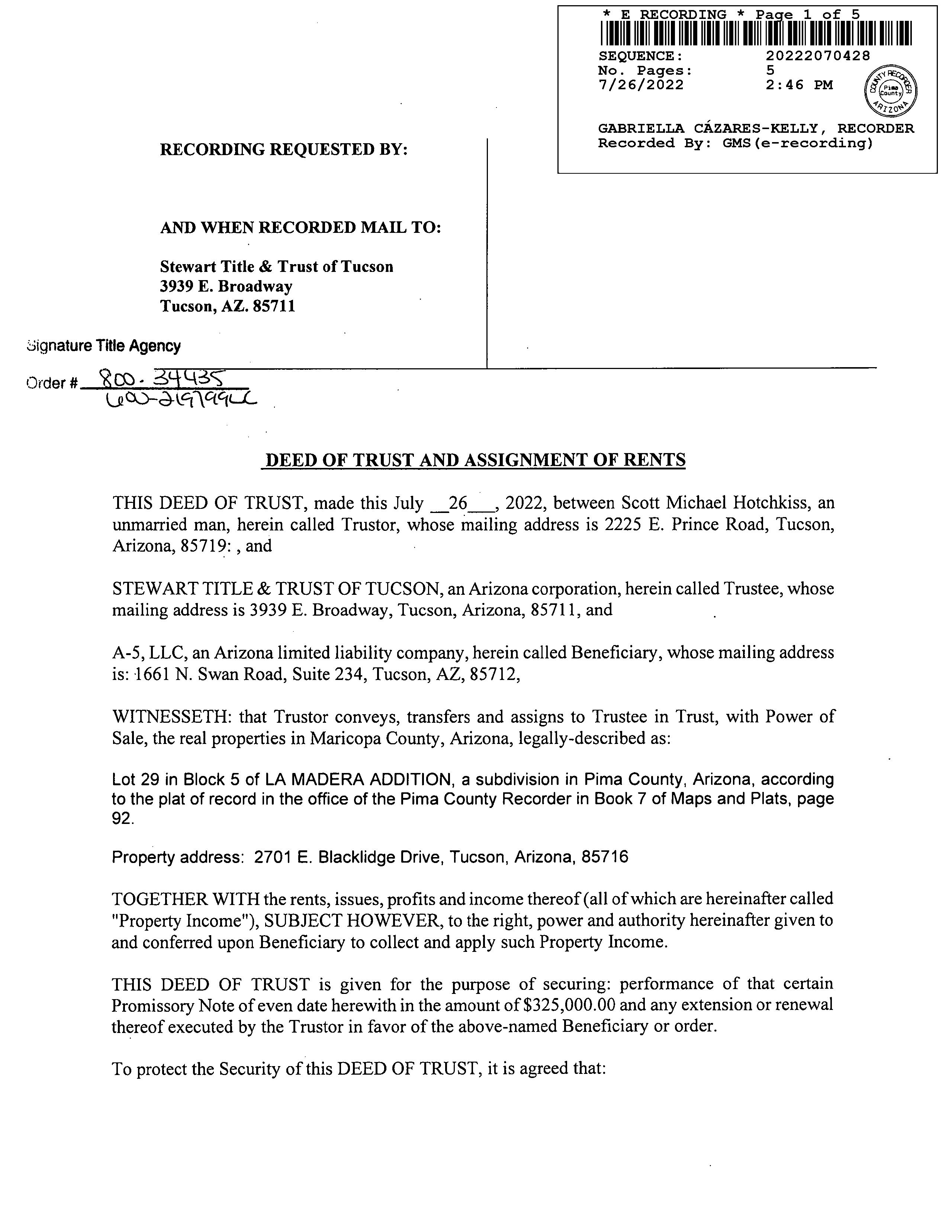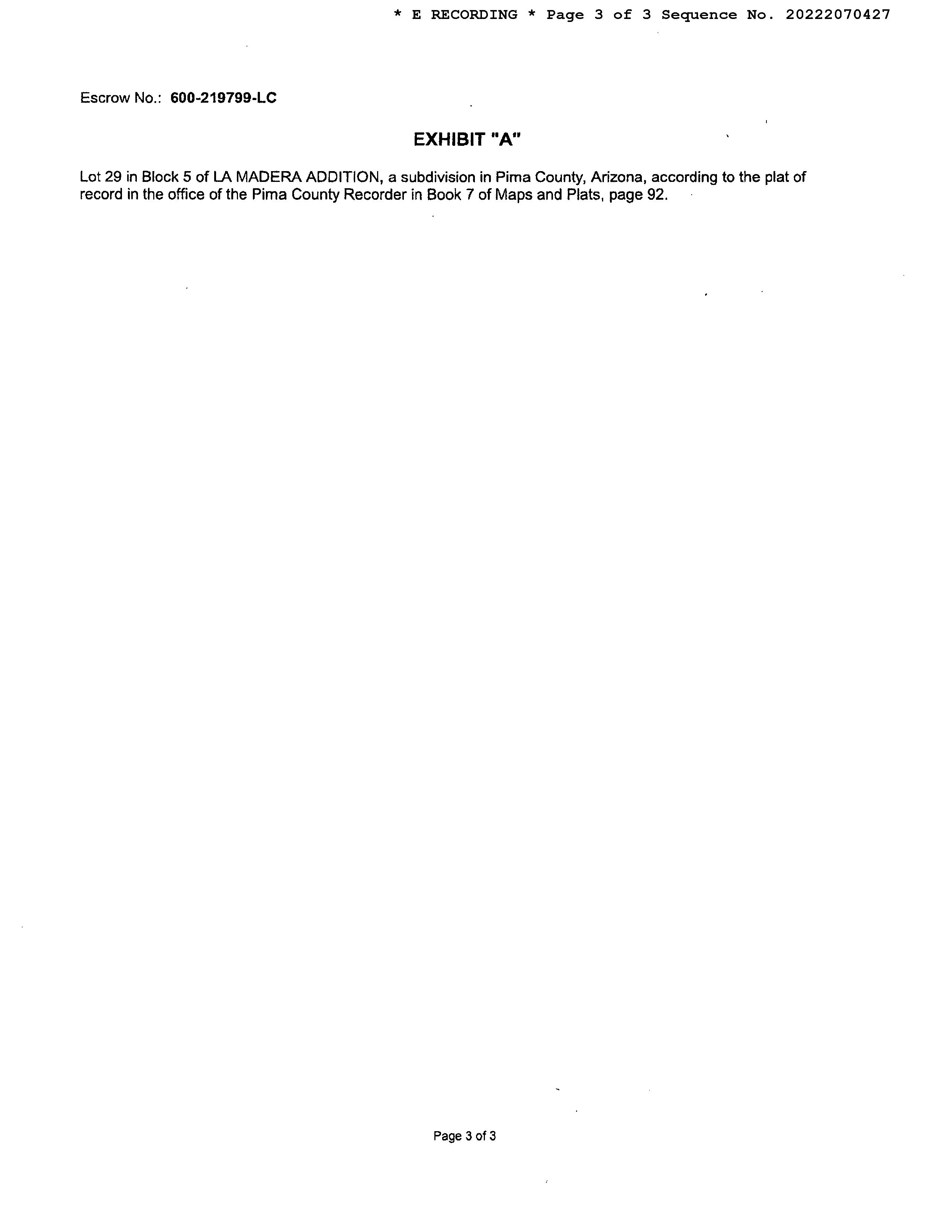 APN / Alternate APN: 112-04-1400 / Deed Type: Warranty Deed Land Use: Sfr Subdivision / Tract: La Madera / Lot Size: 10,384 Year Built / Eff: 1950 / Rec. Date / Price: 07/26/2022 / $415,000 Living Area: 1,510 # of units: Document #: 2070427 Bedrooms: Pool: Total Tax Value: $239,372 Bath(F/H): / #1 2609 E La Madera Dr Tucson