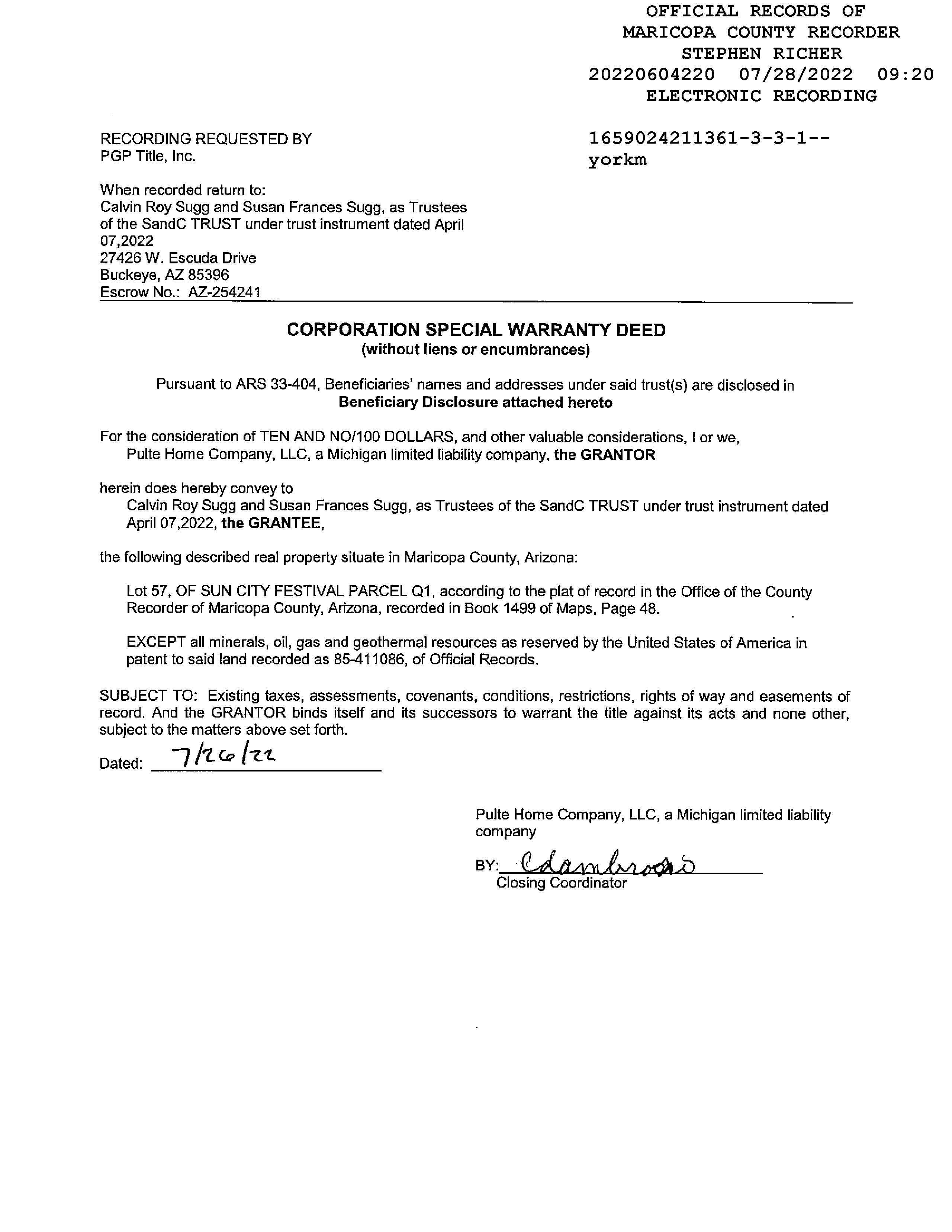 OWNER: SANDC TRUST & SUGG 2022 604220 07/28/2022