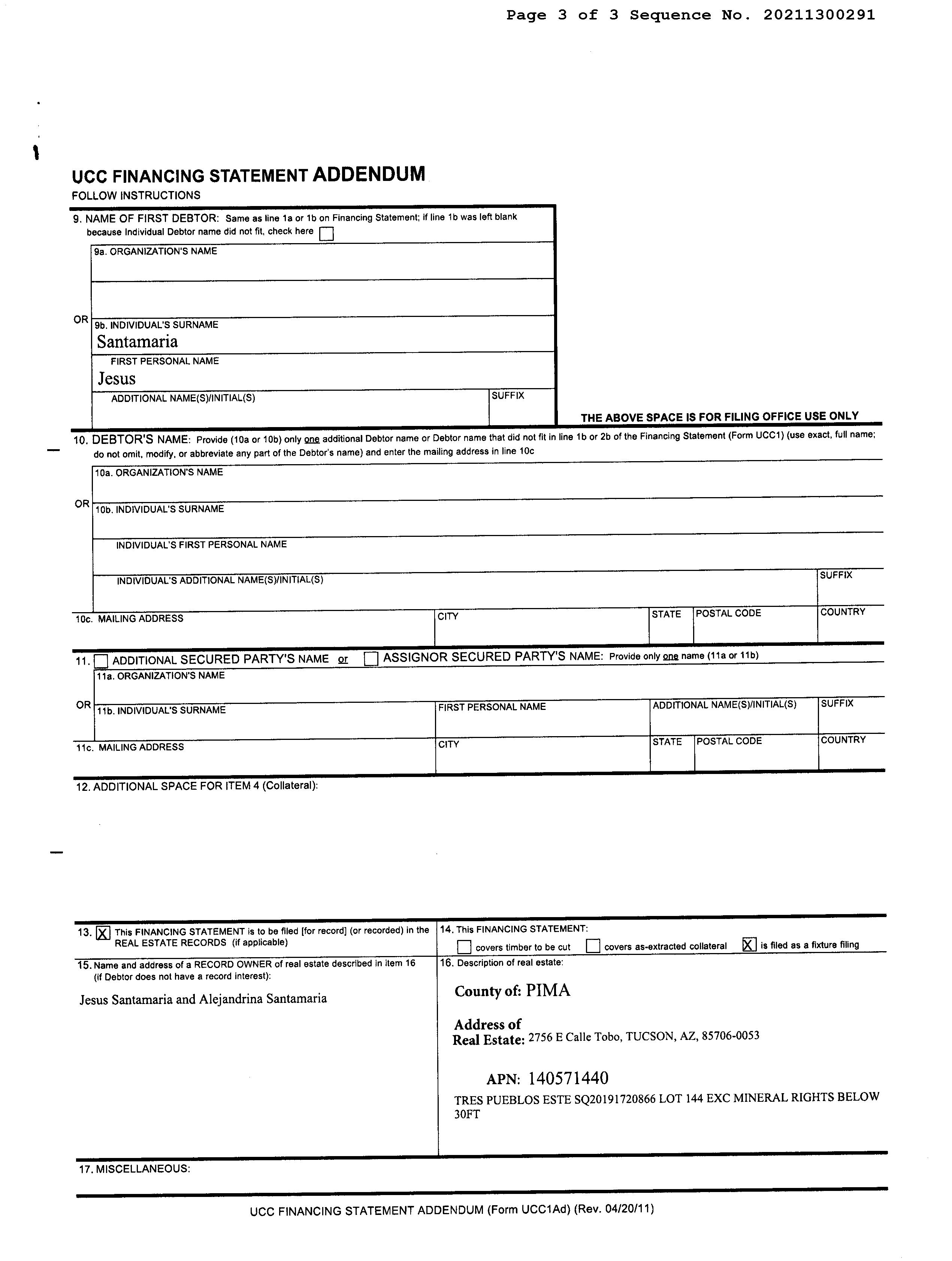 Mailing Address : 2756 E Calle Tobo, Tucson AZ 85706 C027