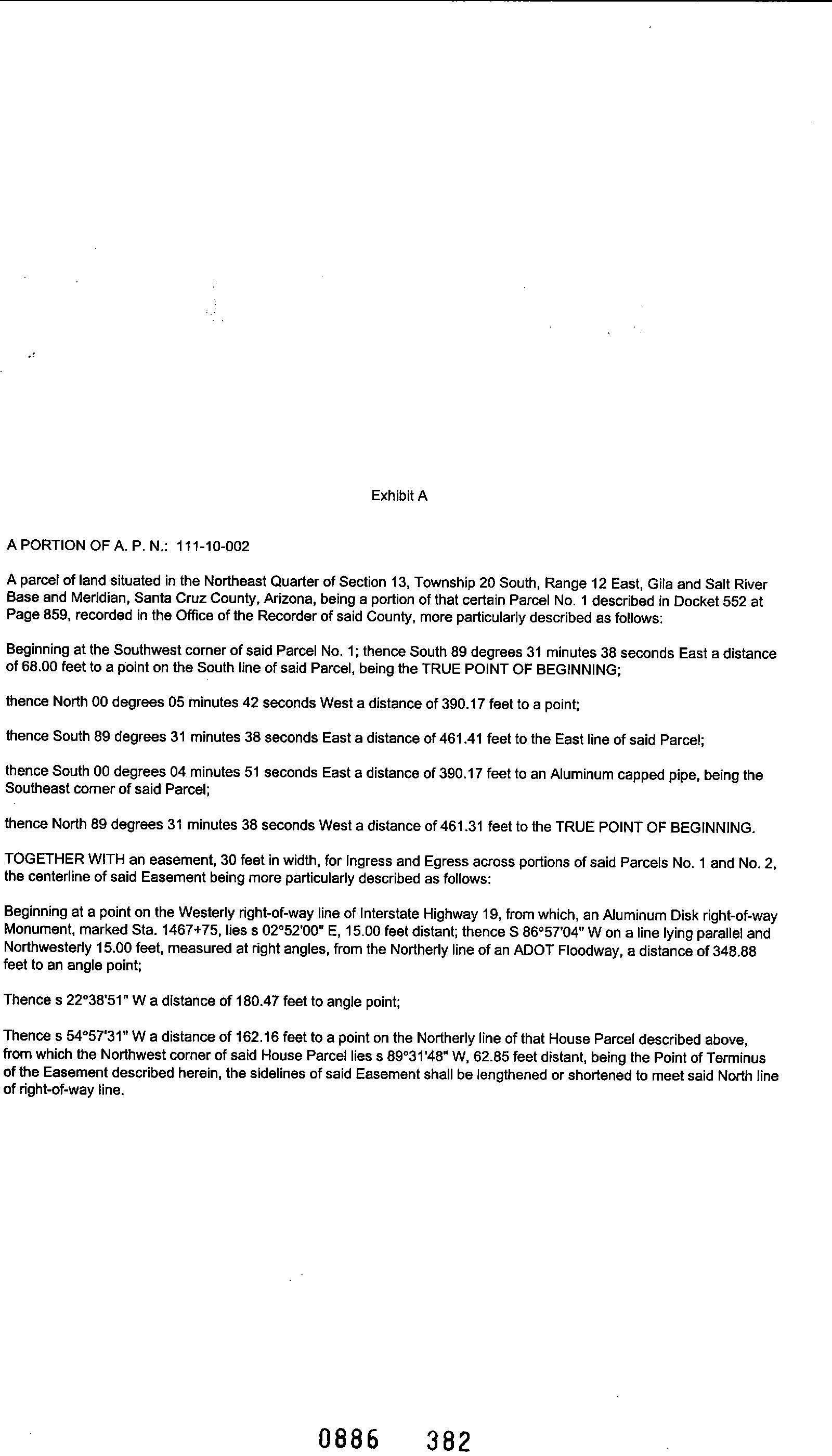Legal Description : A Portion Of Land In The Nw4 Ne4 Of Sec 13 T20s R12e Lying Wester Ly Of I-19