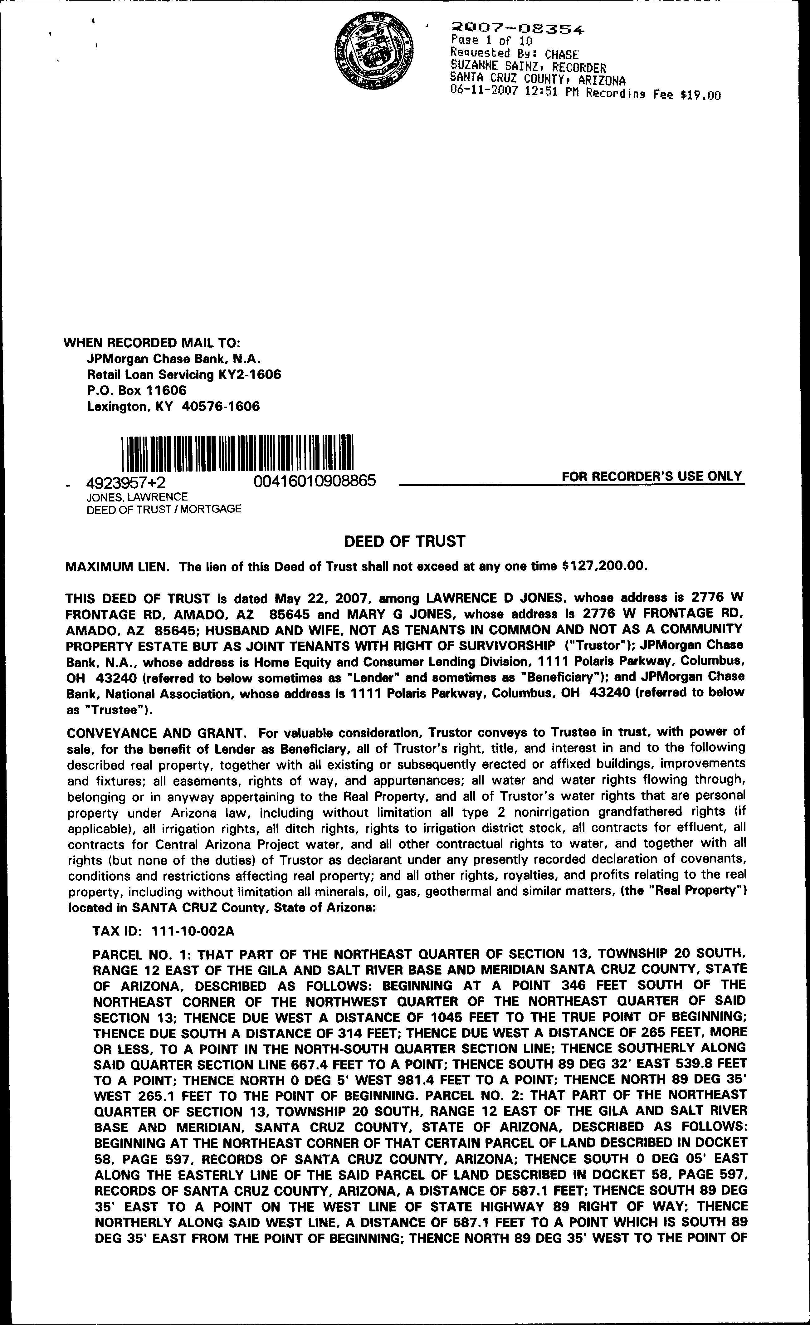 Mailing Address : Po Box 875, Amado AZ 85645-0875 B009