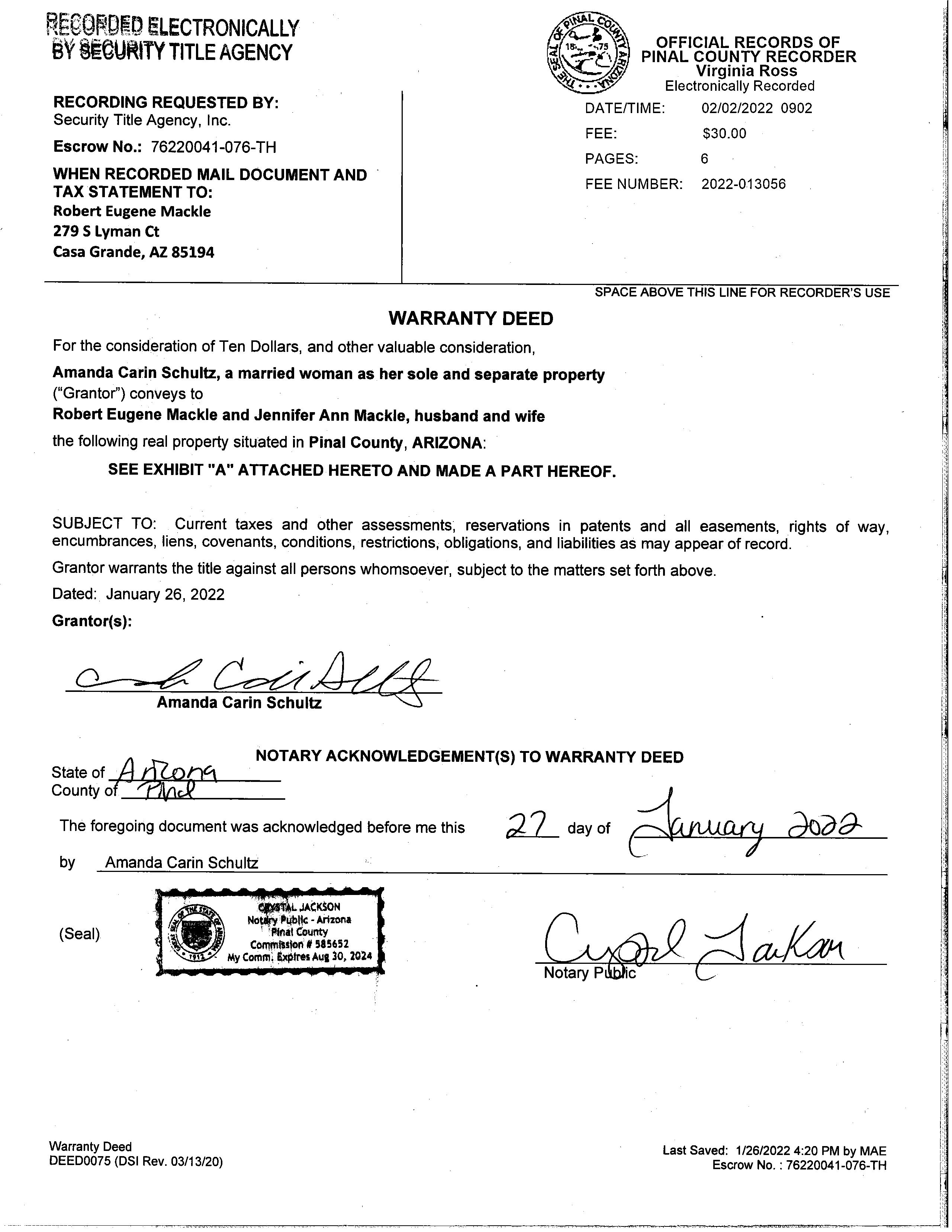 APN / Alternate APN: 401-22-013D / Deed Type: Warranty Deed