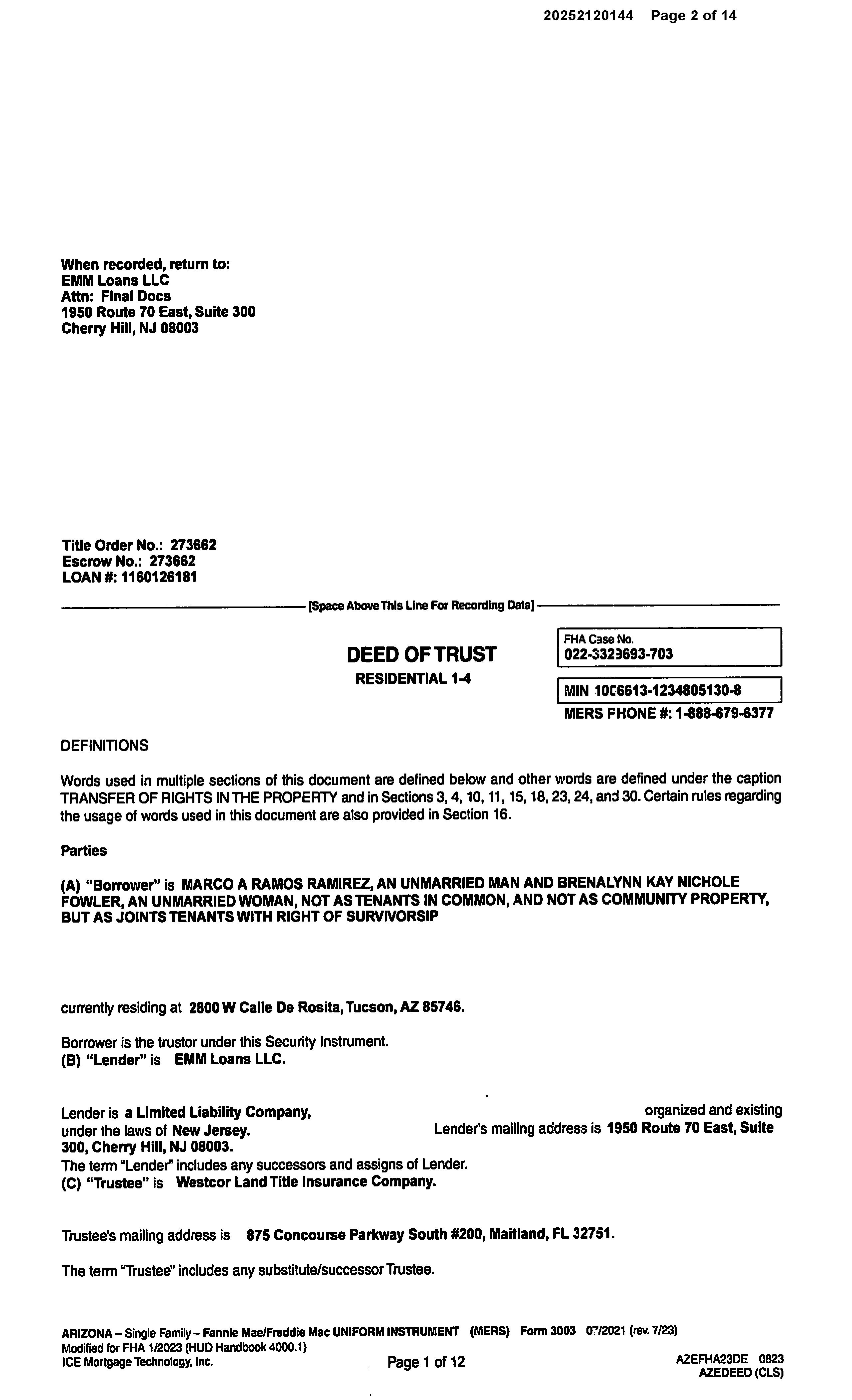 OWNER: RAMOS MARCO A & FOWLER BREN AFFIDAVIT 2020 591105 02/28/2020