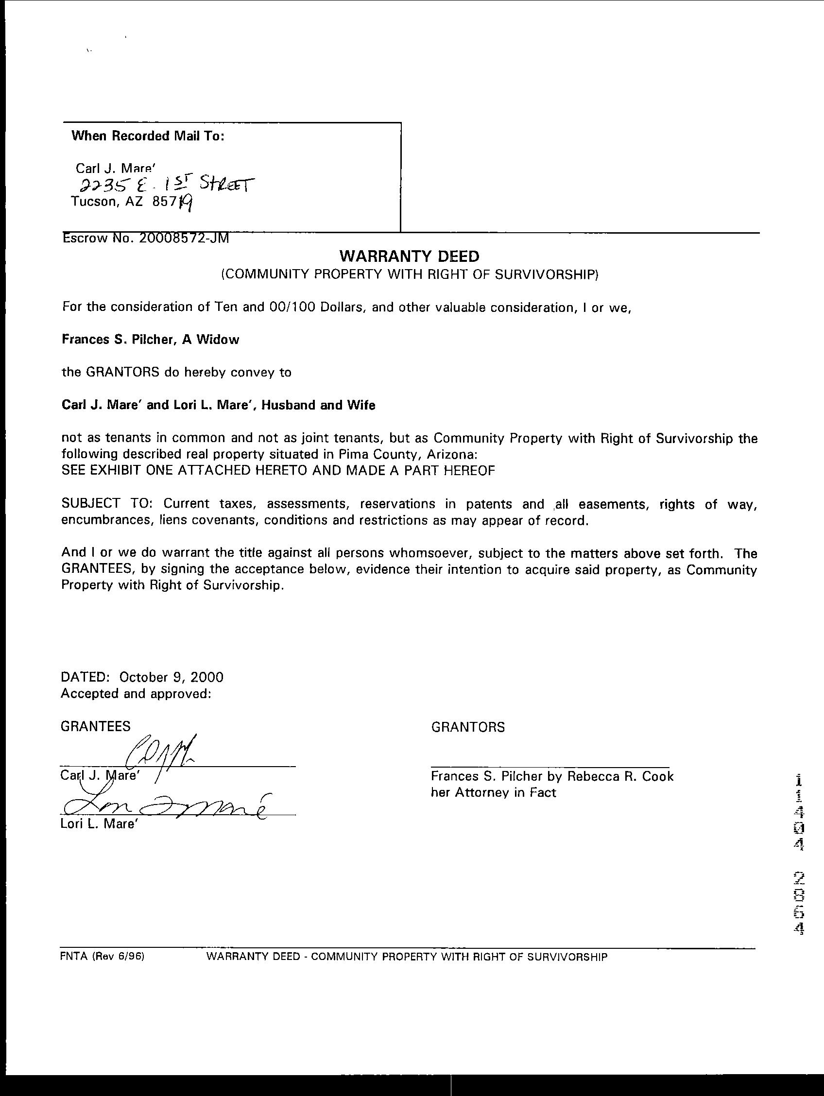 Mailing Address : 6131 E San Cristobal St, Tucson AZ 85715-3013 C031