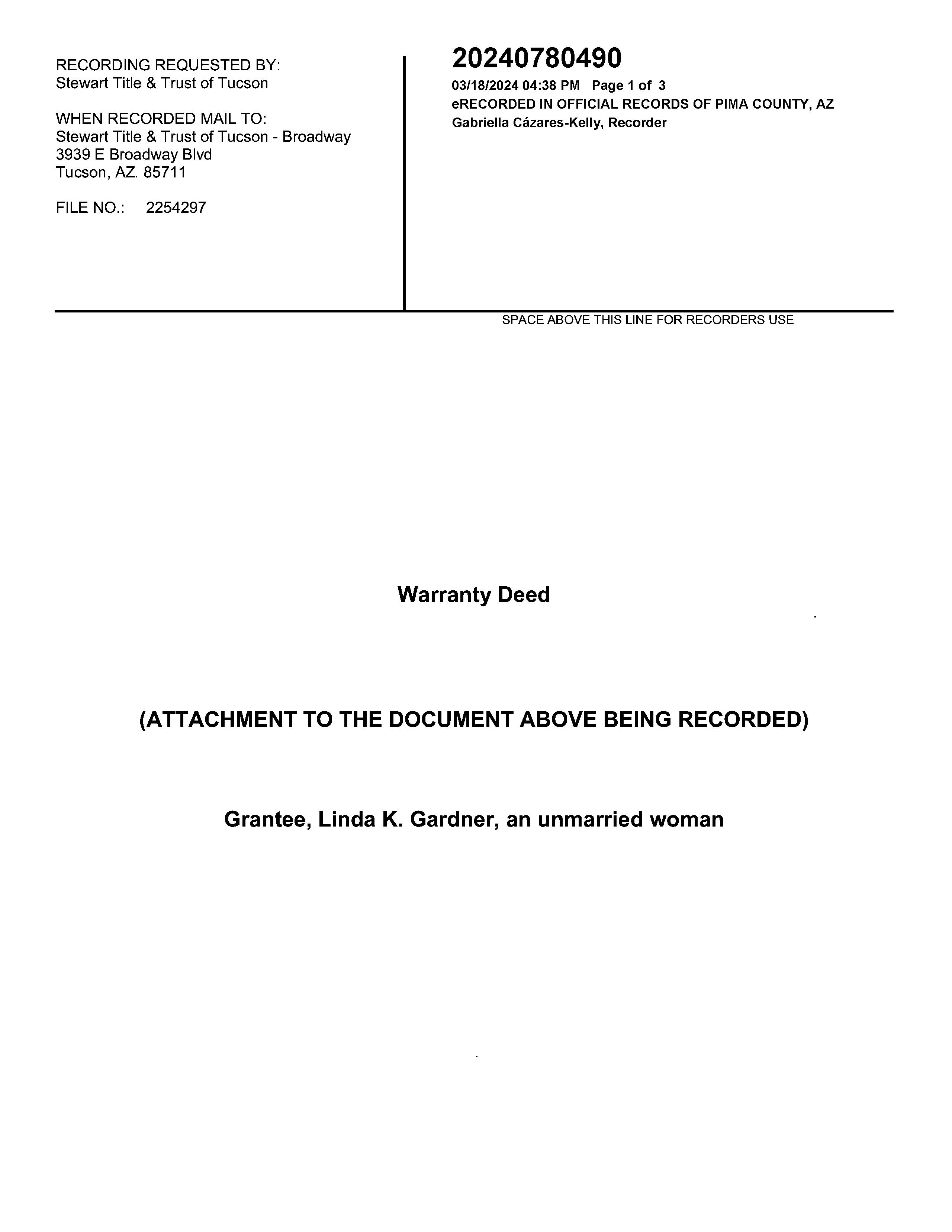 Owner Name: Gardner Linda K / APN / Alternate APN: 110-06-6450 / Deed Type: Warranty Deed