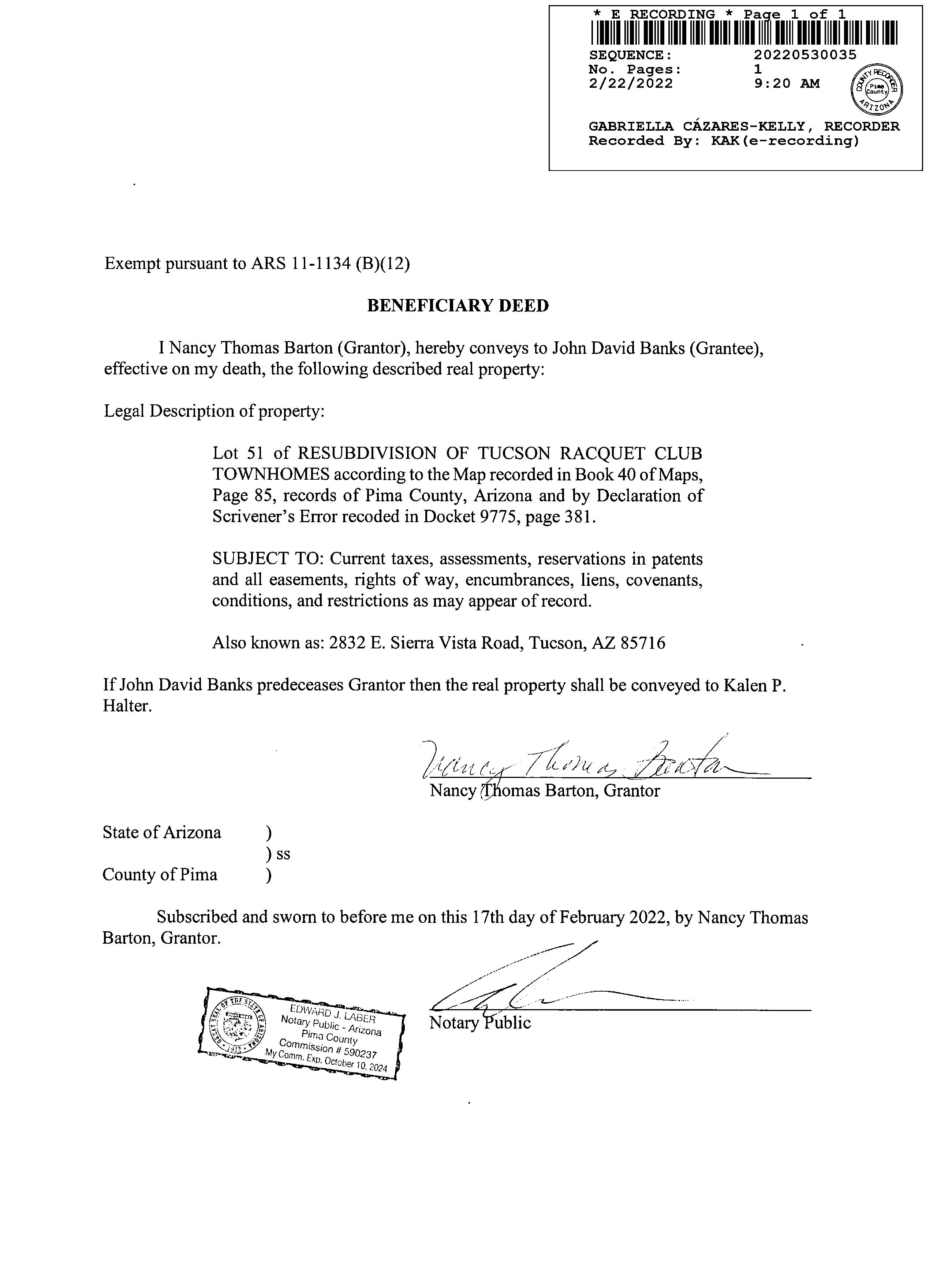 Subject Property: 2832 E Sierra Vista Rd Tucson Az 85716 Owner Name: Barton Nancy Thomas / APN / Alternate APN: 112-01-7590 / Deed Type: Warranty Deed Land Use: Condominium Subdivision / Tract: Tucson Racquet Club Twnhms Resub / Lot Size: 1,473 Year Built / Eff: 1986 / Rec. Date / Price: 01/10/2007 / $235,000 Living Area: 1,155 # of units: Document #: 12968-3278 Bedrooms: Pool: Total Tax Value: $162,483 Bath(F/H): / #1 3935 N Country Club Rd # 23b Tucson Az 85716 Owner Name: Duperret Susann M / APN / Alternate APN: 112-01-0980 / Deed Type: Warranty Deed Land Use: Condominium Subdivision / Tract: Racquet Club Condo /Lot Size: 1,095 Year Built / Eff: 1963 / Rec. Date / Price: 07/10/2023 / $235,000 Living Area: 1,024 # of units: Document #: 1910314 Bedrooms: Pool: Total Tax Value: $125,692 Bath(F/H): / #2 3935 N Country Club Rd # 32b Tucson Az 85716 Owner Name: Tarter Buwen Trust / APN / Alternate APN: 112-01-1240 / Deed Type: Warranty Deed Land Use: Condominium Subdivision / Tract: Racquet Club Condo /Lot Size: 1,078 Year Built / Eff: 1964 / Rec. Date / Price: 12/01/2022 / $255,000 Living Area: 1,088 # of units: Document #: 3350539 Bedrooms: Pool: Total Tax Value: $131,837 Bath(F/H): / #3 3112 E Oasis De Palmeras Tucson Az 85716