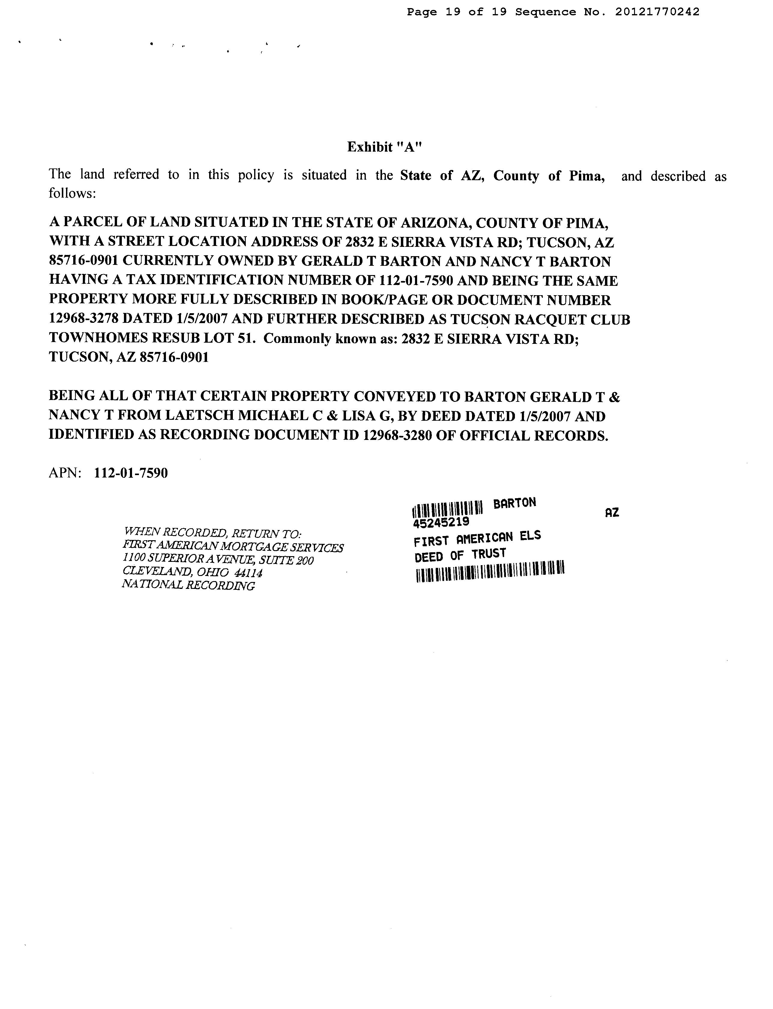 This report is not an insured product or service or a representation of the condition of title to real property. It is not an abst ract, legal opinion, opinion of title, title insurance commitment or preliminary report, or any form of Title Insurance or Guaranty. This report is issued exclusively for the benefit of the Applicant therefor and may not be used or relied upon by any other person. This report may not be reproduced in any manner without First American or Title Security's prior written consent. First American or Title Security does not represent or warrant that the information herein is complete or free from error, and the information herein is provided without any warranties of any kind, as-is, and with all faults. As a material part of the consideration given in exchange for the issuance of this report, recipient agrees that First American or Title Security's sole liability for any loss or damage caused by an error or omission due to inaccurate information or negligence in preparing this report shall be limited to the fee charged for the report. Recipient accepts this report with this limitation and agrees that First American or Title Security would not have issued this report but for the limitation of liability described above. First American or Title Security makes no representation or warranty as to the legality or propriety of recipient's use of the information herein.