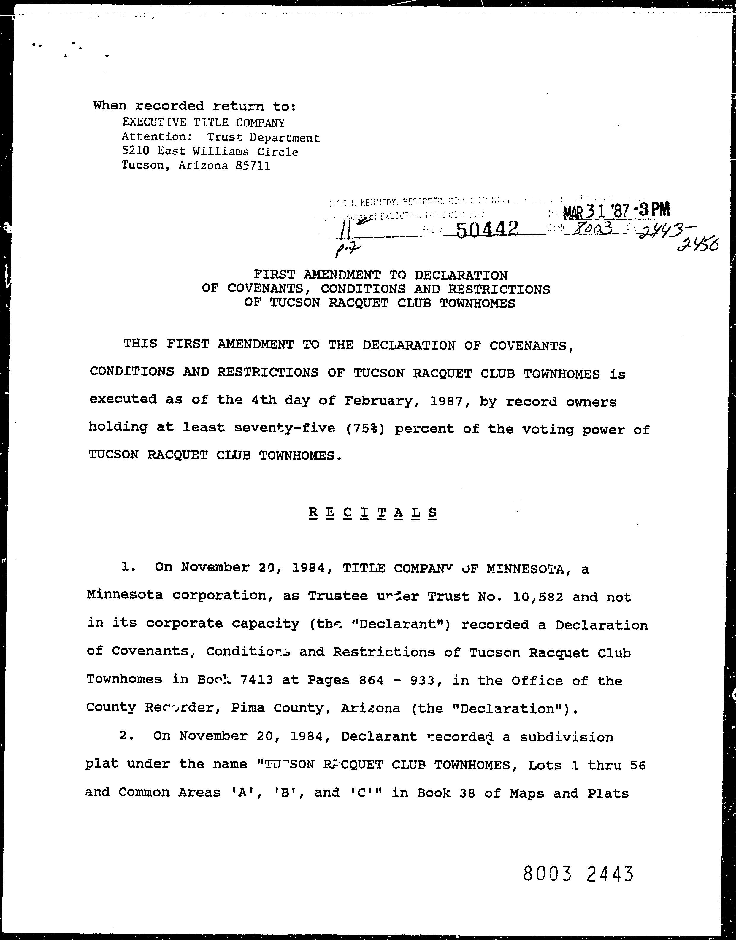 Subdivision : Tucson Racquet Club Twnhms Resub