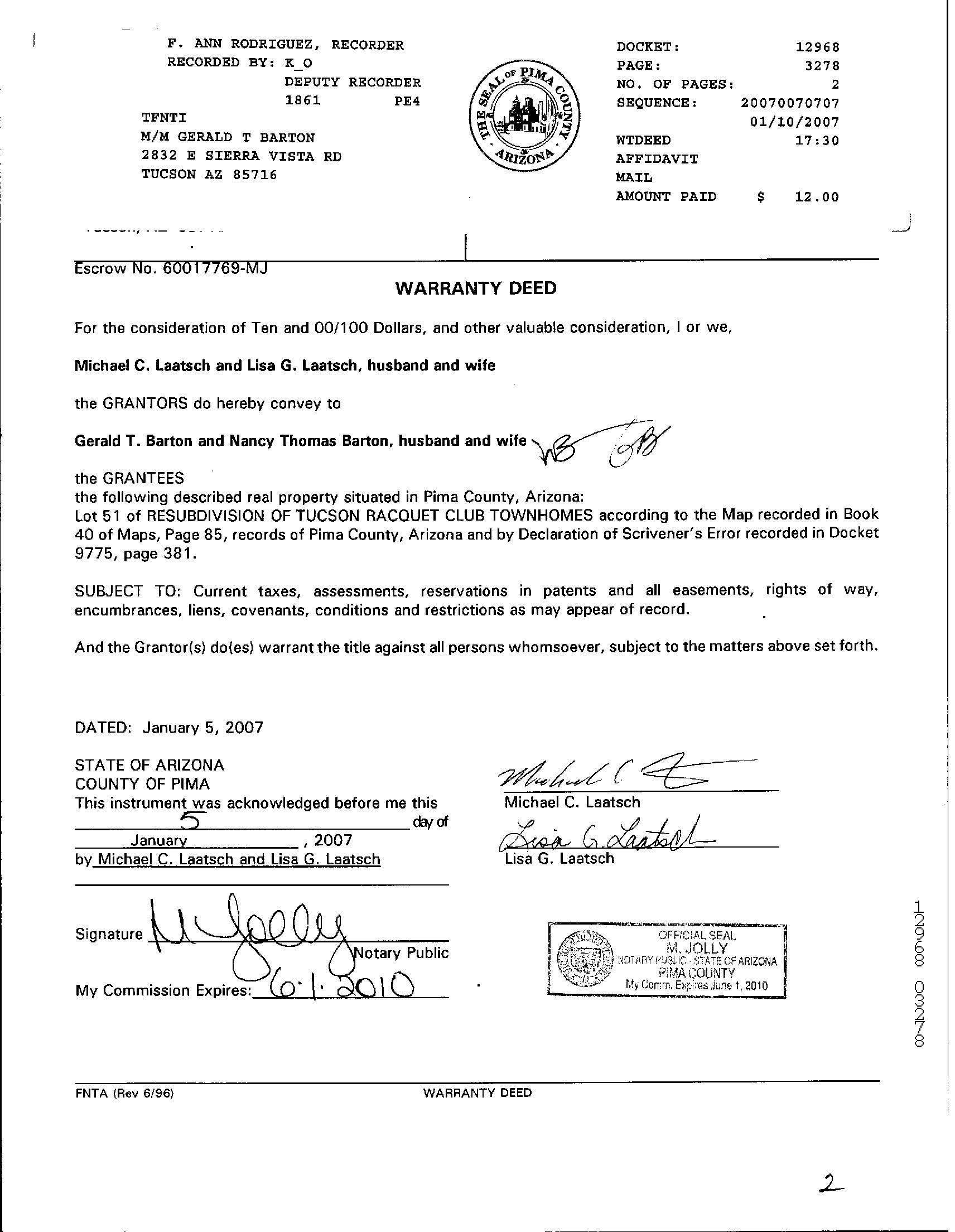 Recording/Sale Date : 01/10/2007 / 01/05/2007