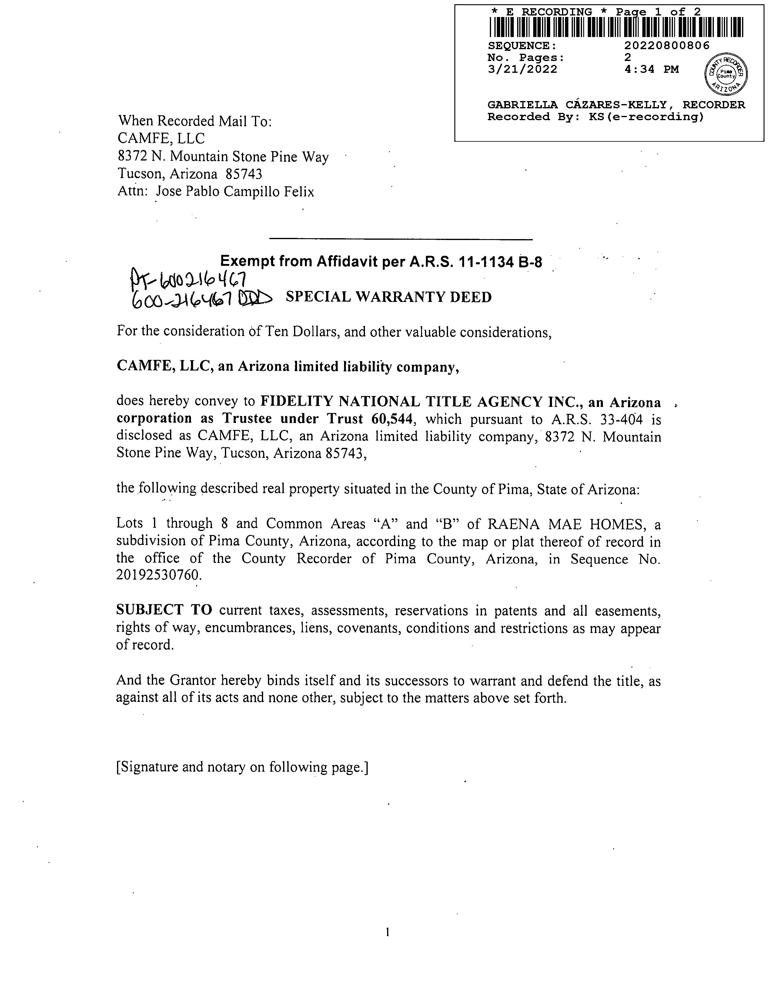 OWNER: TRUST 60544  AFFIDAVIT    2022 800806 03/21/2022