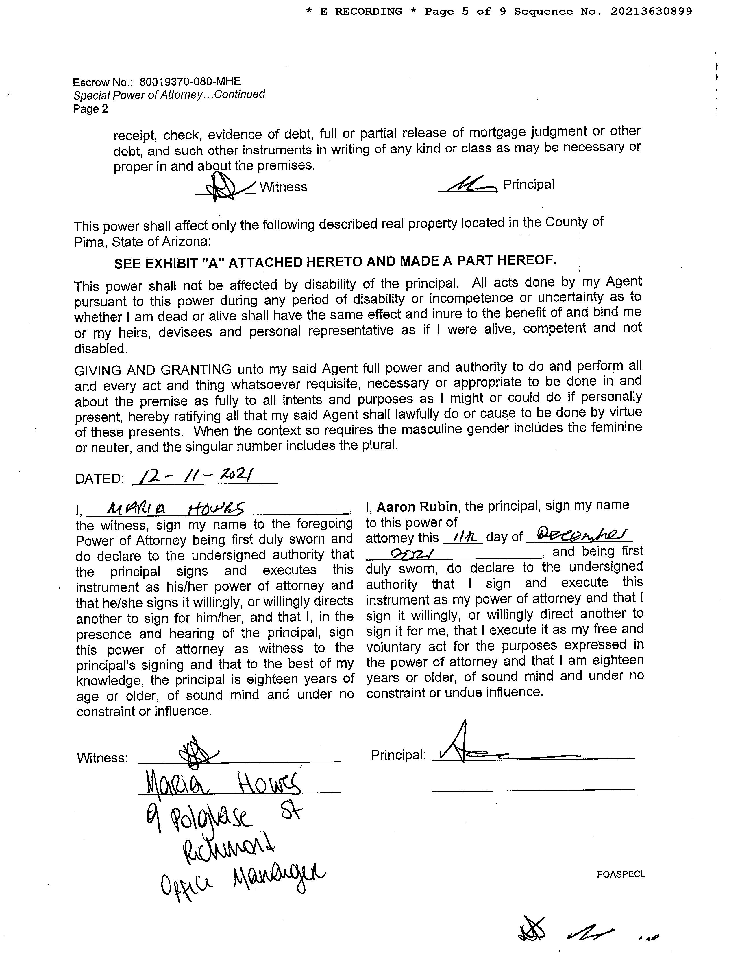 Mailing Address : 2841 N Richey Blvd, Tucson AZ 85716-2022 C017