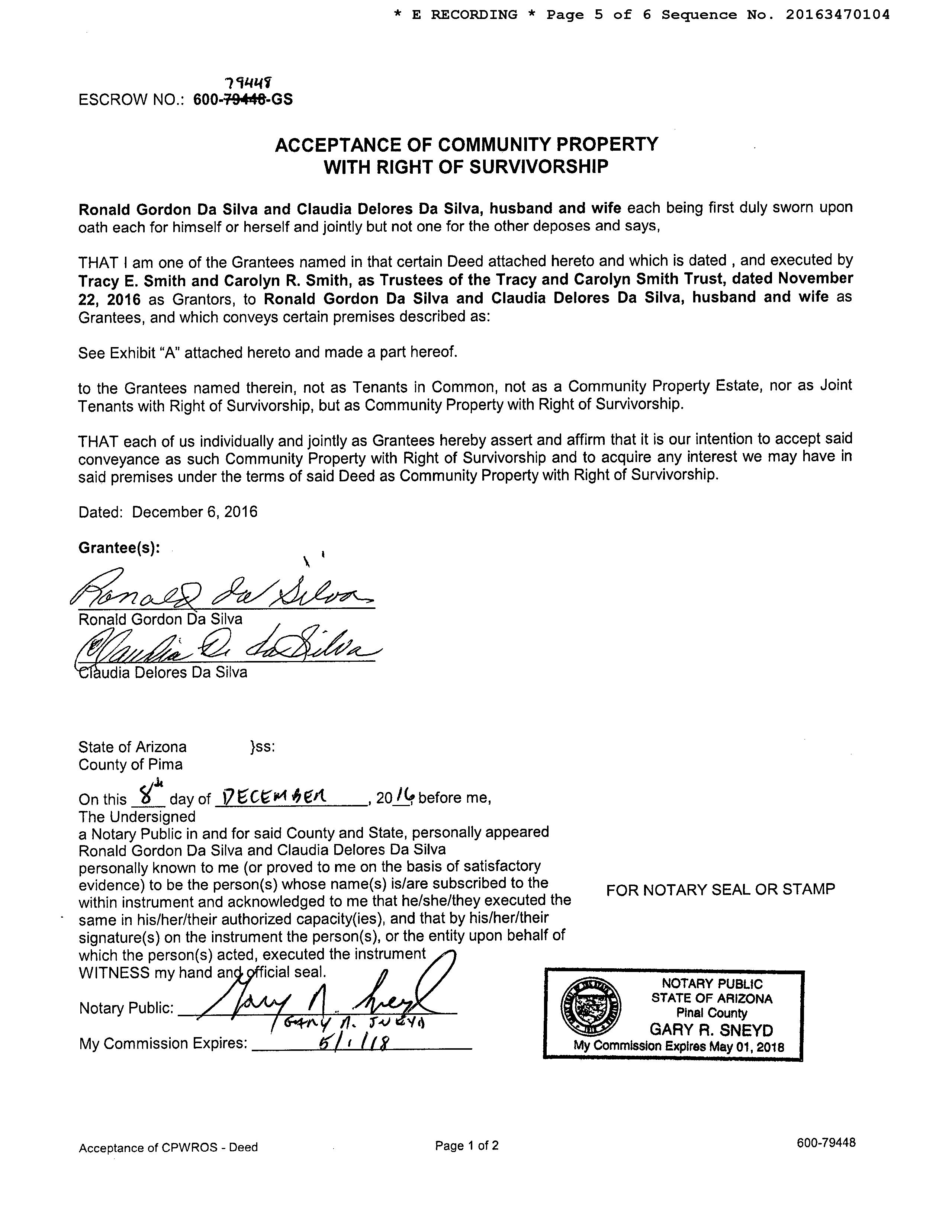 Recording/Sale Date : 12/12/2016 / 11/22/2016 Deed Type : Warranty Deed