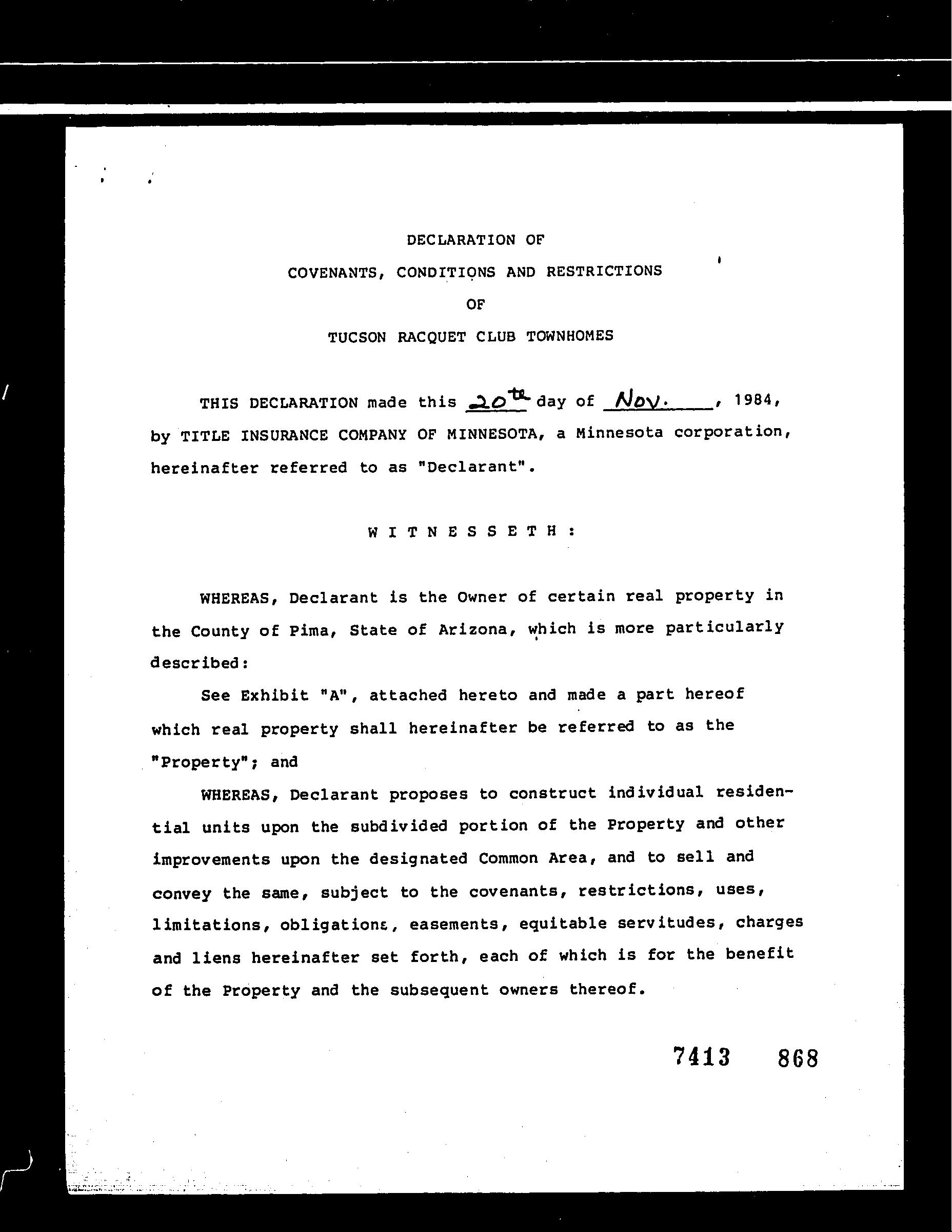 Subdivision : Tucson Racquet Club Twnhms Resub