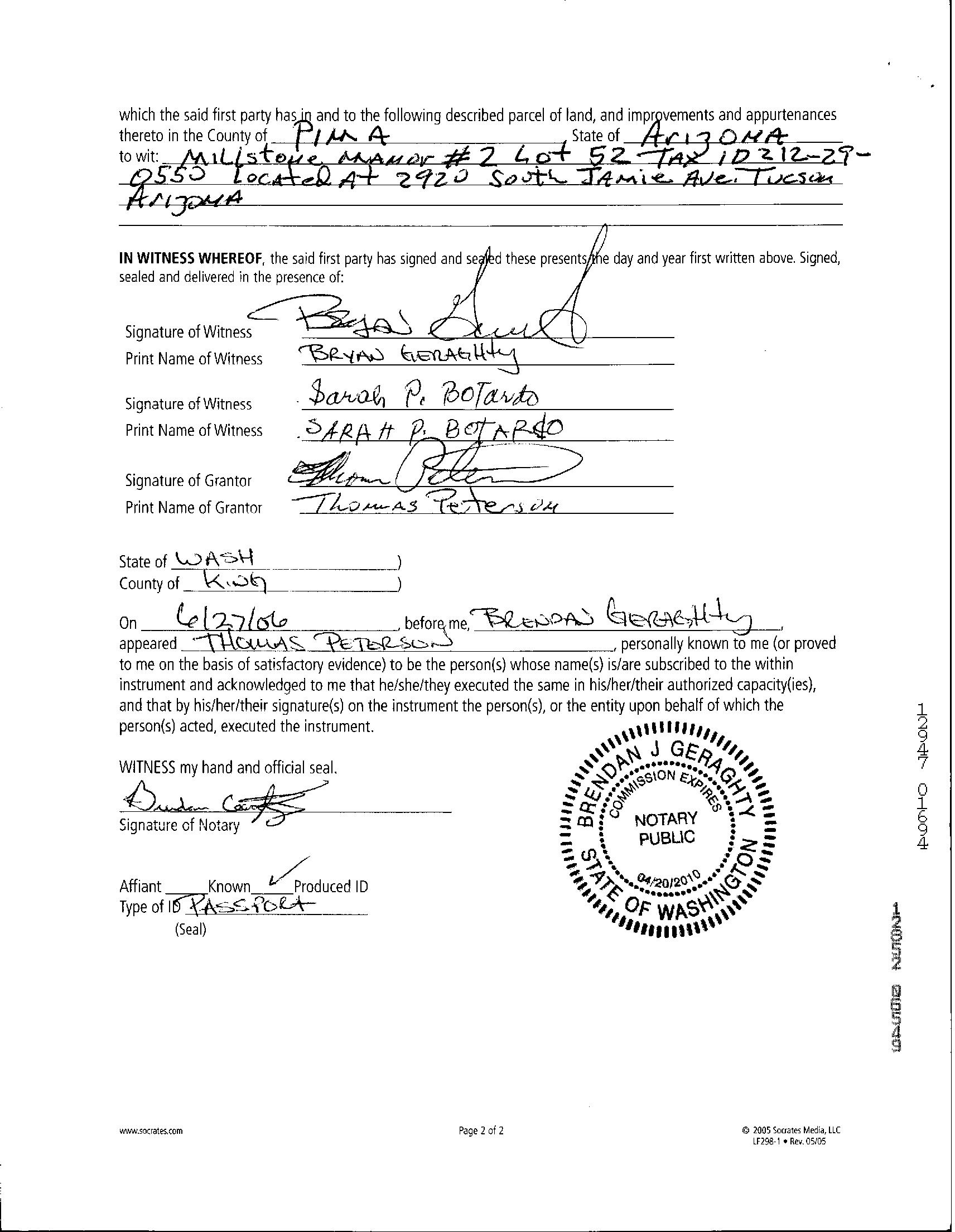 APN / Alternate APN: 212-27-2070 / Deed Type: Warranty Deed
