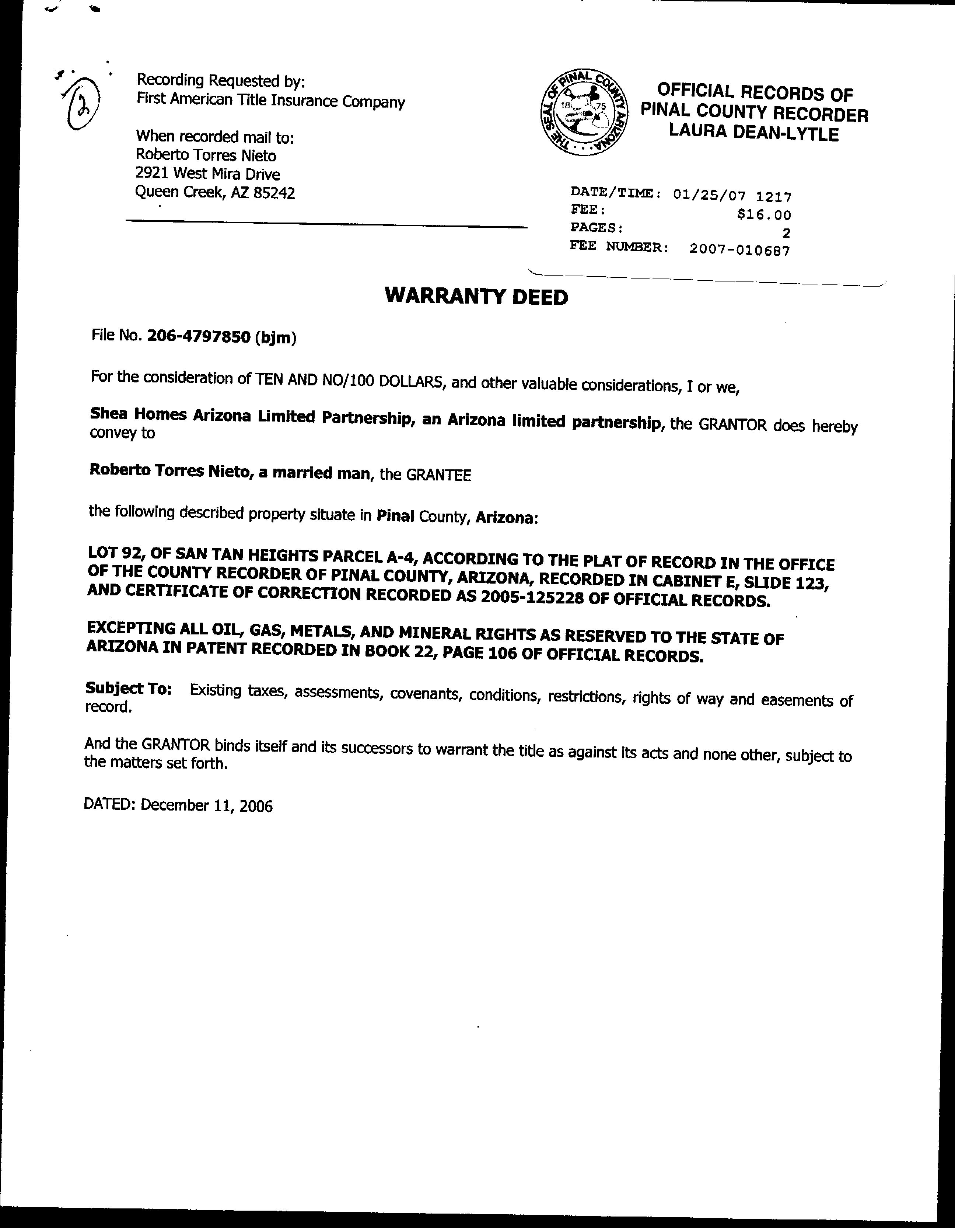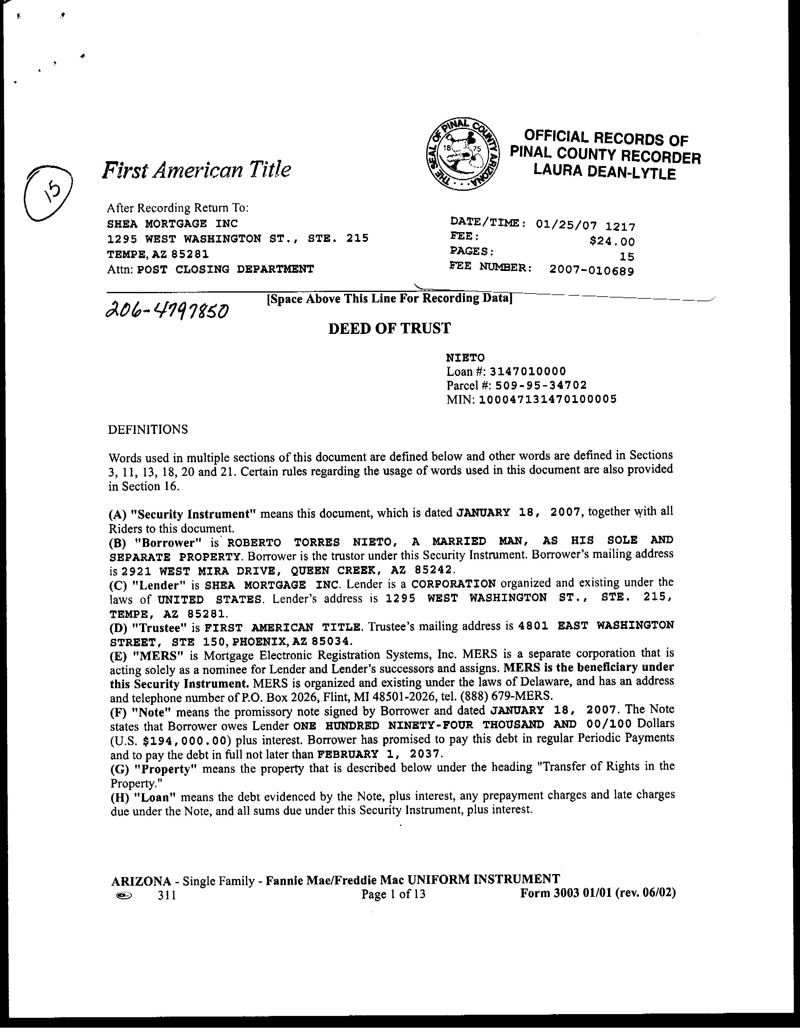 Owner Name: Nieto Roberto Torres / APN / Alternate APN: 509-95-438 / Deed Type: Warranty Deed