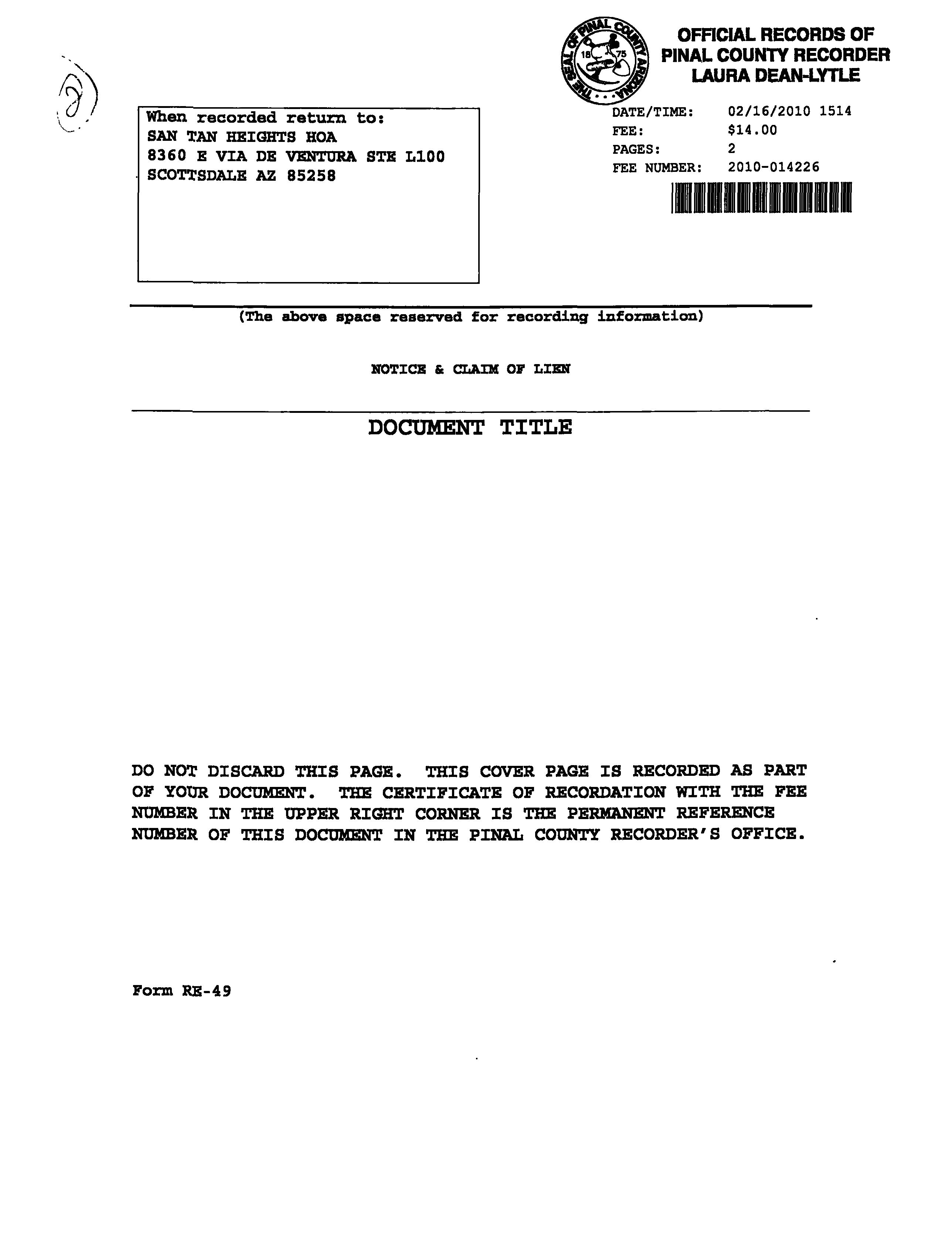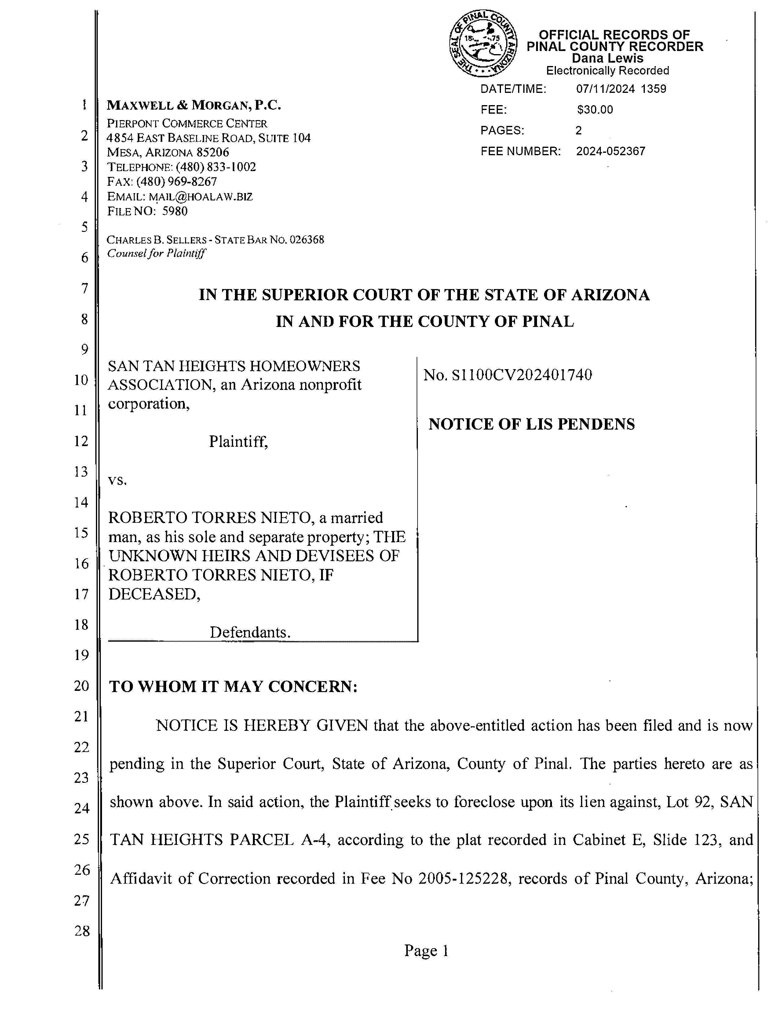 Subdivision : San Tan Heights Customer Name : Kariann Keomaka Customer Company Name : First American Title Insurance Company Prepared On : 08/15/2024