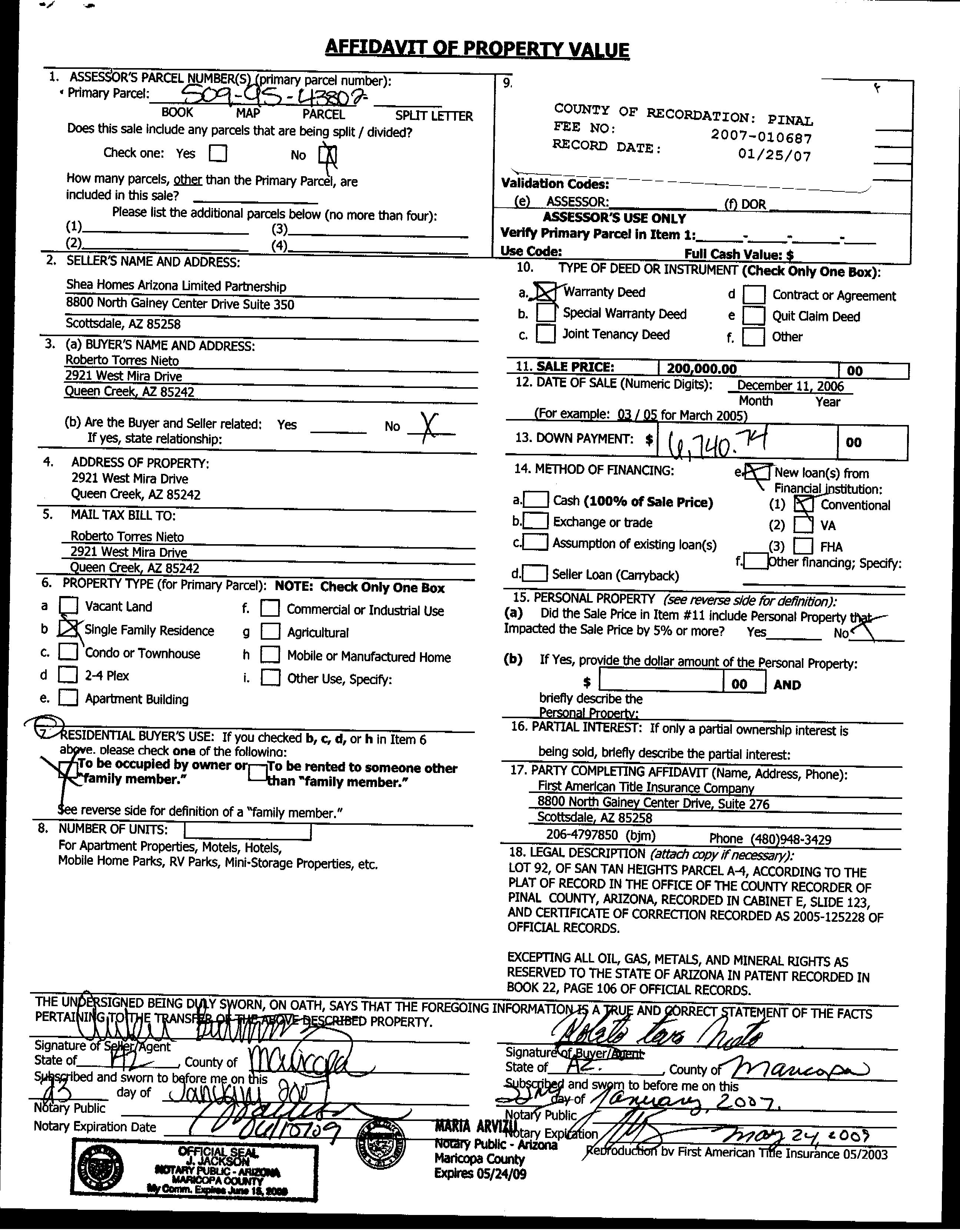 Recording/Sale Date : 01/25/2007 / 12/11/2006
