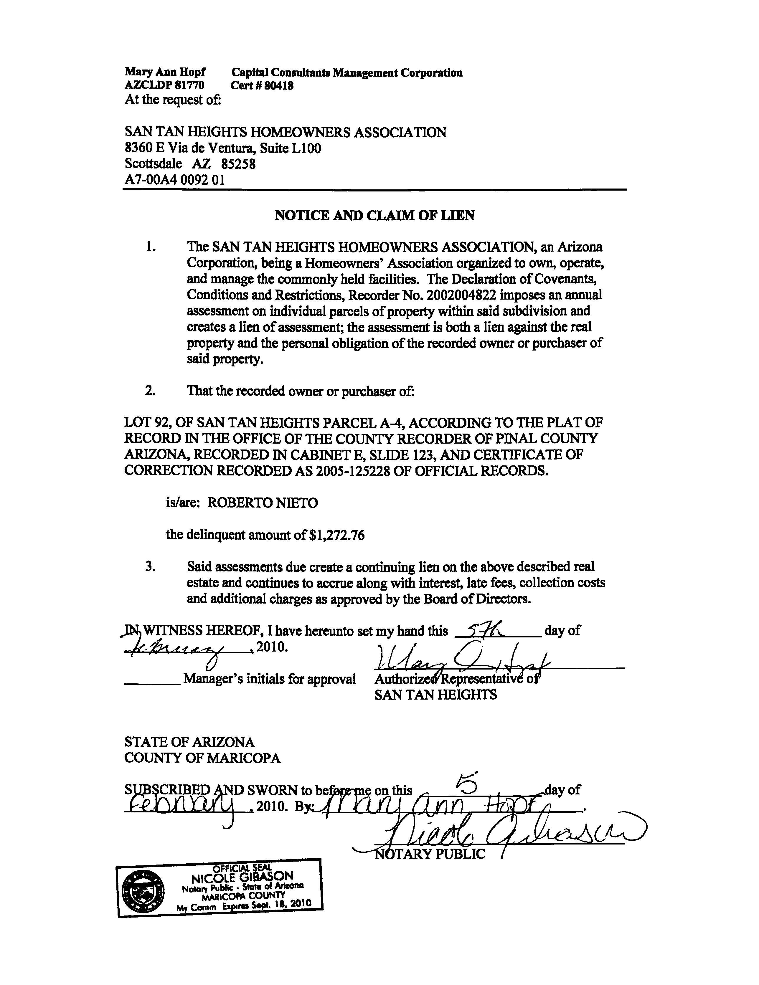 Legal Description : San Tan Heights Parcel A-4 Lot 92 Sec 13-3s-7e 5400 Sq Ft .12 Ac